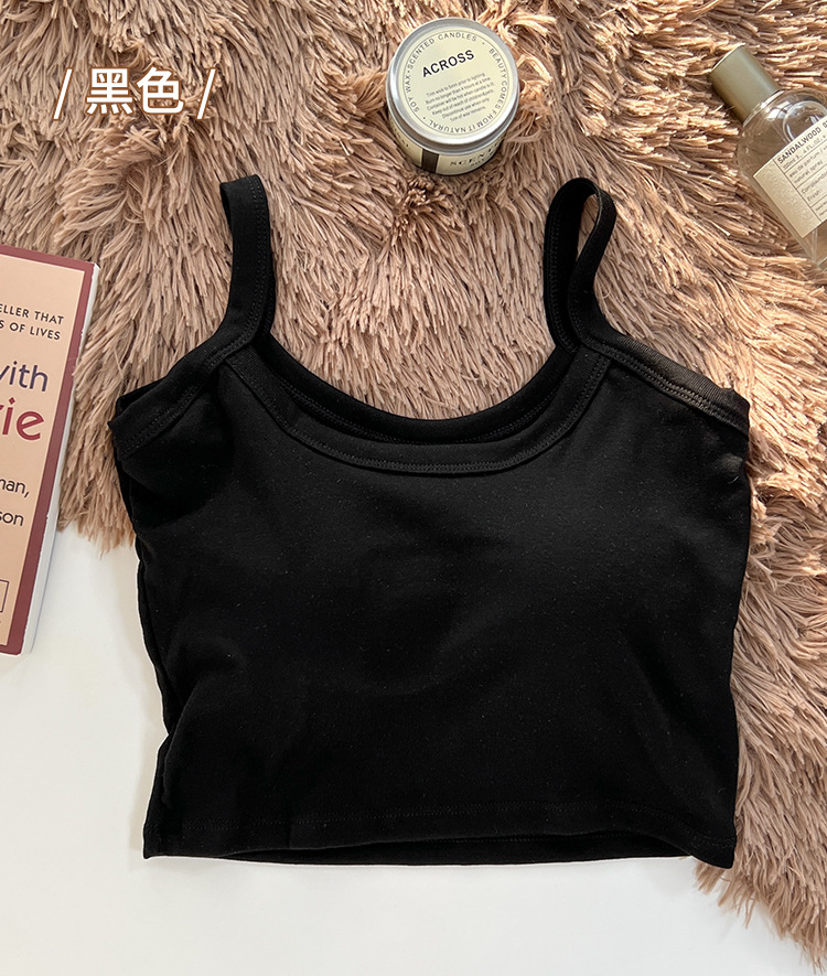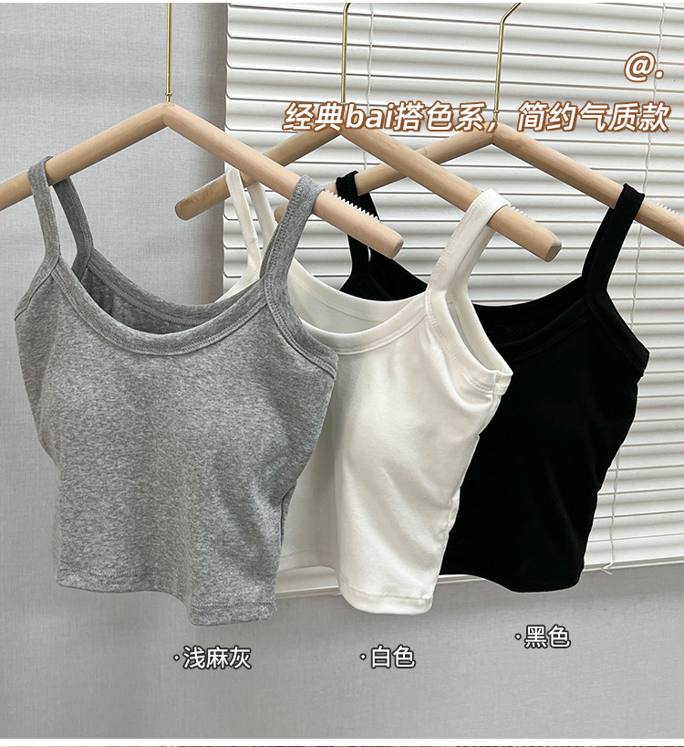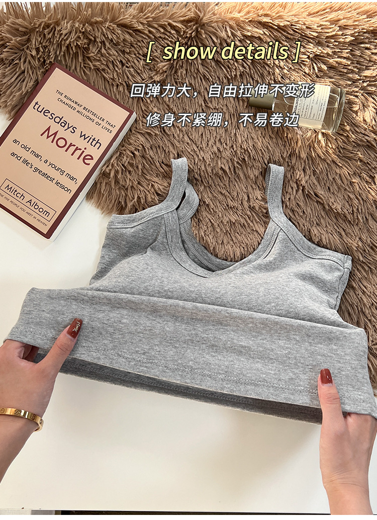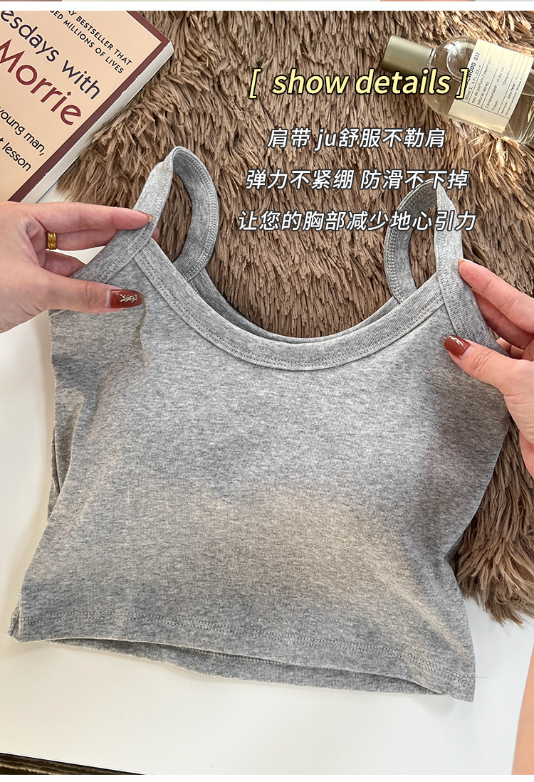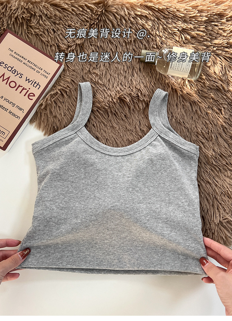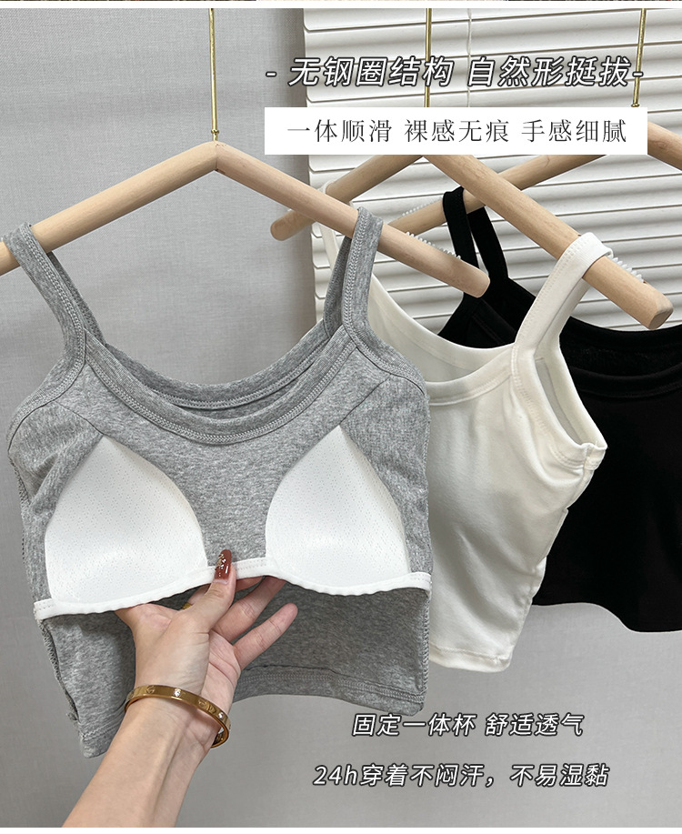 标题:新款少女圆领吊带背心一体式固定透气胸垫无钢圈纯棉内衣厂家批发