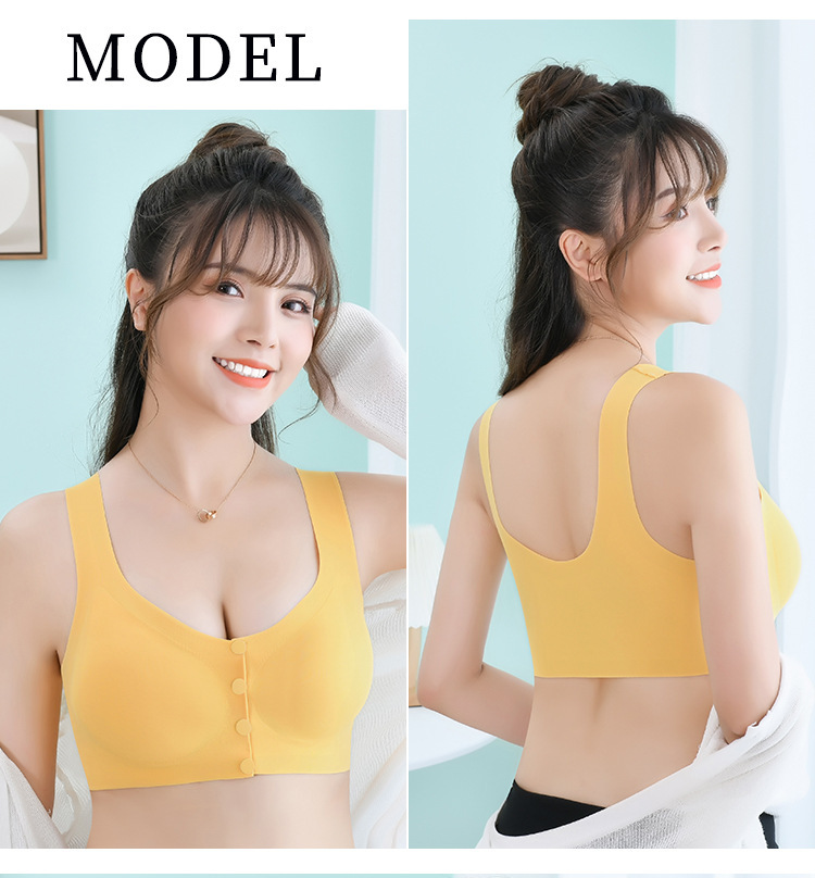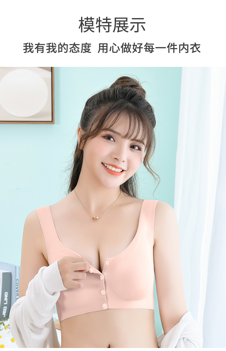 标题:冰丝无痕孕妇文胸聚拢无钢圈防下垂产后哺乳内衣女大码前开扣背心
