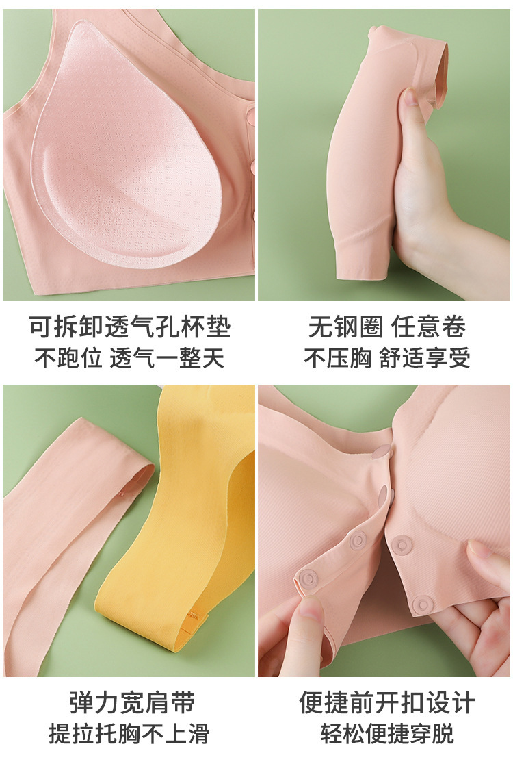 描述:货号:6208#哺乳内衣,产地:汕头,面料名称:锦纶,主面料成分:锦纶,里料成分:锦纶/尼龙,里料成分含量:30%(含)-50%(不含),肩带类型:固定双肩带,模杯类型:薄模杯,是否有钢圈:无钢圈,设计特色:一片式,是否无缝:否,排扣类型:前搭扣,颜色:奶昔粉,优雅黑,奶茶肤,雾镜灰,芒果黄,抹茶绿,尺码:M/L码(90-120斤),XL/2XL(120-150斤),是否跨境出口专供货源:否,上市时间:2023年秋季,适用阶段:产后,主面料成分含量:80%(含)-90%(不含),风格:简约自然,
