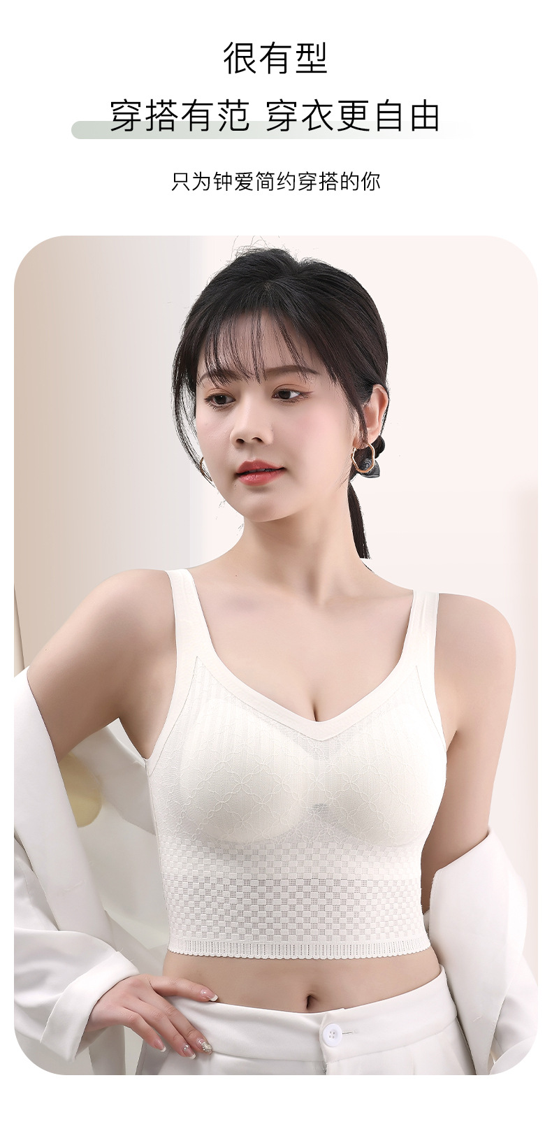标题:提花美背无痕舒适内衣女小胸聚拢收副乳外穿内搭修身显瘦背心薄款