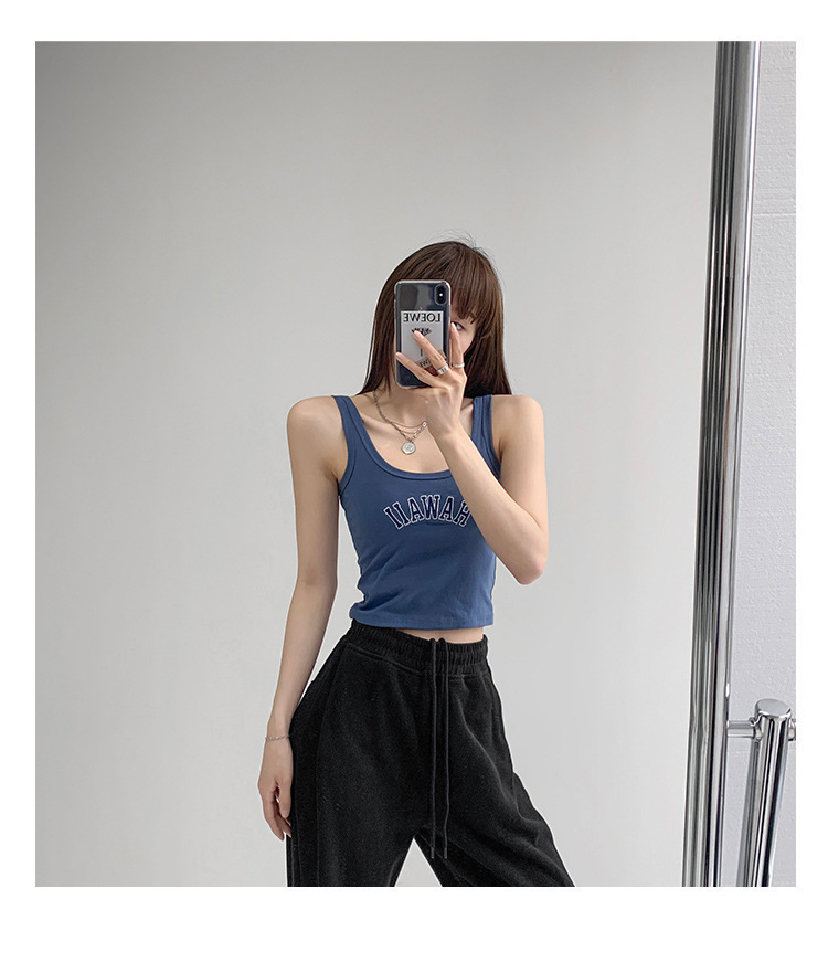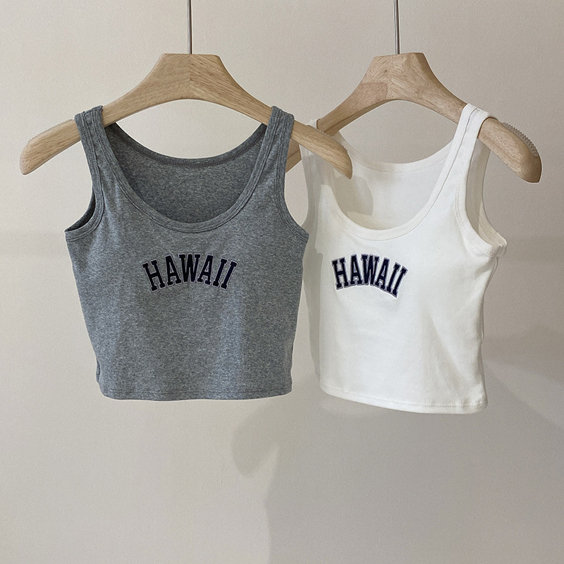 标题:赵思露同款字母纯棉美背刺绣露脐背心一体固定杯聚拢打底内衣薄款