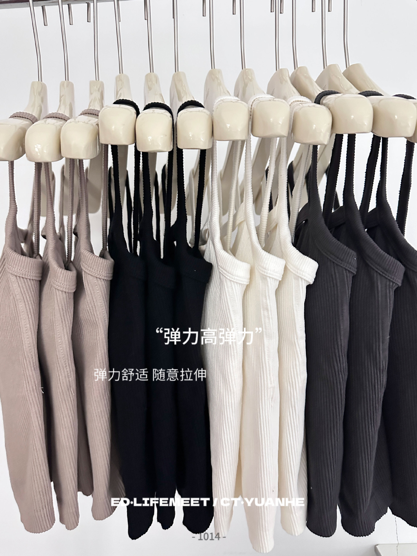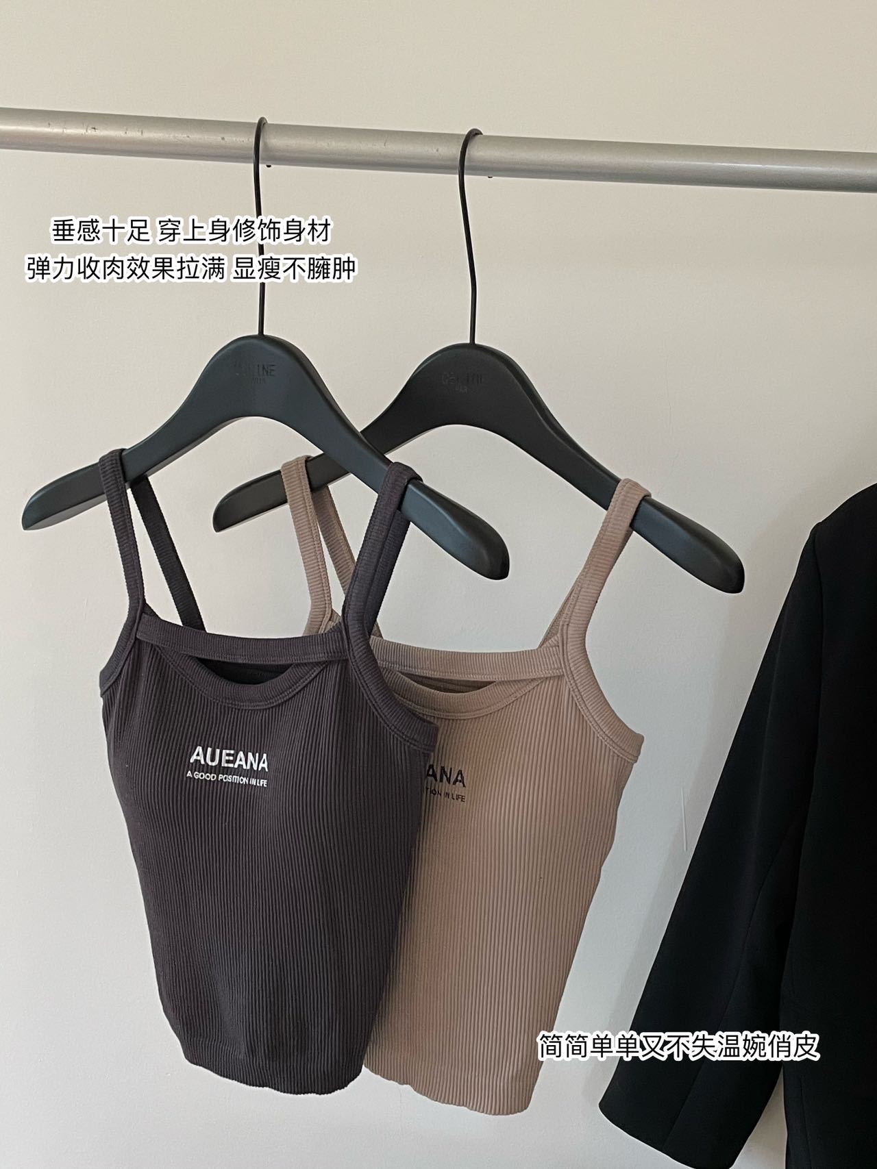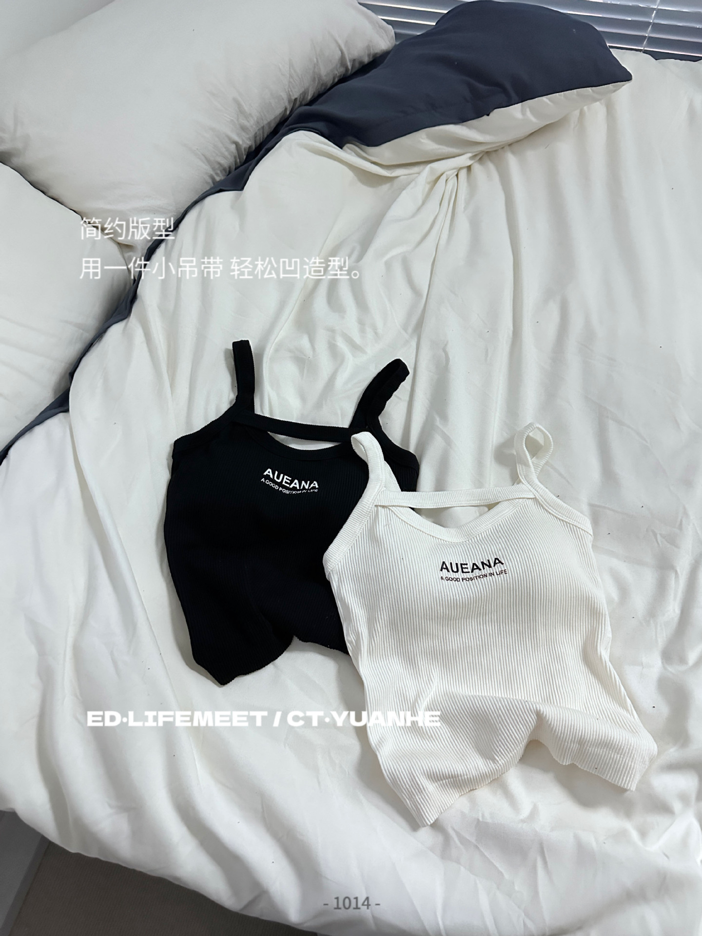 描述:货号:8777,品牌:E.D.lifemeet,款式:吊带款,版型:修身型,衣长:普通款(50cm<衣长≤65cm),图案:字母/数字/文字,流行元素:螺纹,上市年份/季节:2023年秋季,面料名称:再生纤维,主面料成分:再生纤维素纤维,颜色:黑色,白色,杏色,灰色,尺码:F【80-130斤】,主面料成分含量:30%(含)-50%(不含),风格:简约风,风格类型:日韩休闲,弹力:中弹,是否跨境货源:否,肩带样式:不可拆卸,双根式,主面料成分2含量:30%以下,主面料成分2:氨纶,