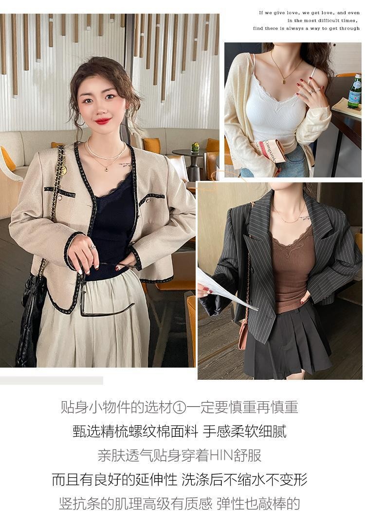 标题:美背蕾丝性感百搭吊带背心女带胸垫春秋气质V 领打底外穿修身上衣
