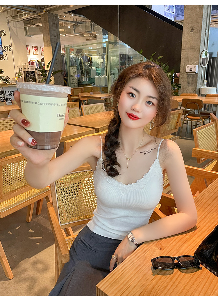 描述:货号:2042#,品牌:其他,款式:吊带款,版型:修身型,衣长:短款(40cm<衣长≤50cm),图案:纯色,流行元素:蕾丝,上市年份/季节:2023年秋季,面料名称:锦纶,主面料成分:锦纶,颜色:白色,黑色,杏色,灰色,咖啡色,尺码:均码【建议80-125斤】,主面料成分含量:90%(含)-95%(不含),风格:性感风,风格类型:私服名媛,弹力:中弹,是否跨境货源:否,肩带样式:不可拆卸,