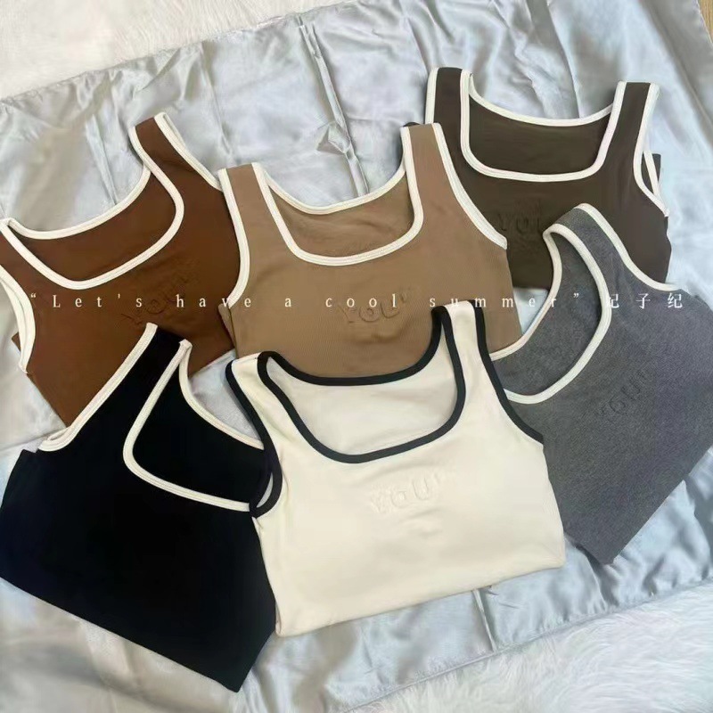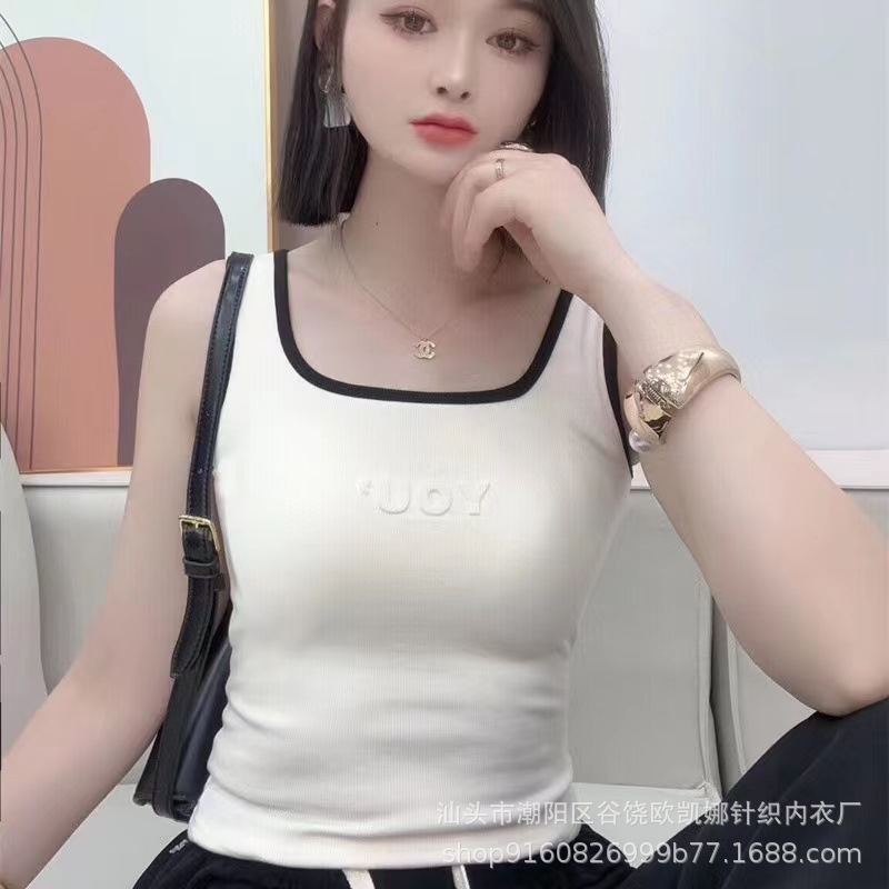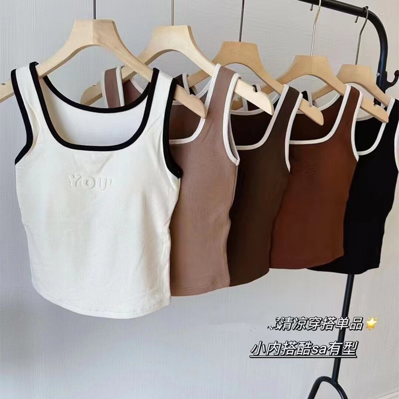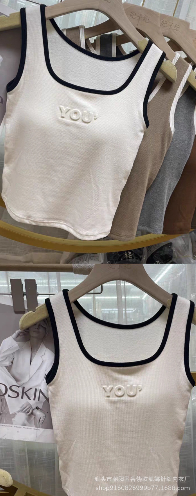 标题:秋冬撞色纯棉螺纹磨毛字母背心方领乳胶固定杯辣妹修身保暖内衣女