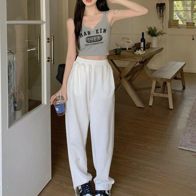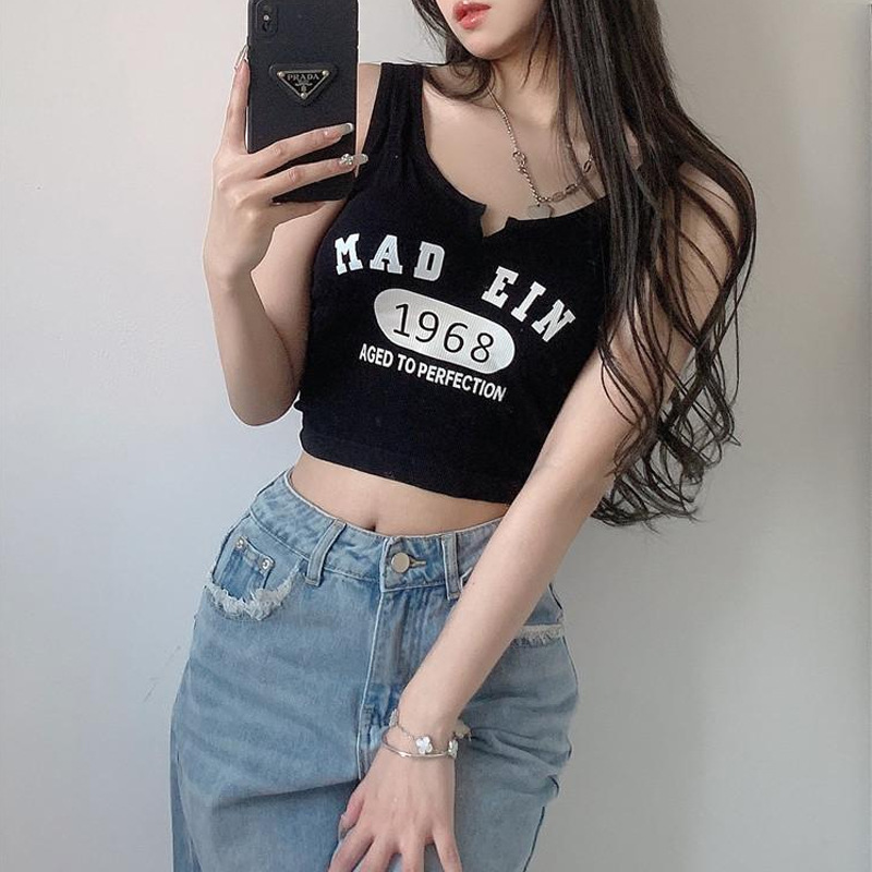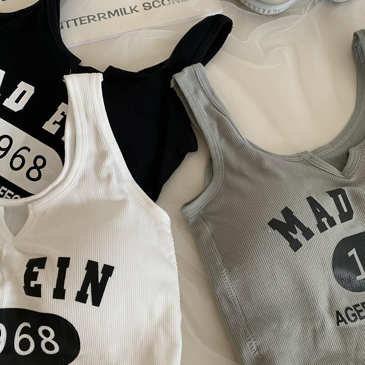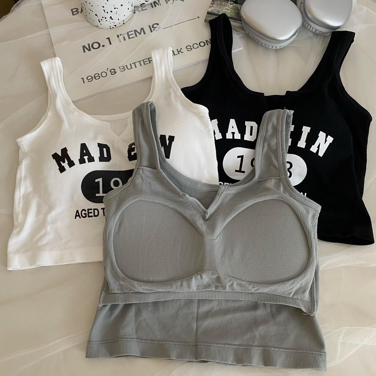标题:美式辣妹运动字母印花吊带背心女带胸垫内搭修身外穿美背短款上衣