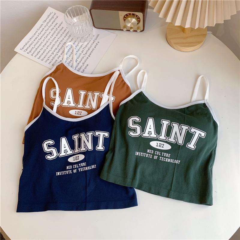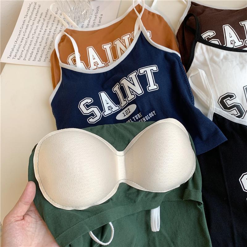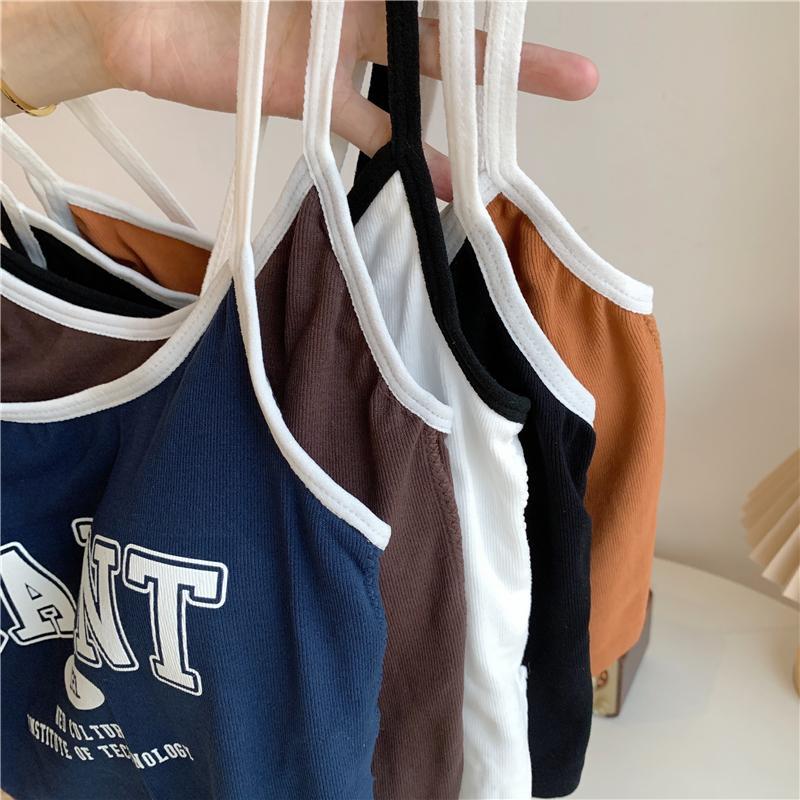 标题:美式辣妹百搭字母印花美背无袖吊带背心女带胸垫内外穿显瘦上衣夏