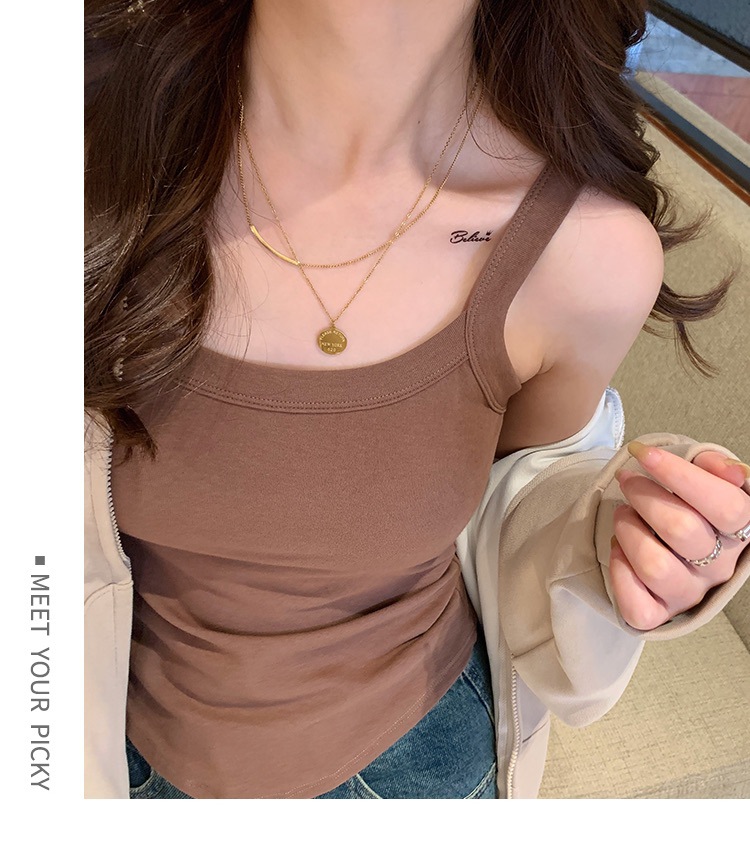 描述:货号:1017#,品牌:其他,款式:吊带款,版型:修身型,衣长:短款(40cm<衣长≤50cm),图案:纯色,流行元素:纯色,上市年份/季节:2023年夏季,面料名称:棉,主面料成分:棉,颜色:白色,黑色,灰色,咖啡色,尺码:均码【建议80-125斤】,主面料成分含量:90%(含)-95%(不含),风格:简约风,风格类型:日韩休闲,弹力:中弹,跨境风格类型:舒适休闲,是否跨境货源:是,肩带样式:不可拆卸,主要下游销售地区1:欧美,