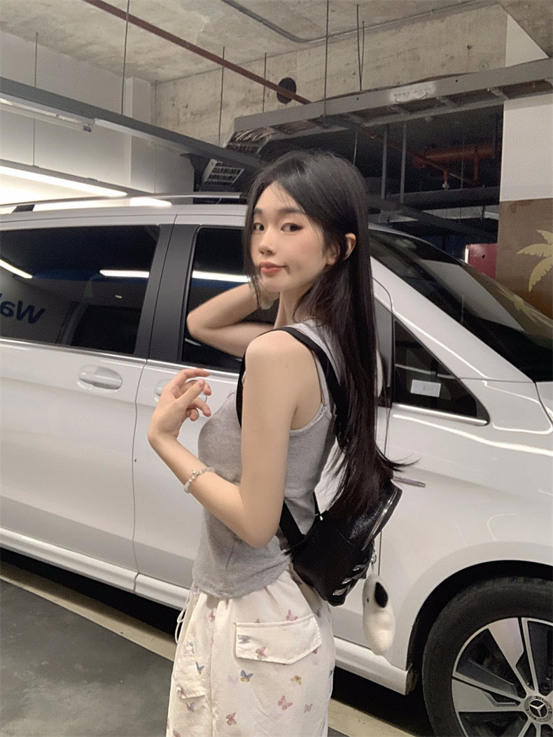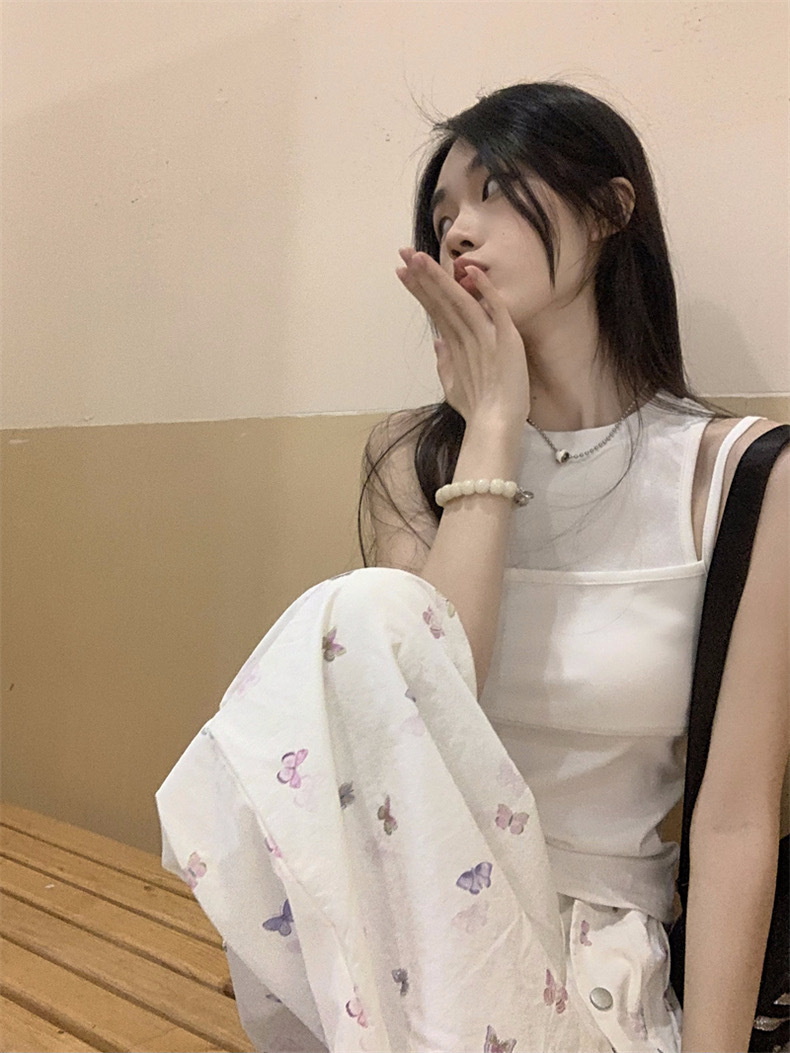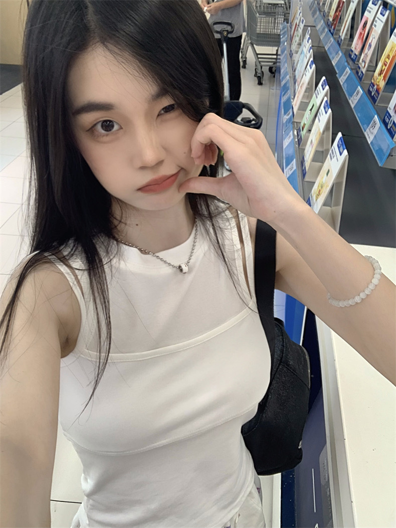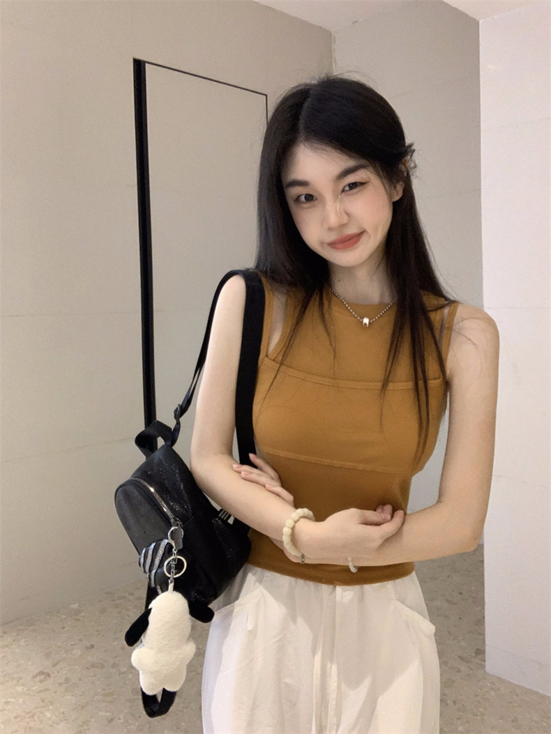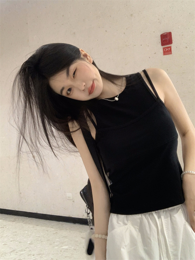 标题:纯棉设计感百搭无袖背心女带胸垫修身显瘦外穿打底假两件辣妹上衣