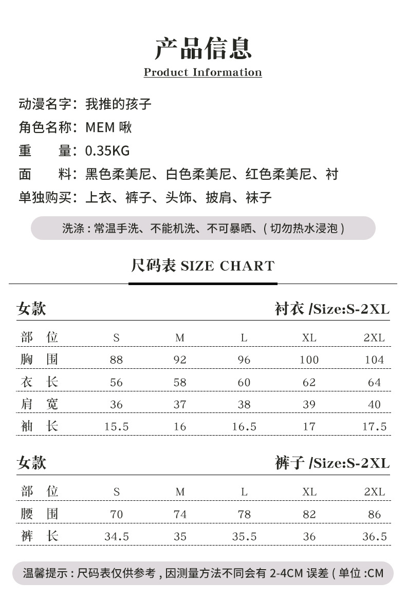 标题:推しの子 星野アイ 有馬かな MEMちょ ルビーコスプレ衣装 仮装変装 制服 コスチューム クリスマス イベント文化祭 ハロウィン