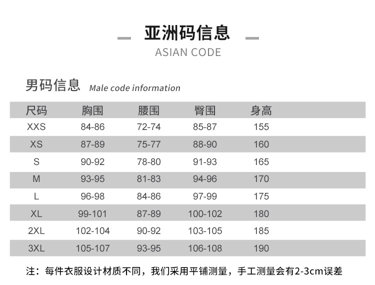 属性:XS,S,M,L,XL,XXL,XXXL,110(儿童),120(儿童),130(儿童),140(儿童),150(儿童)
