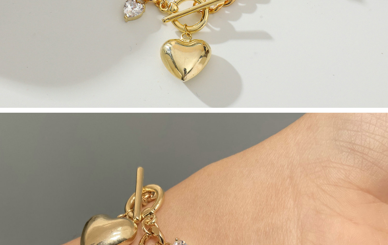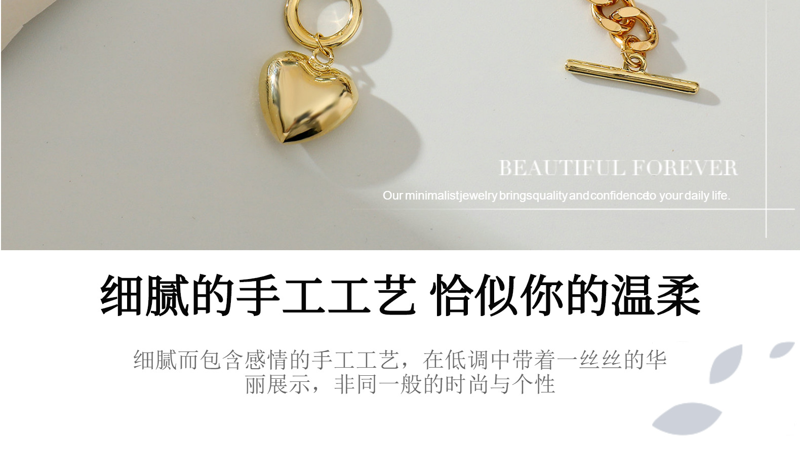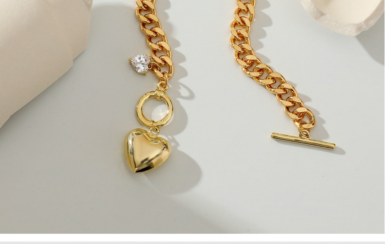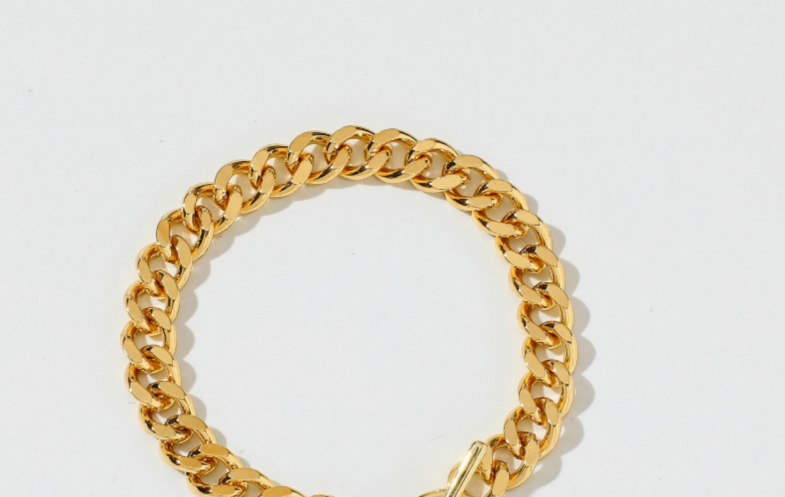 标题:时尚款古巴链镀金手链心形锆石魅力光滑女士几何心形吊坠手镯手链