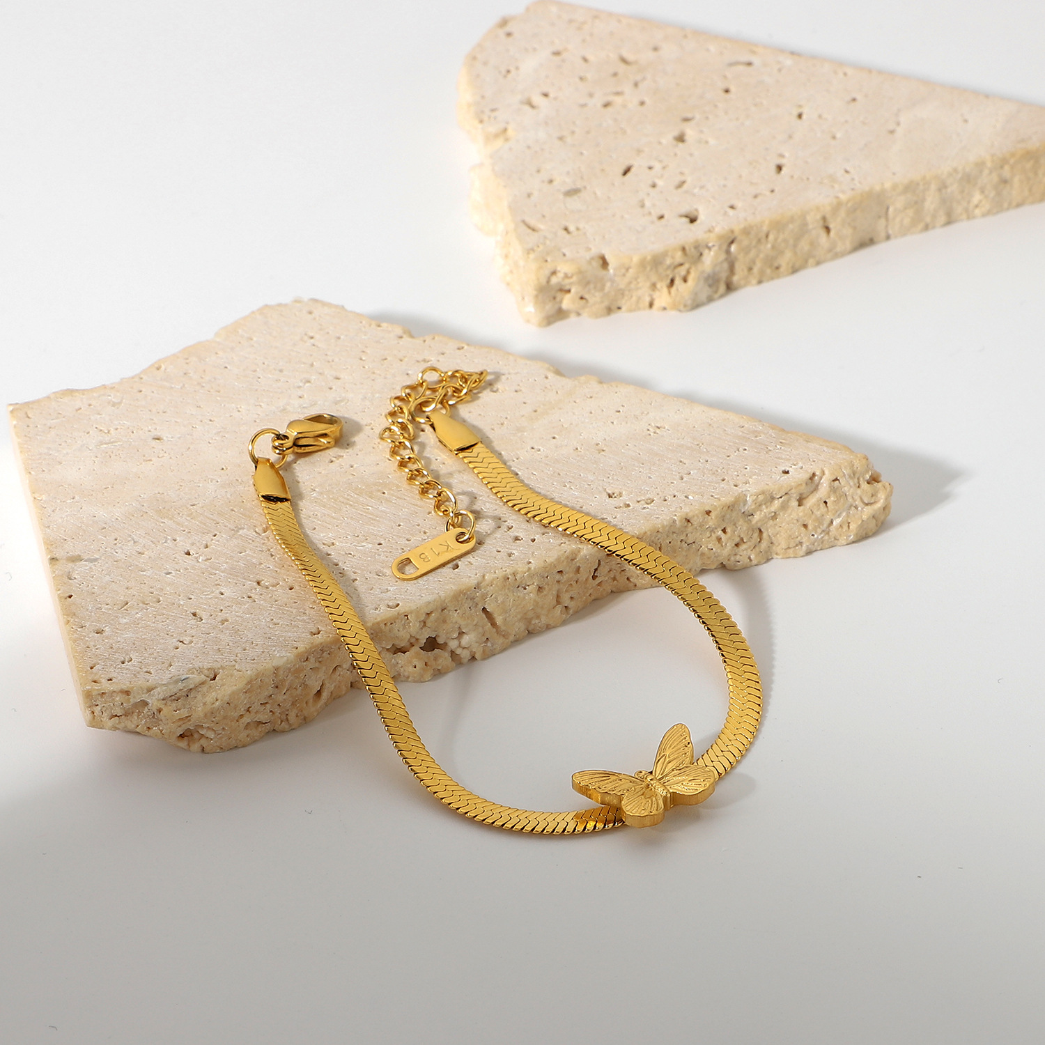 标题:欧美网红新款不锈钢首饰人字形领骨链手链朋克蝴蝶蛇链手链饰品女
