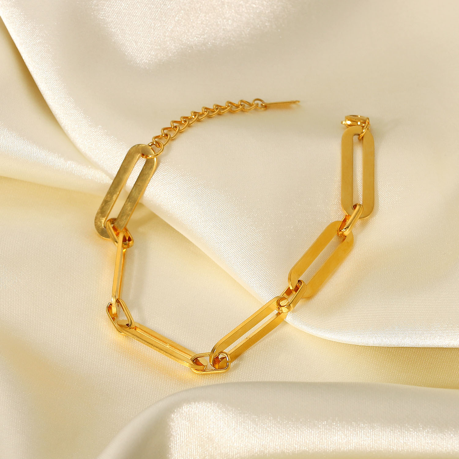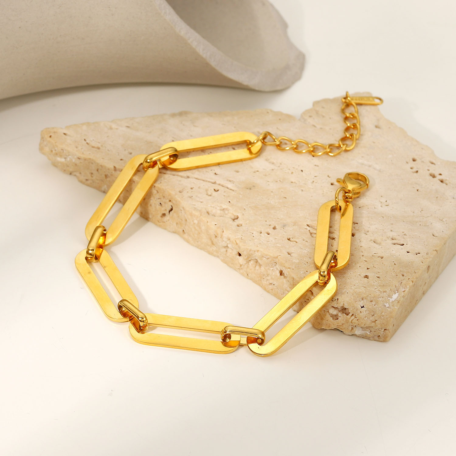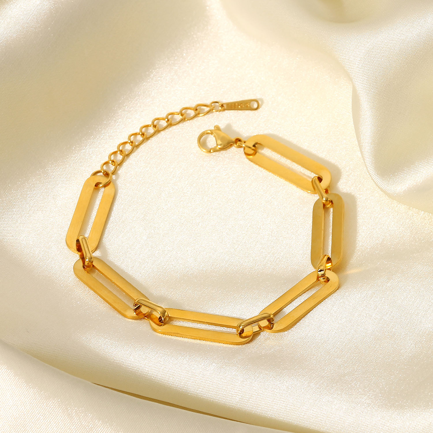 标题:ins时尚不锈钢链条手链18K镀金链条简约极简手工超大长方形手链女