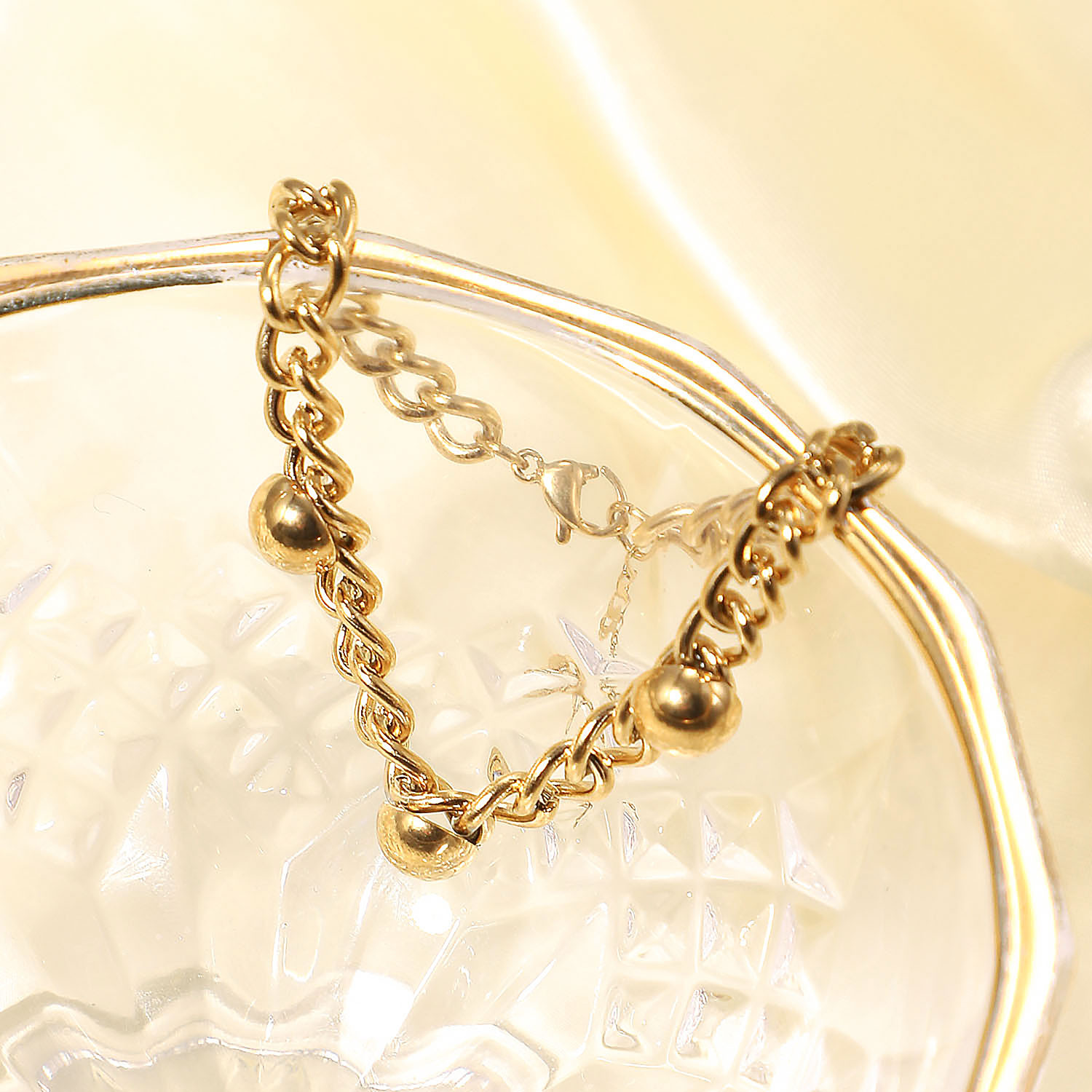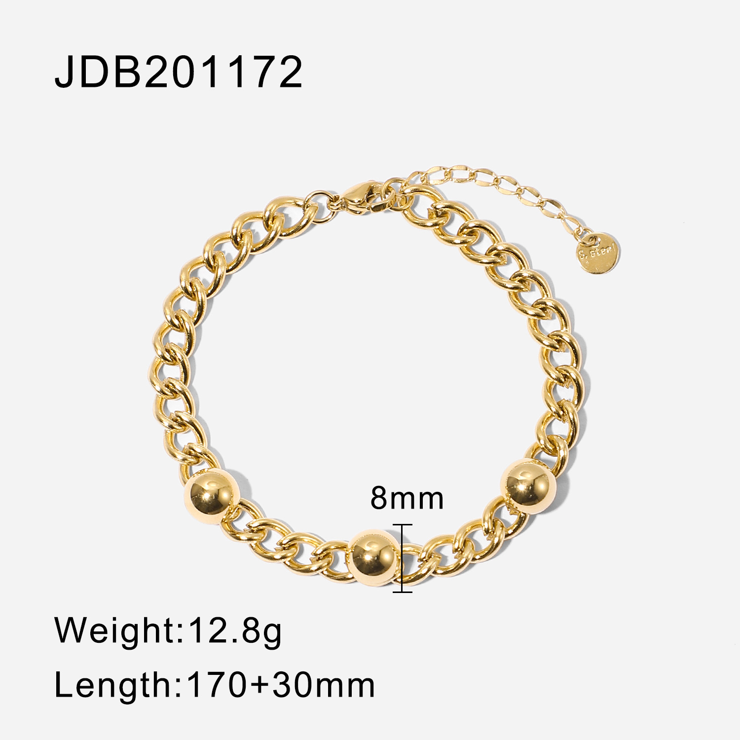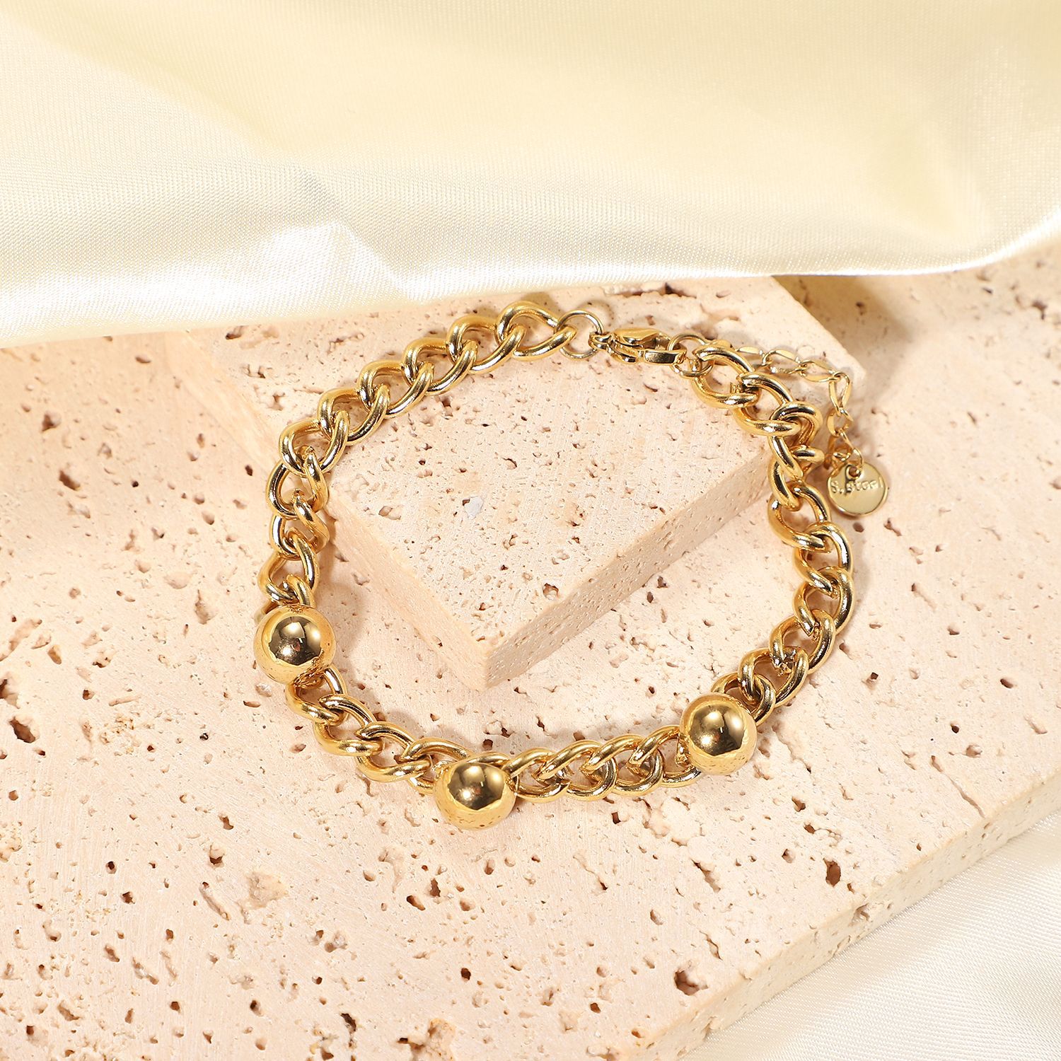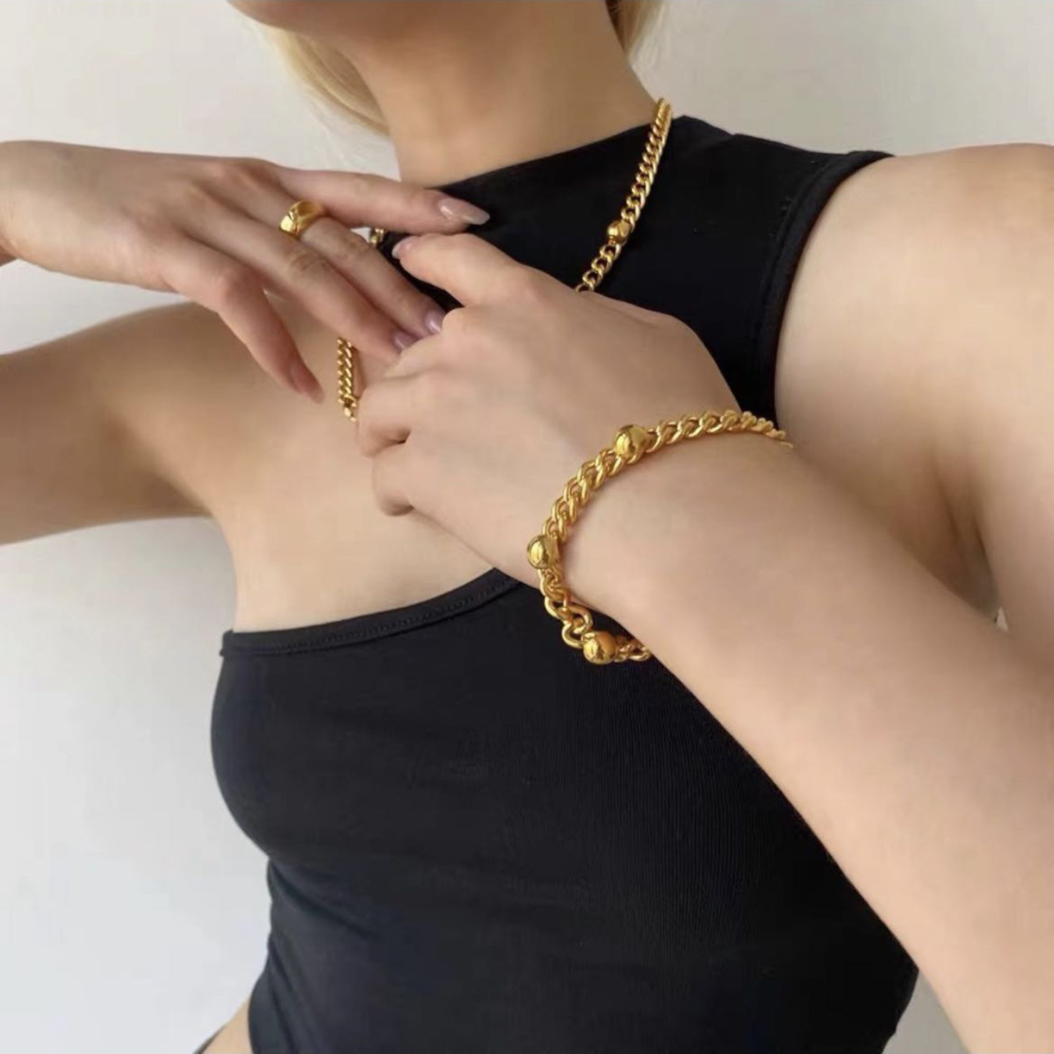 标题:欧美INS网红同款项链14K金不锈钢三颗立体圆钉手链古巴链女式饰品