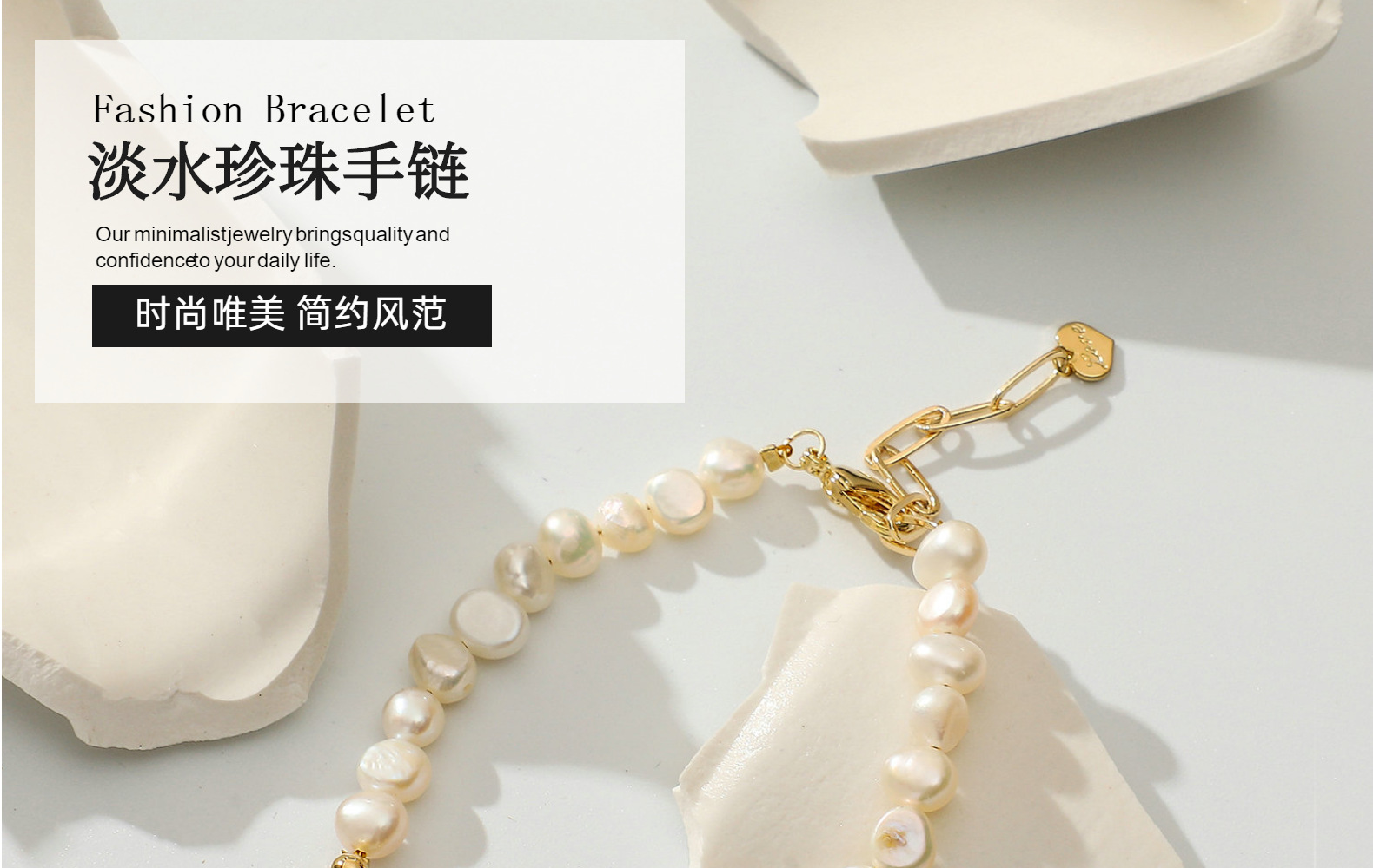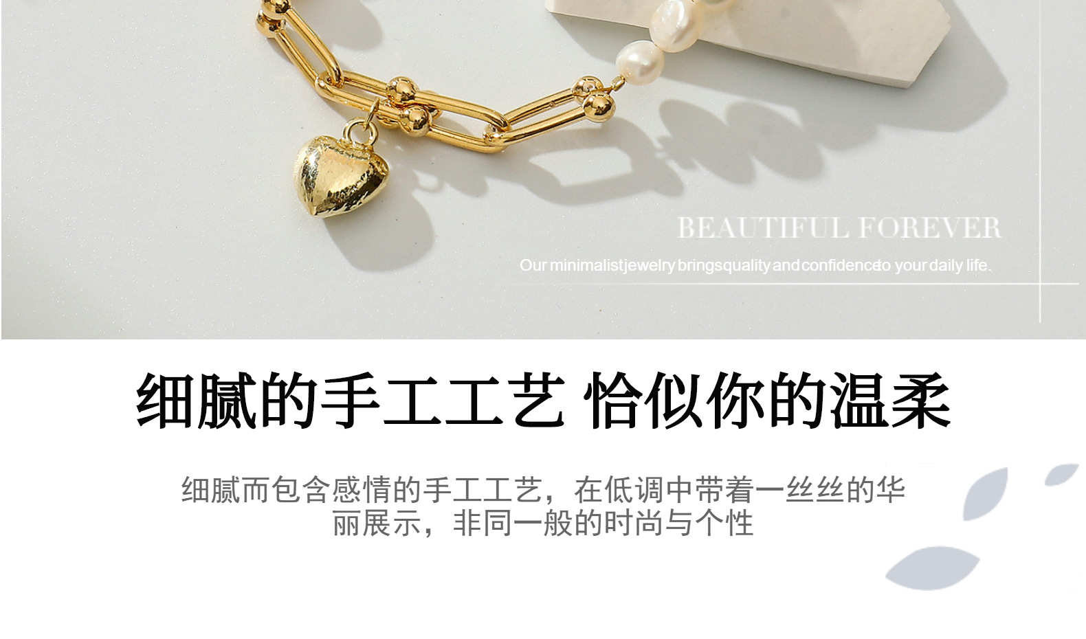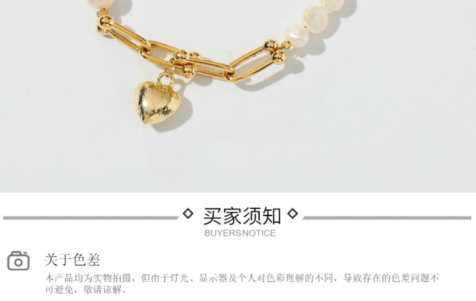 标题:巴洛克风格14K镀金光滑心形魅力手链 女性款手链天然淡水珍珠手链