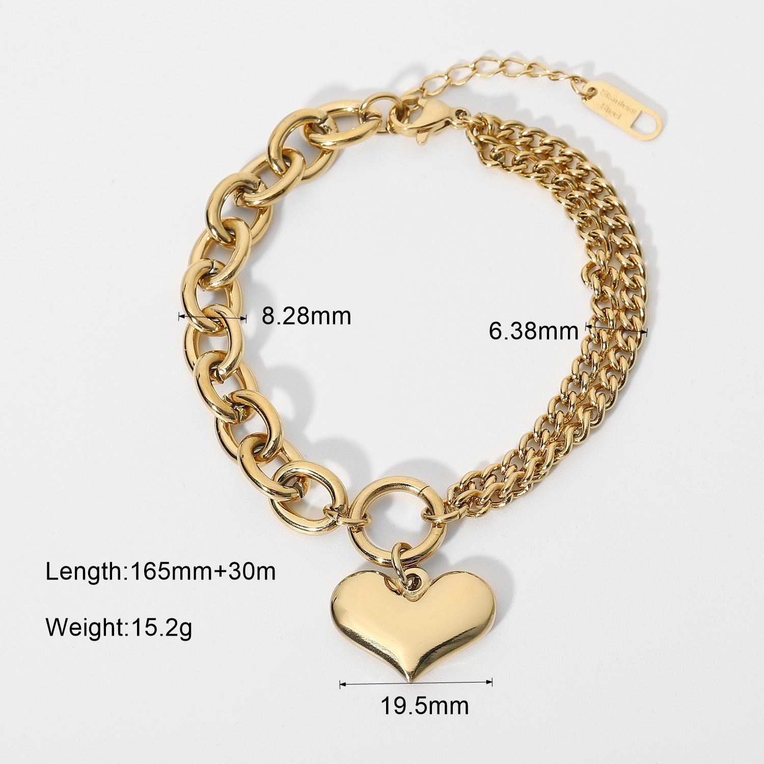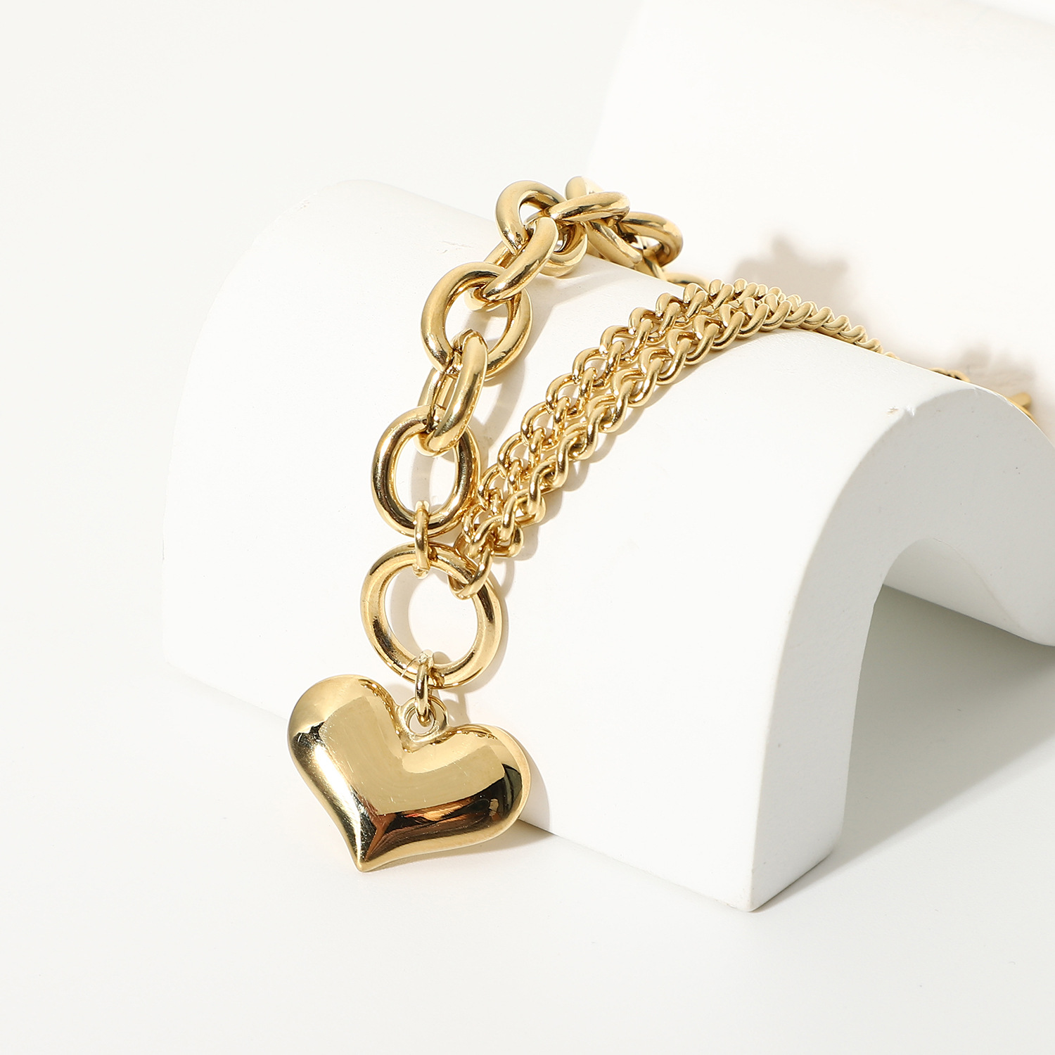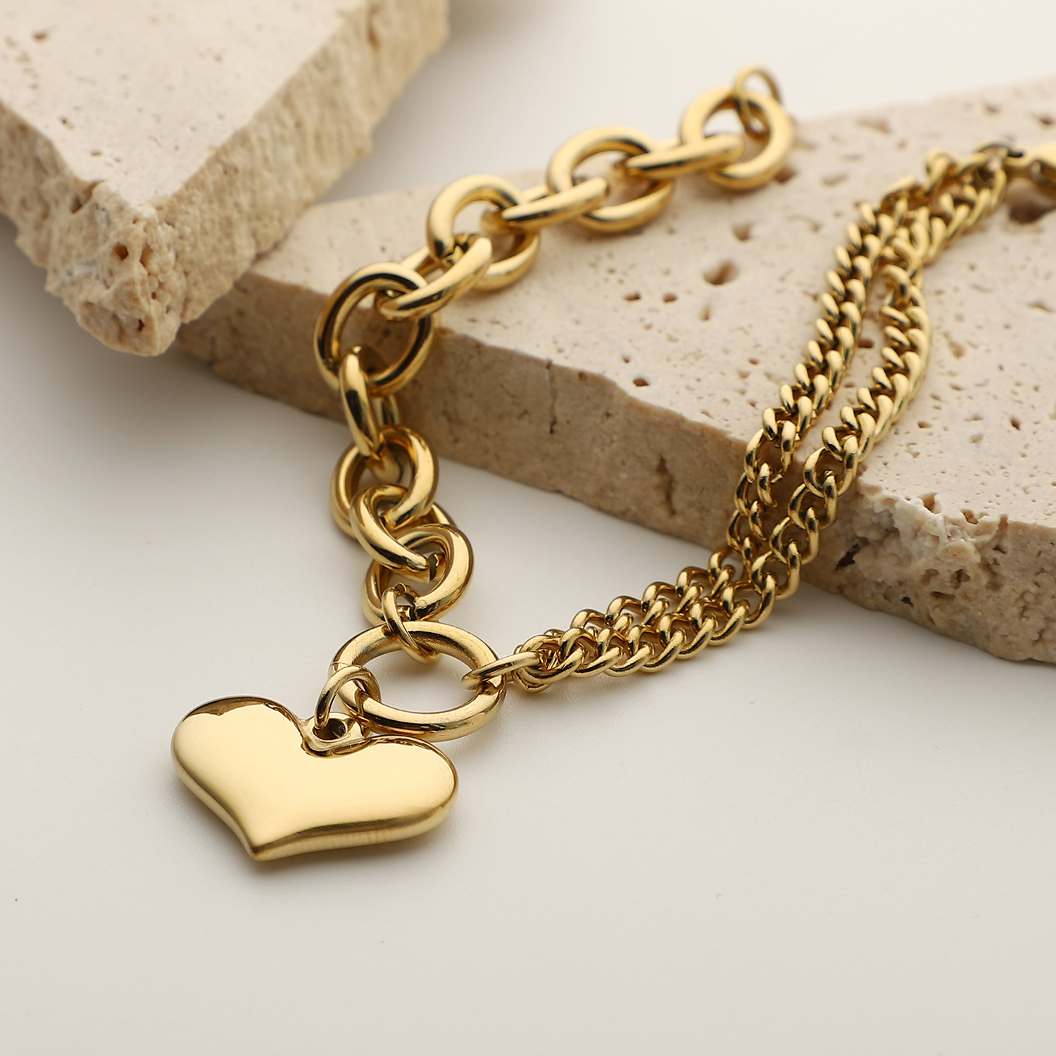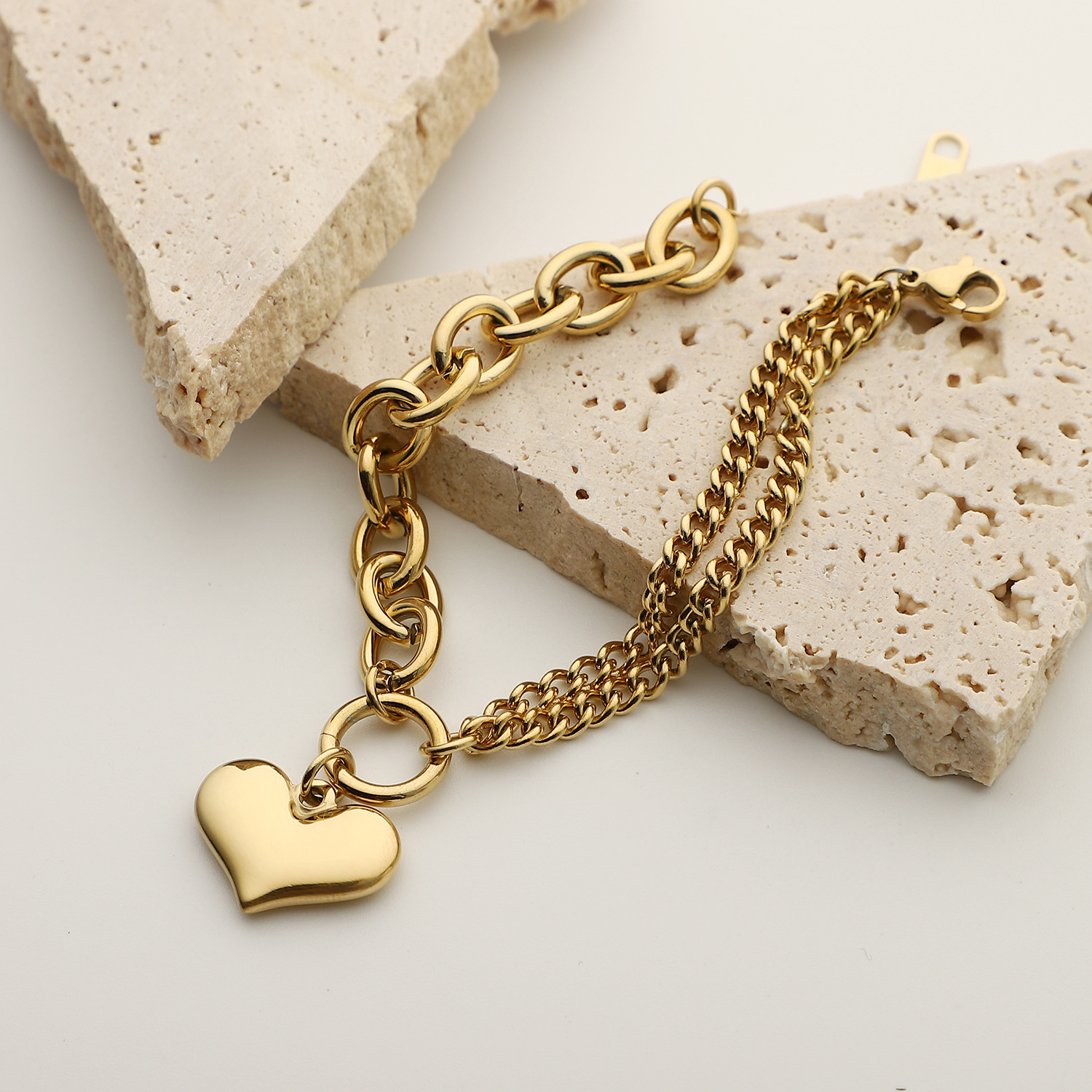 标题:欧美INS爱心手链14K镀金不锈钢链式手链女式拼接光滑心形吊坠手链