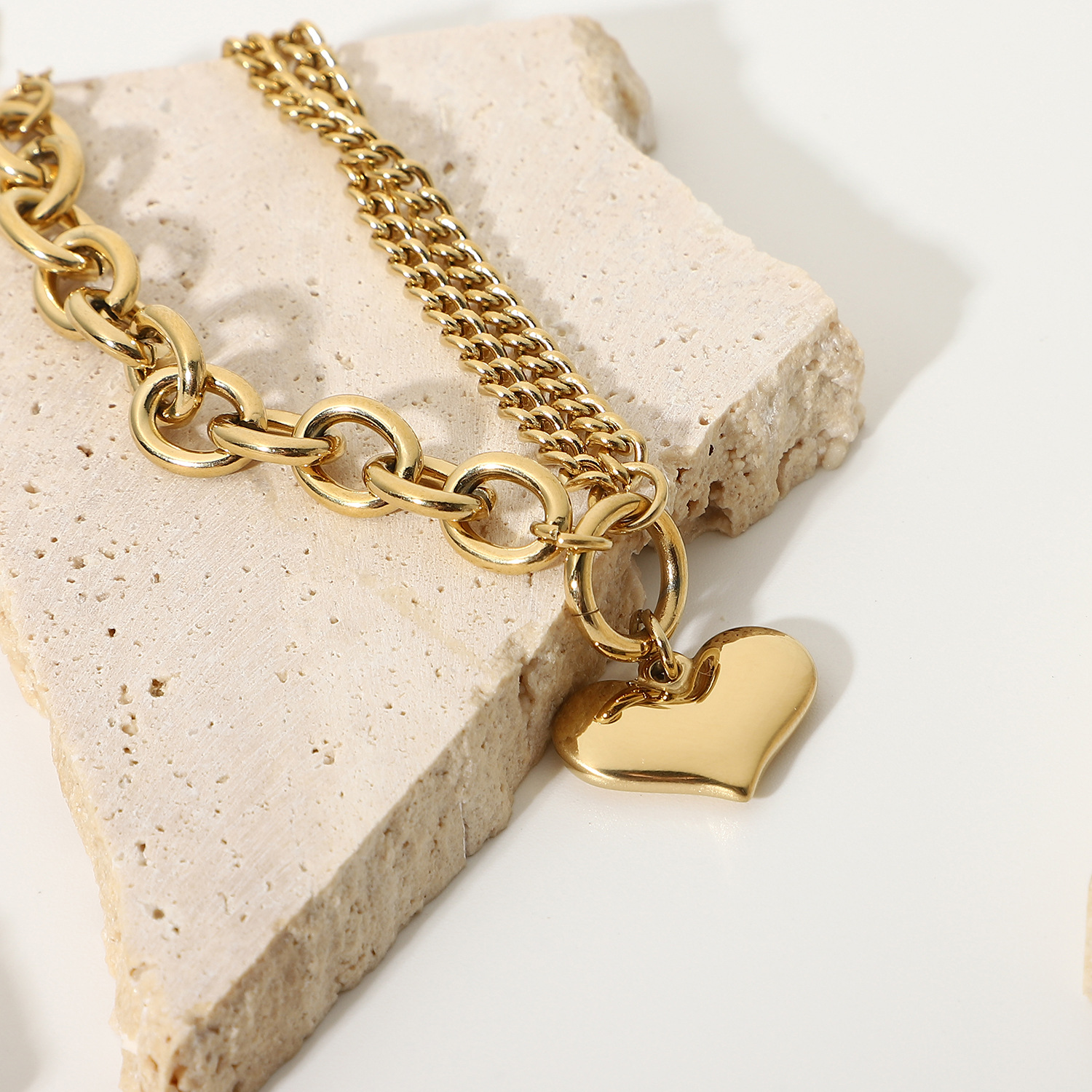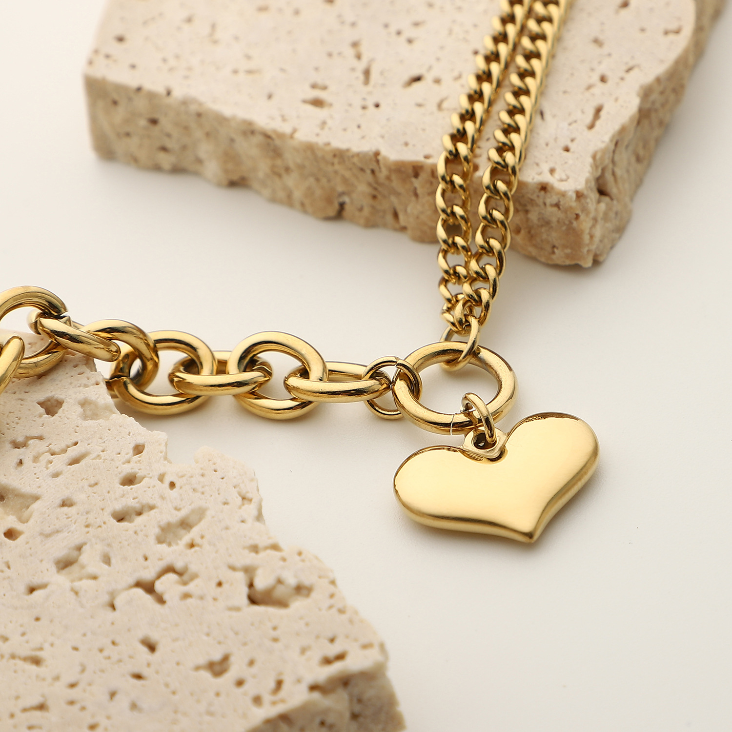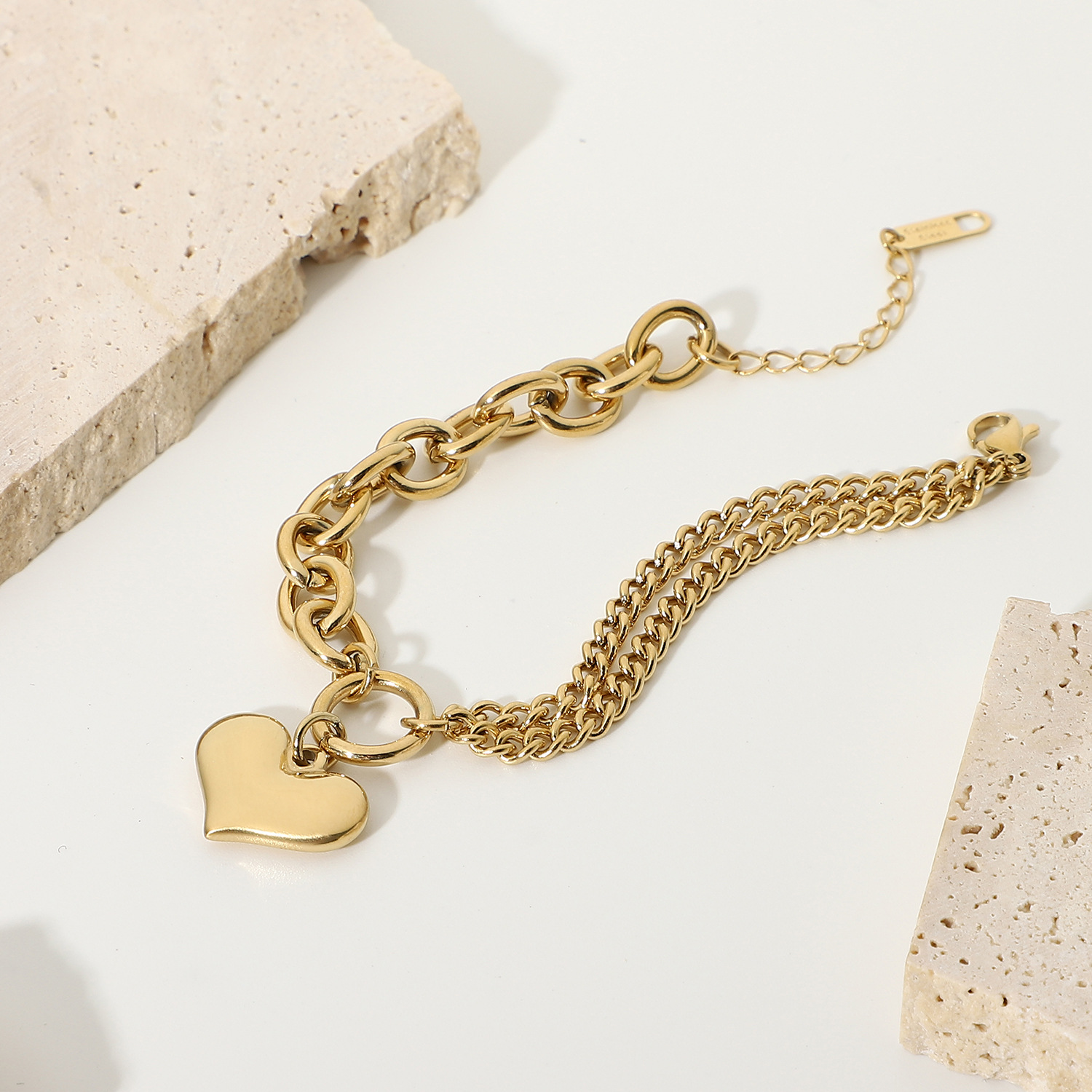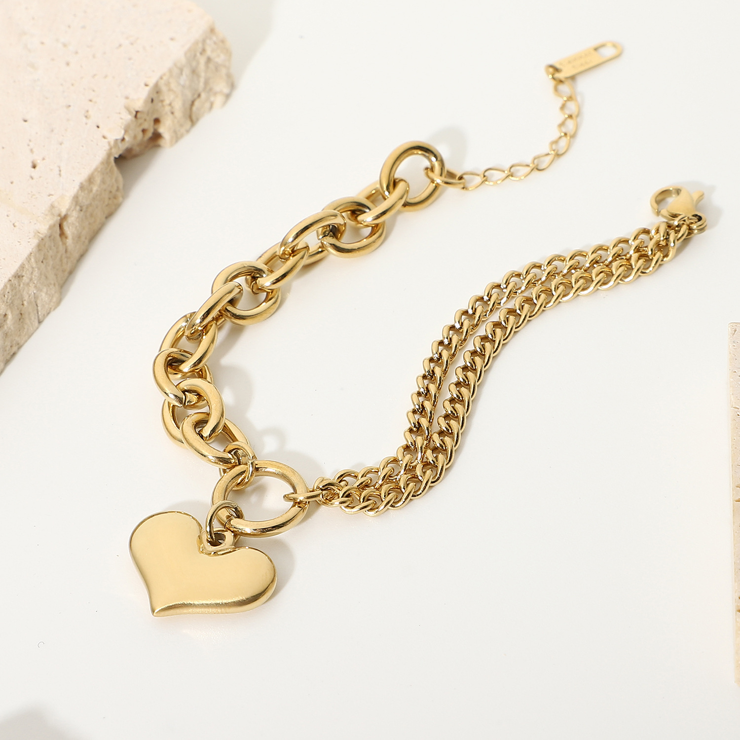 标题:欧美INS爱心手链14K镀金不锈钢链式手链女式拼接光滑心形吊坠手链