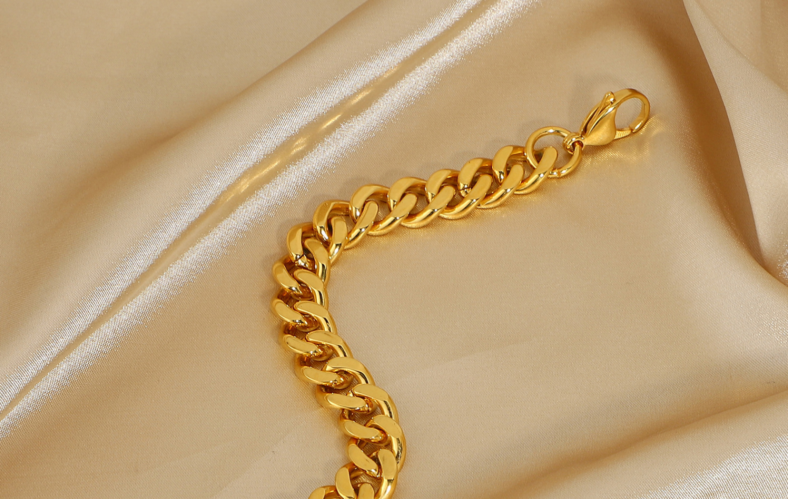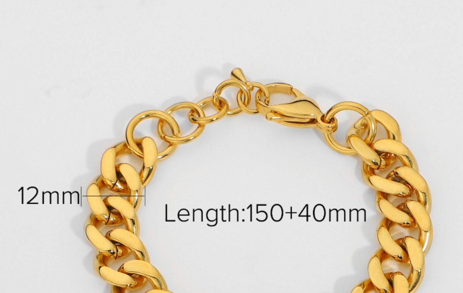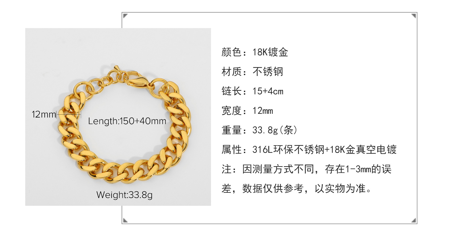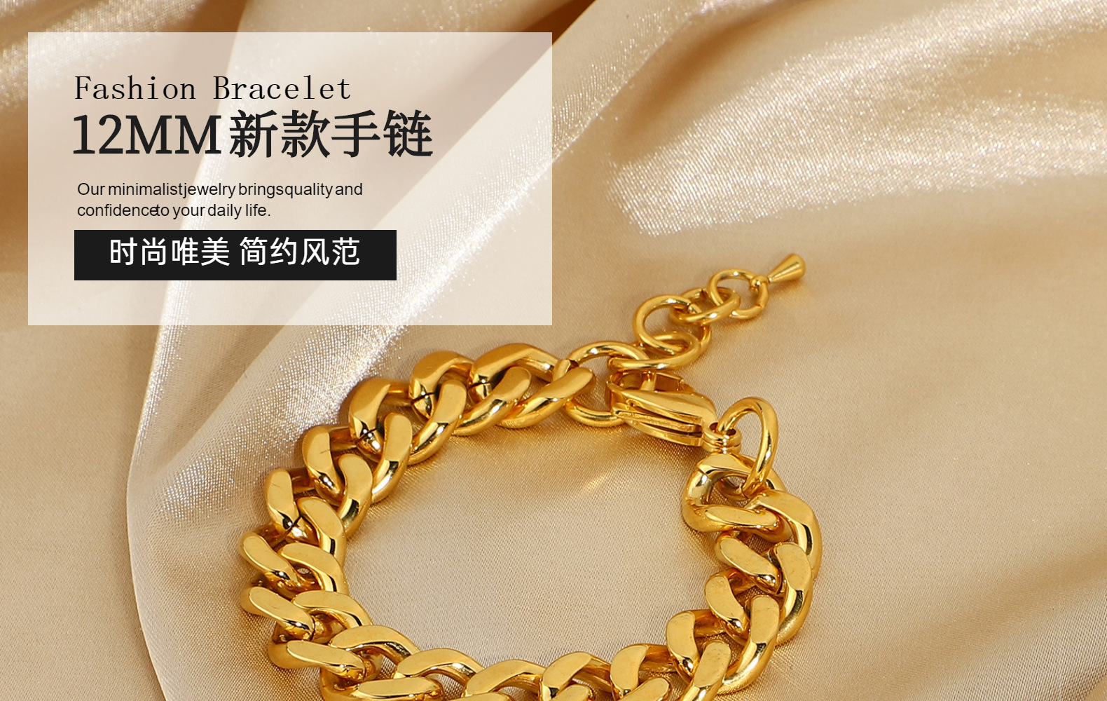 标题:欧美风12mm宽古巴链手链网红同款不锈钢镀金女士男士朋克珠宝手链