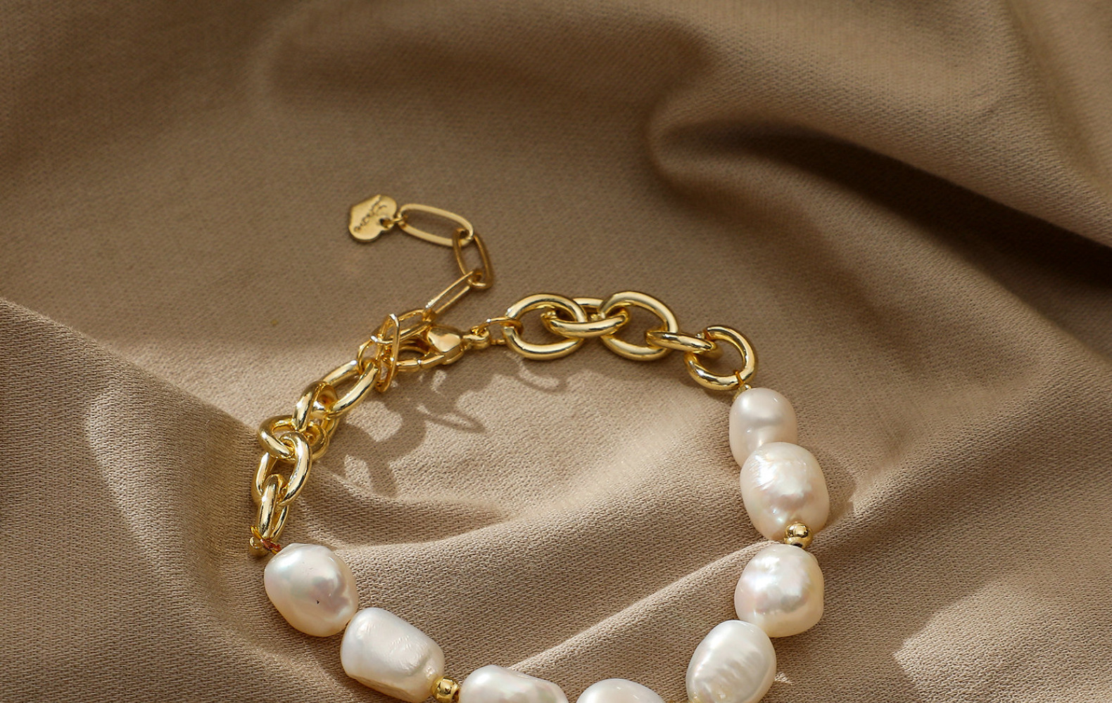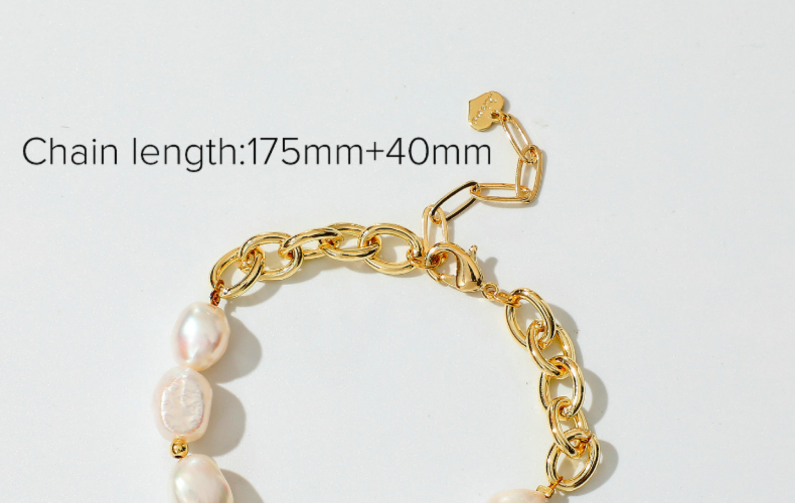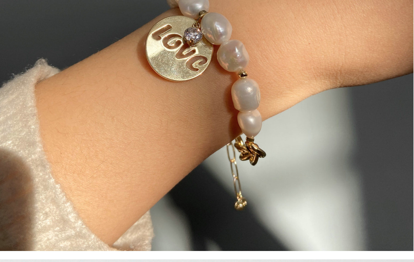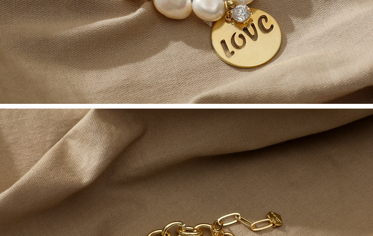 标题:欧美时尚简约女式款铜镀真金爱情坠饰手链锆石小饰物淡水珍珠手链
