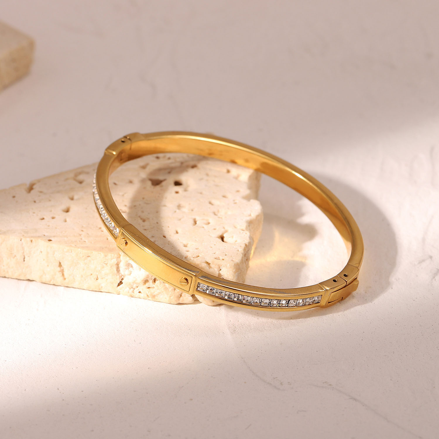 标题:跨境INS网红设计款镶锆闭口可打开手镯真空电镀18K金欧美手饰女式