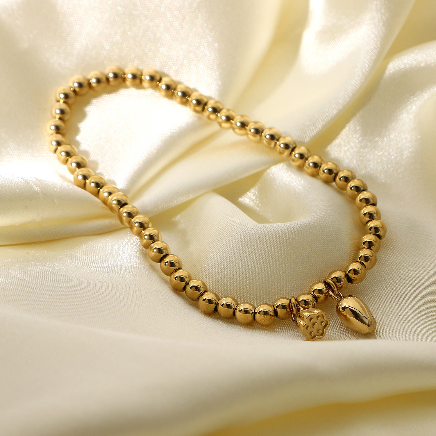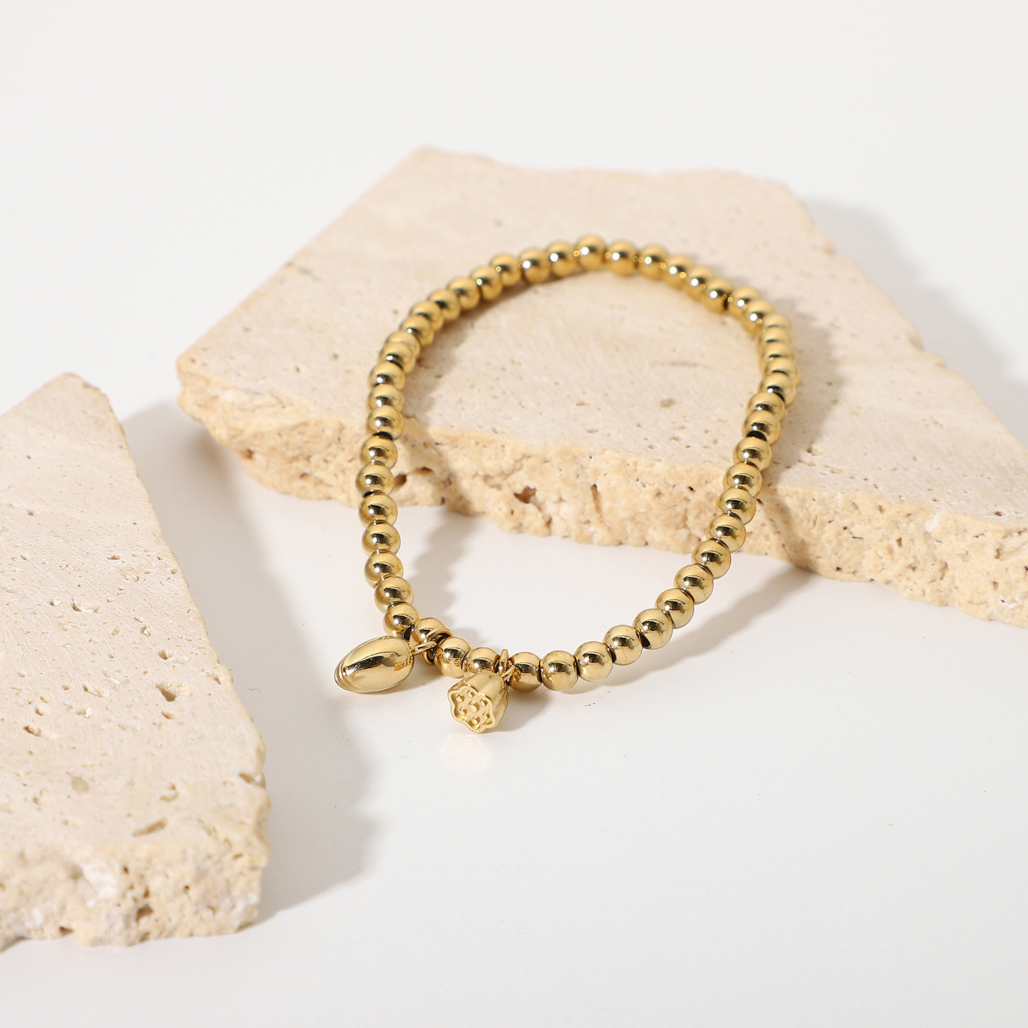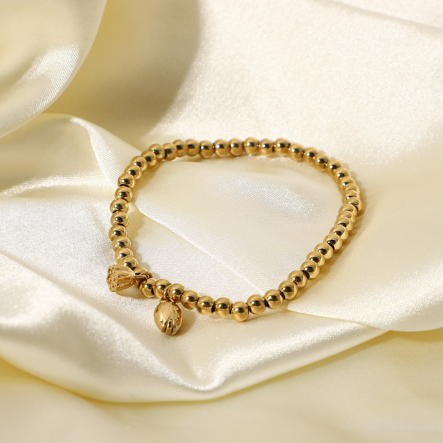 标题:INS风14K金莲花小饰物手镯不锈钢小圆形金属球串珠手链饰品批发女