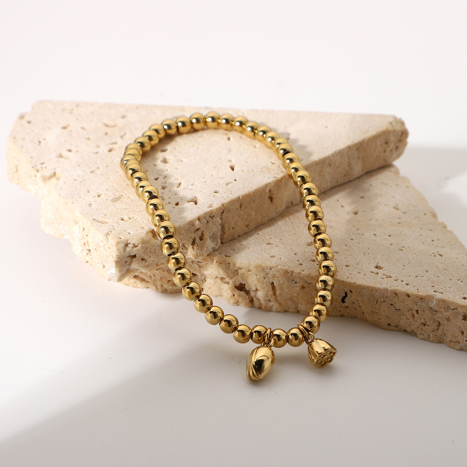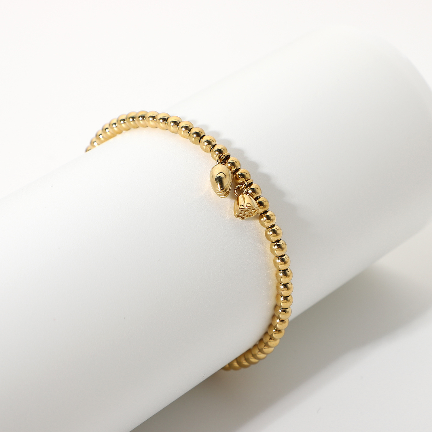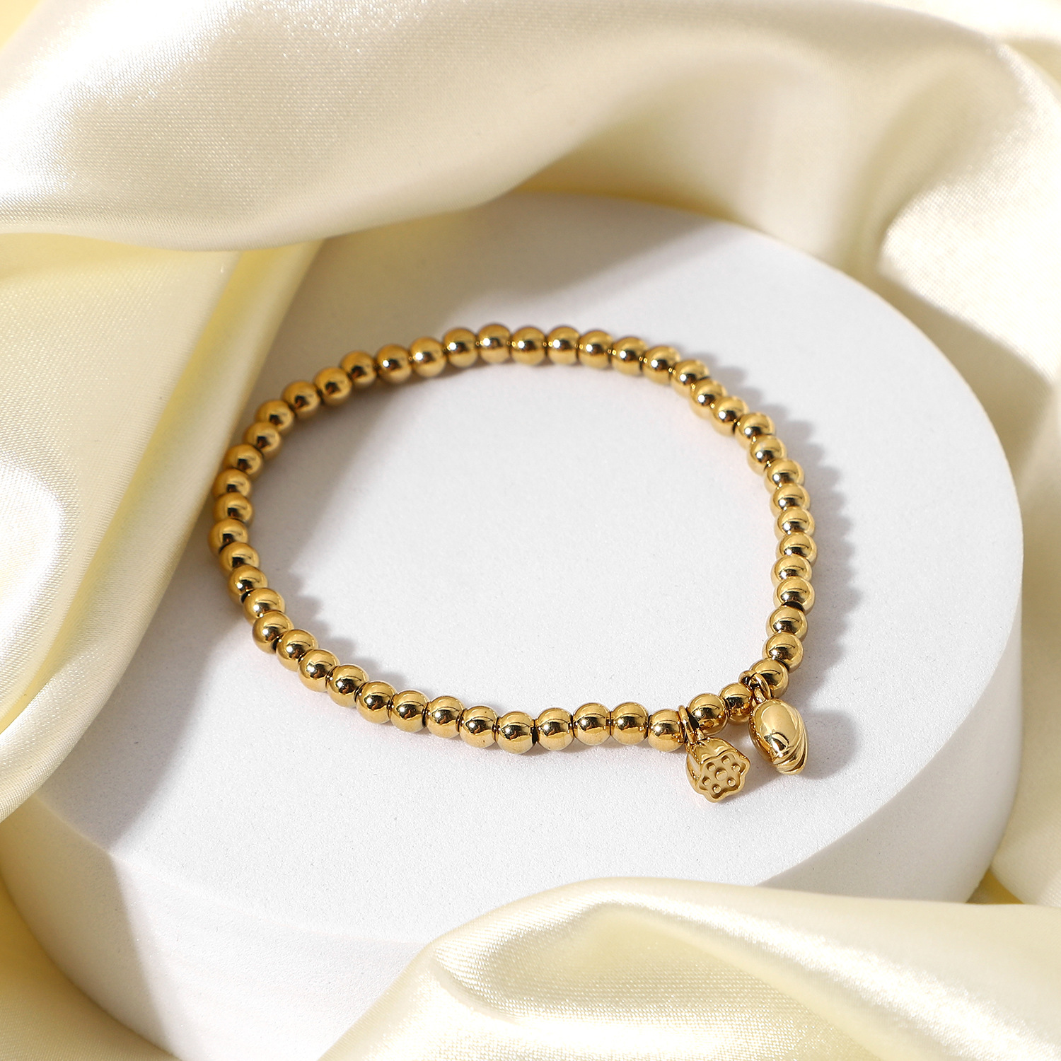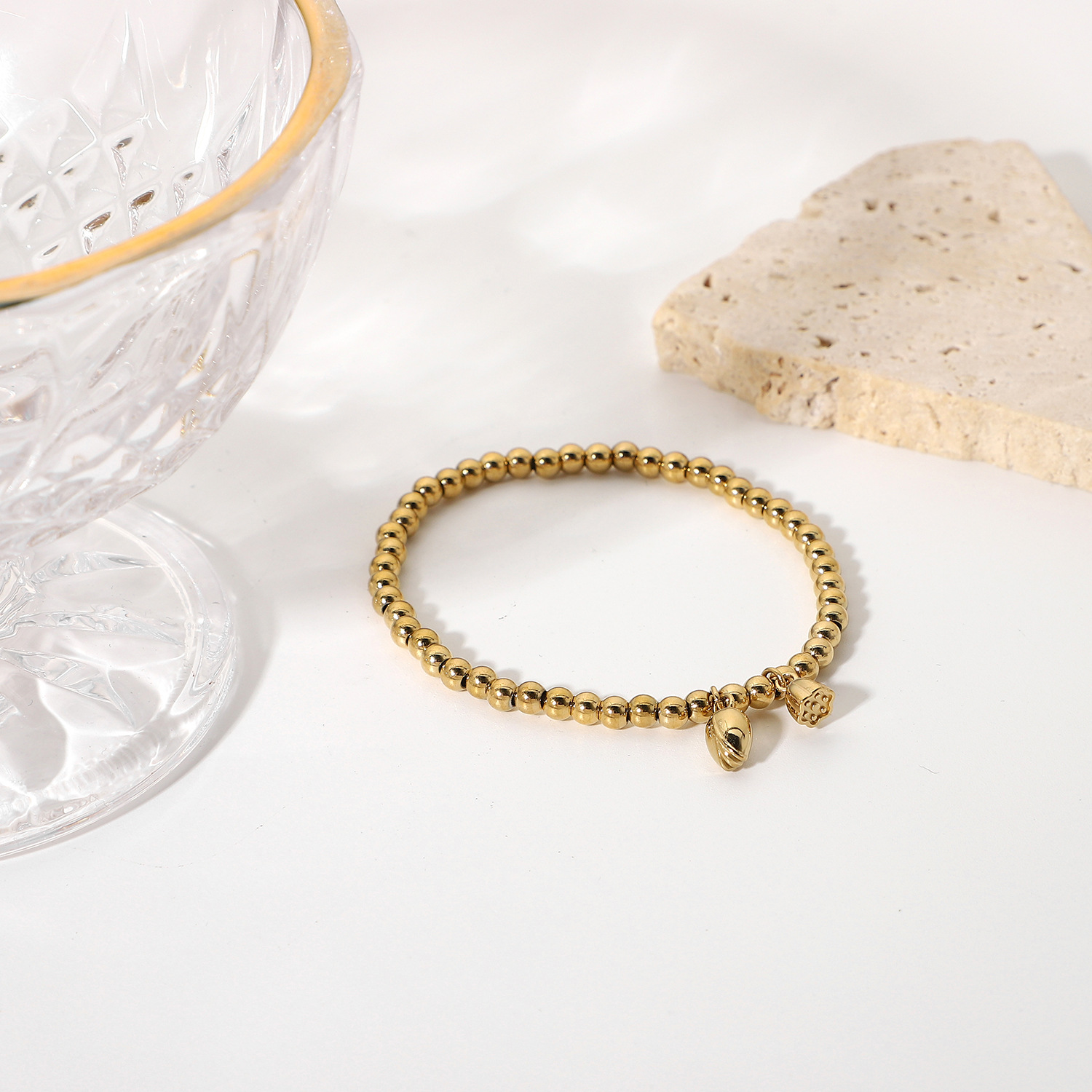 标题:INS风14K金莲花小饰物手镯不锈钢小圆形金属球串珠手链饰品批发女