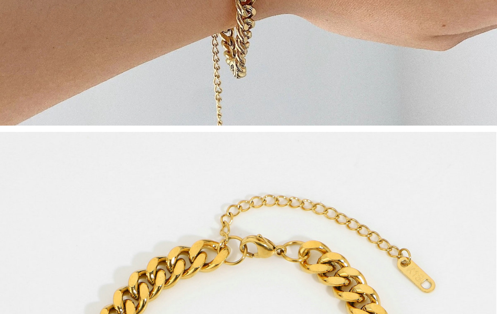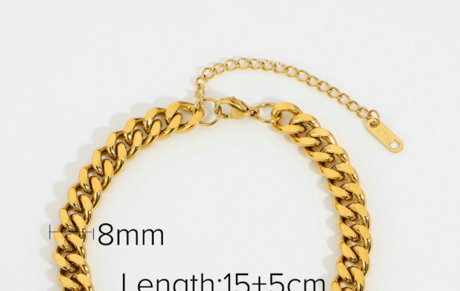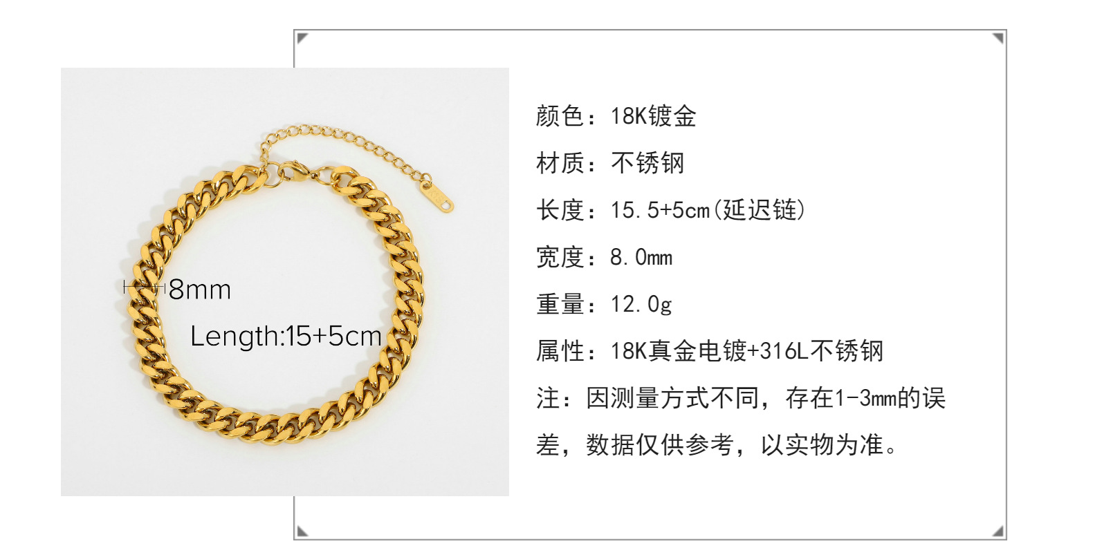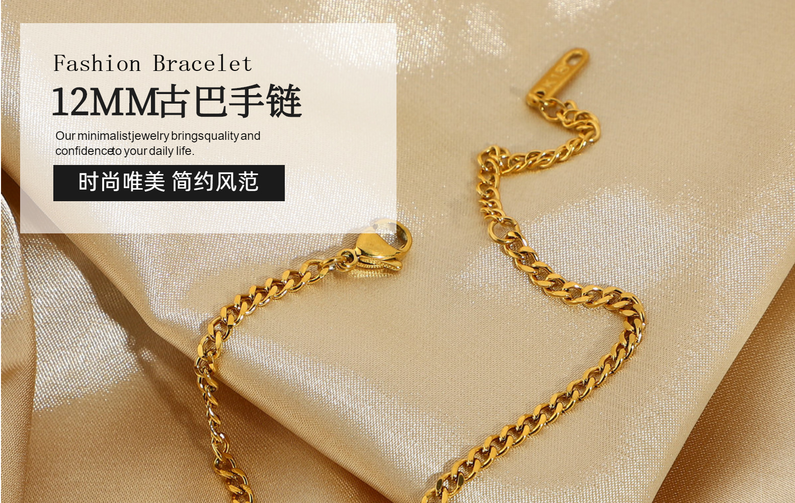 标题:欧美INS风8mm黄金电镀链手链 18K镀金不锈钢迈阿密古巴链手链女士