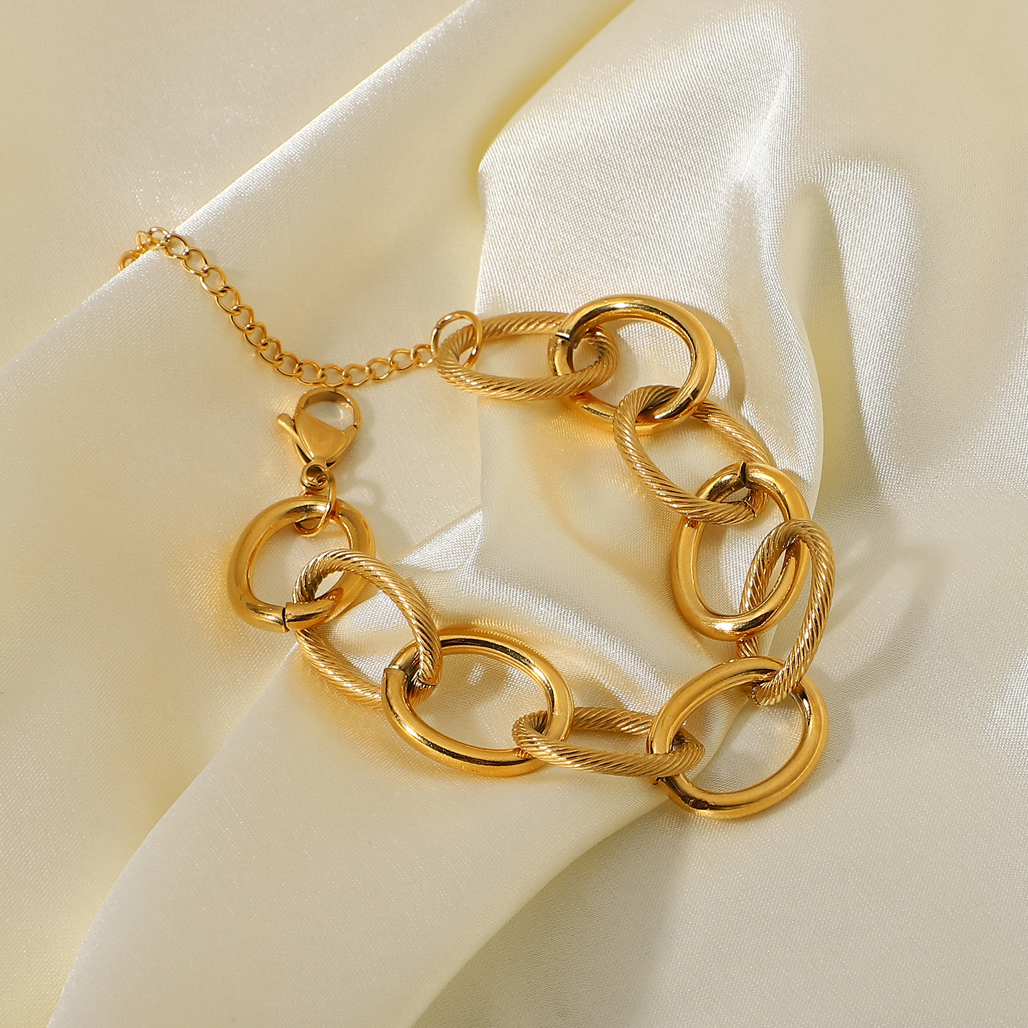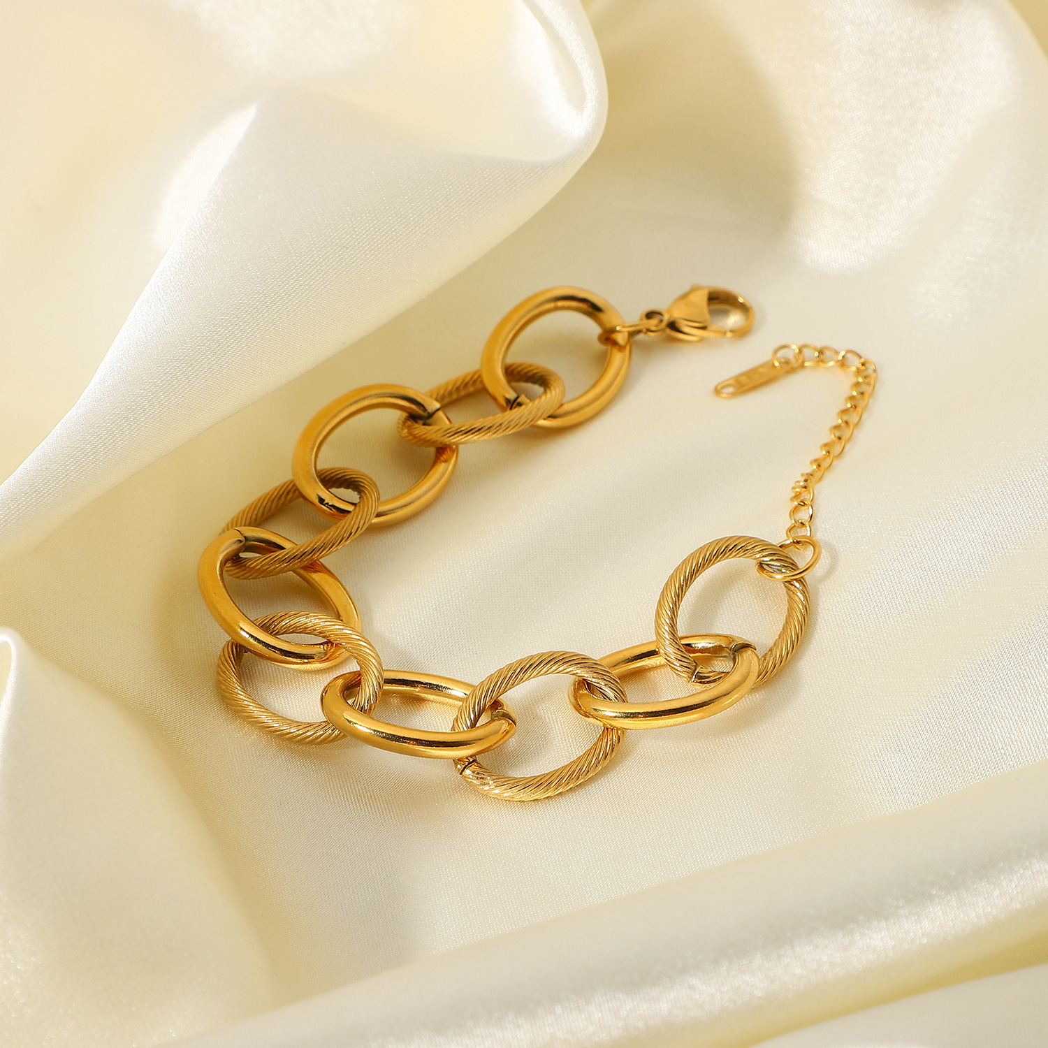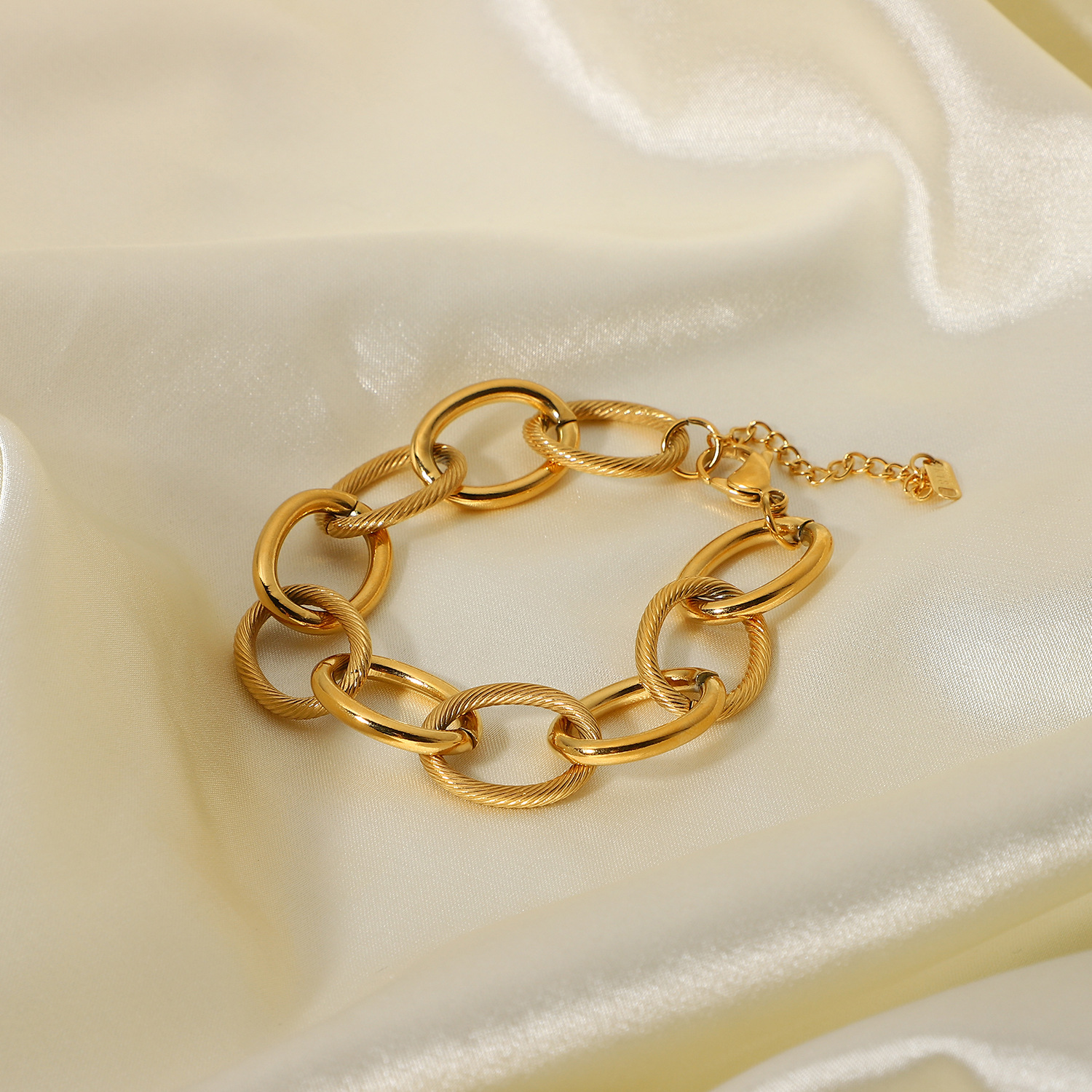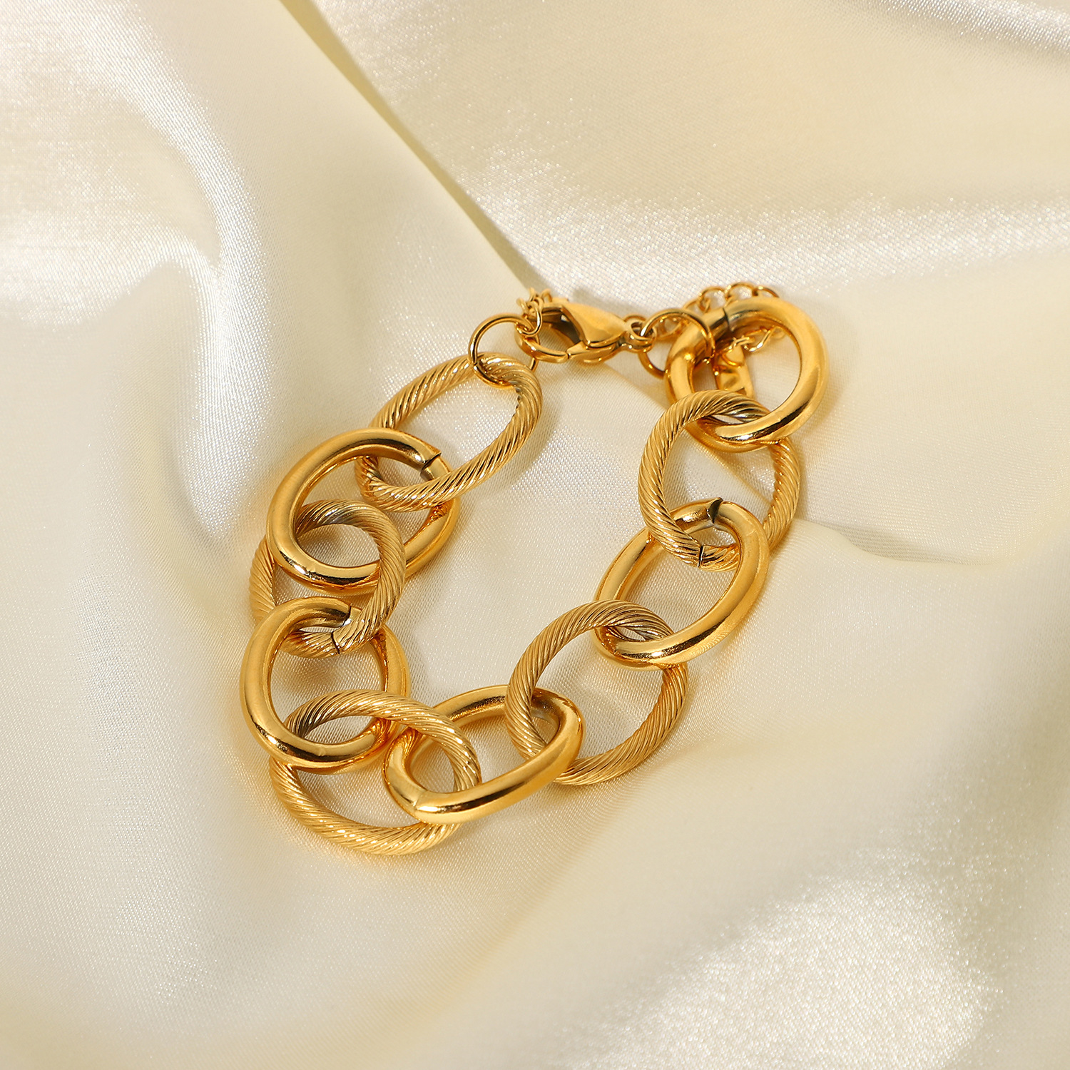 标题:欧美不锈钢手饰INS时尚饰品真空电镀18K金粗椭圆电缆圈链条手链女