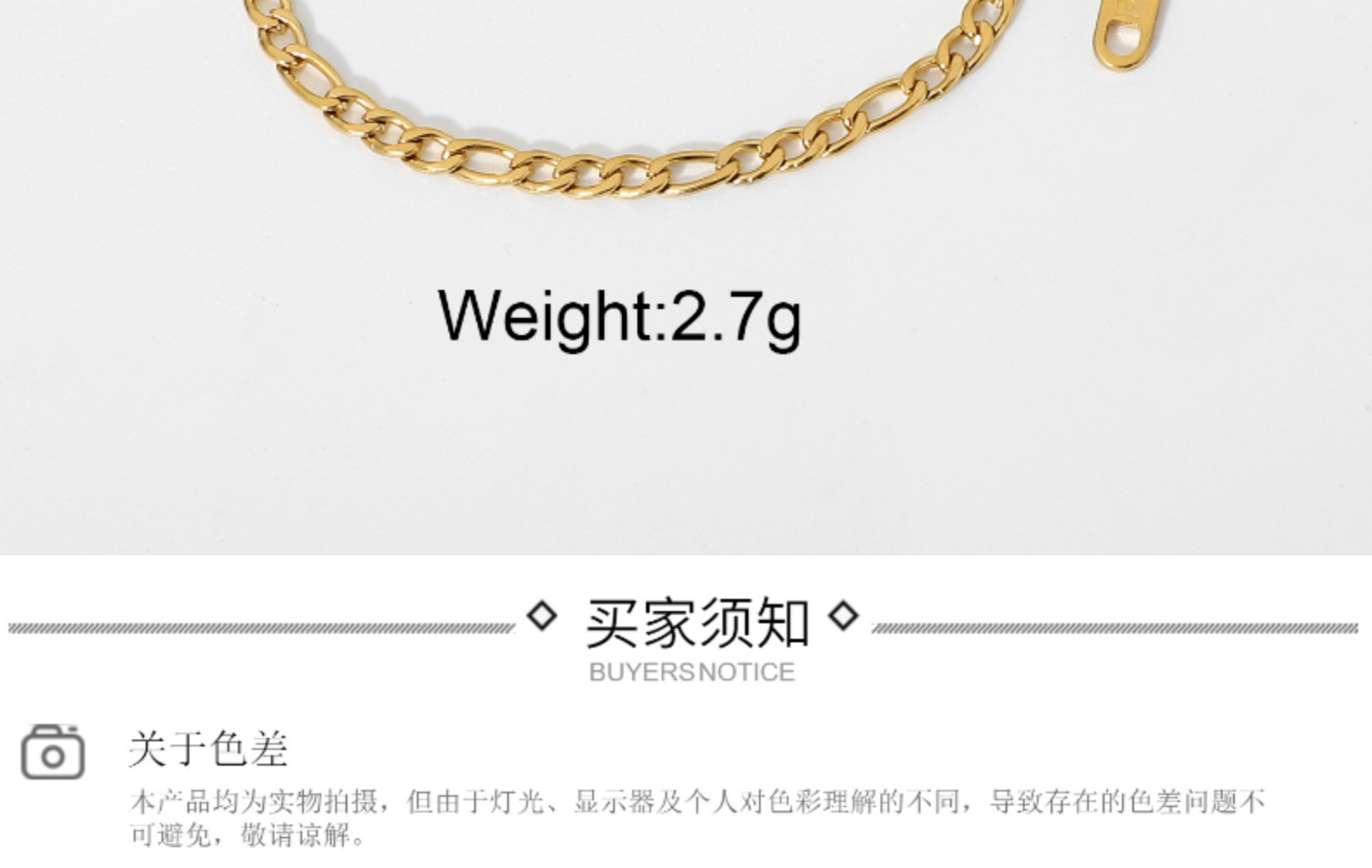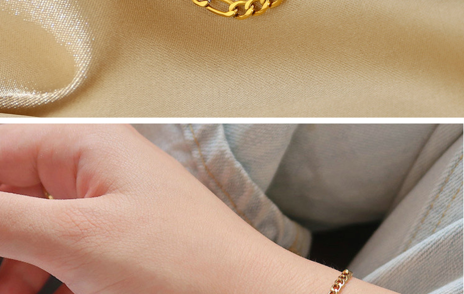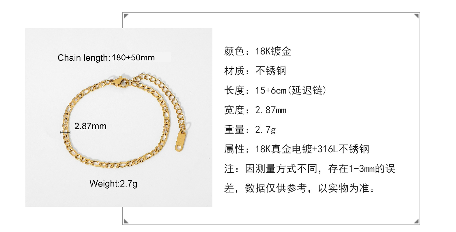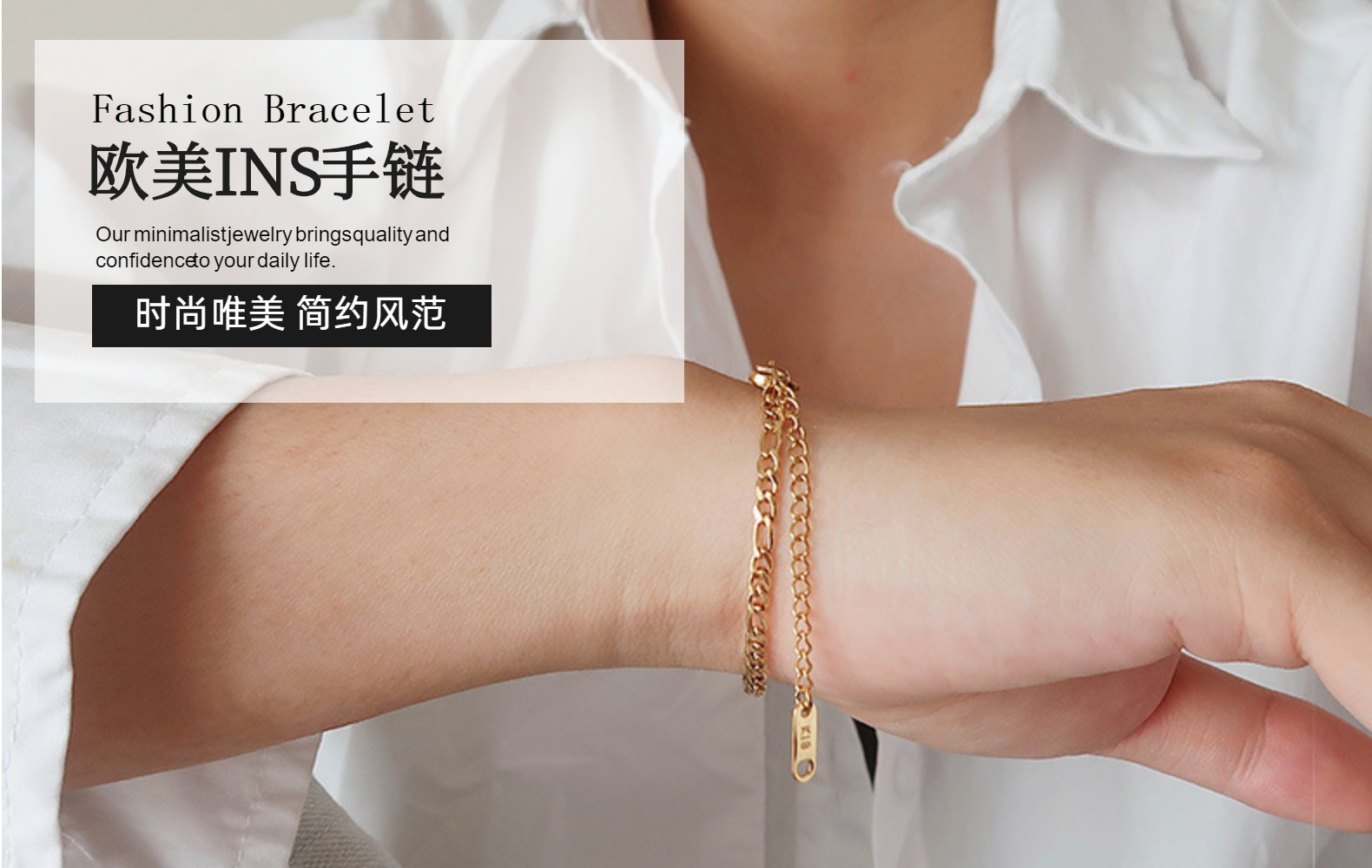 标题:欧美潮流风费加罗金链手链时尚电镀饰品镀金不锈钢薄堆叠链手链女