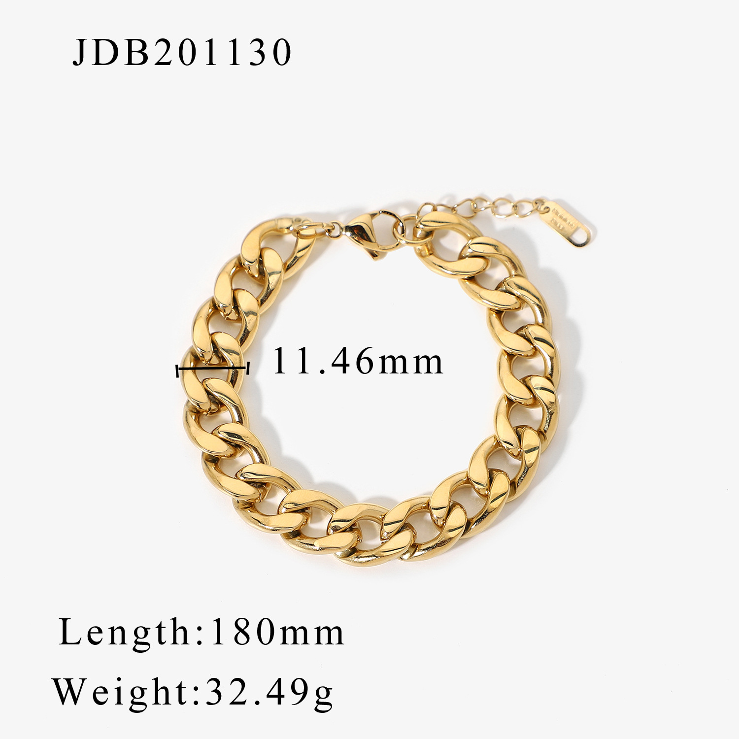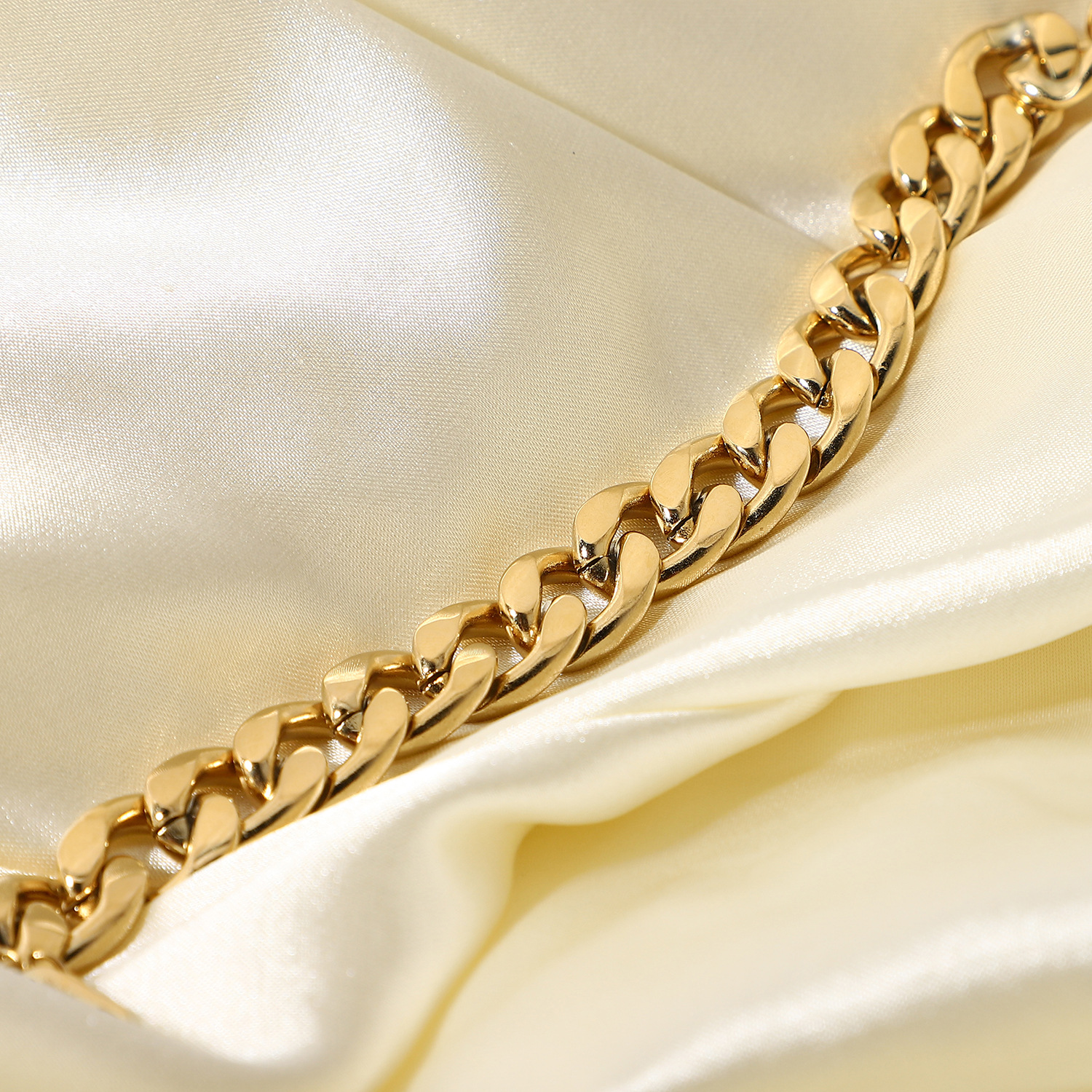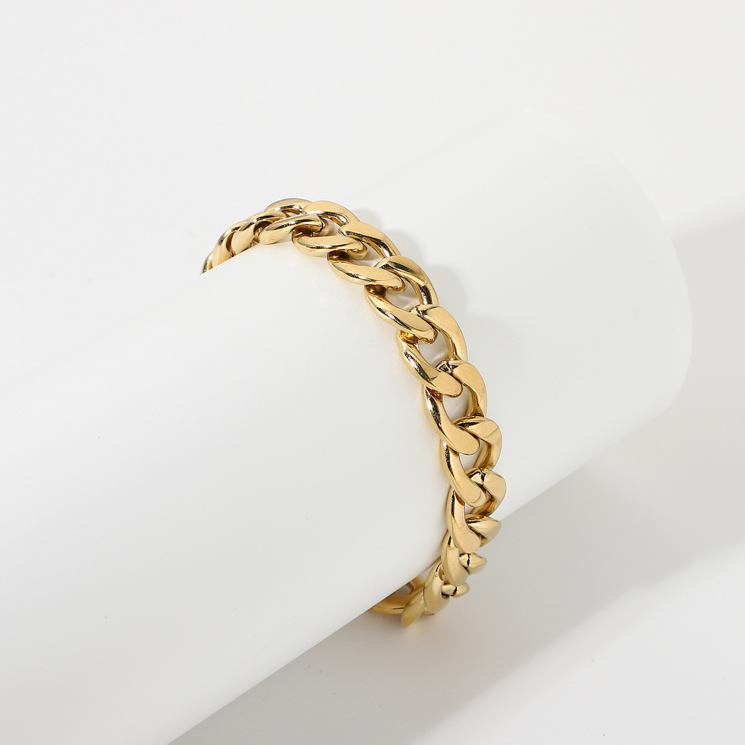 标题:女士叠戴11毫米金色迈阿密古巴链式手链嘻哈不锈钢男女士首饰手链