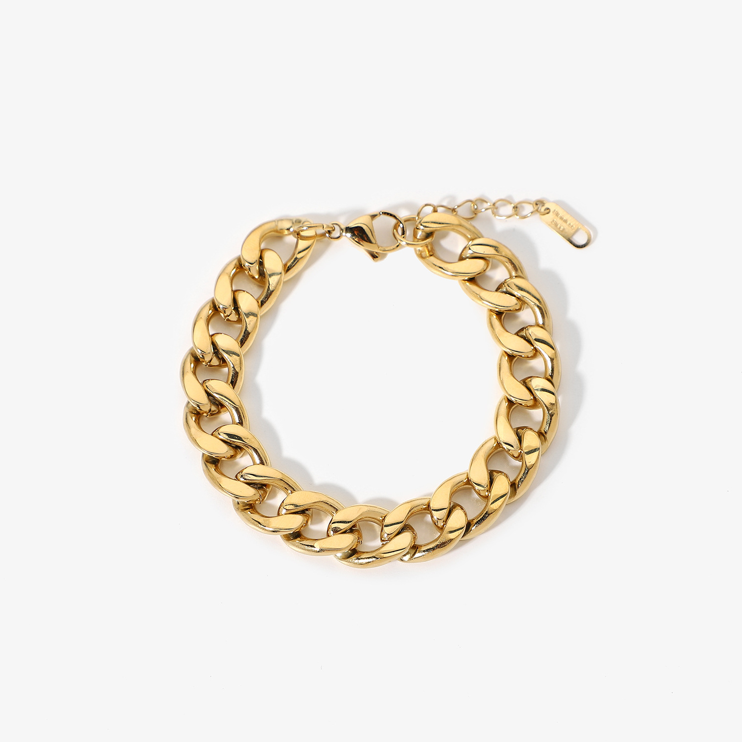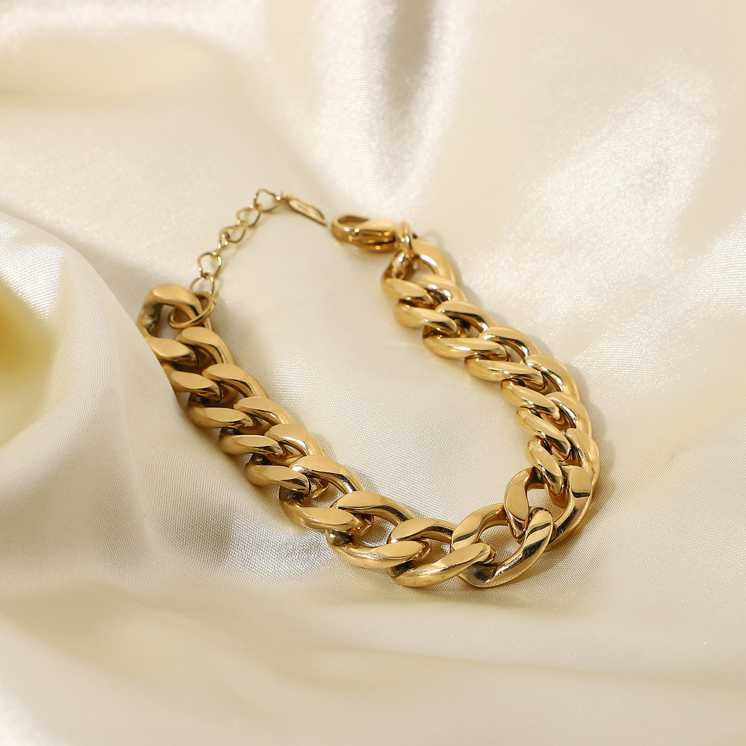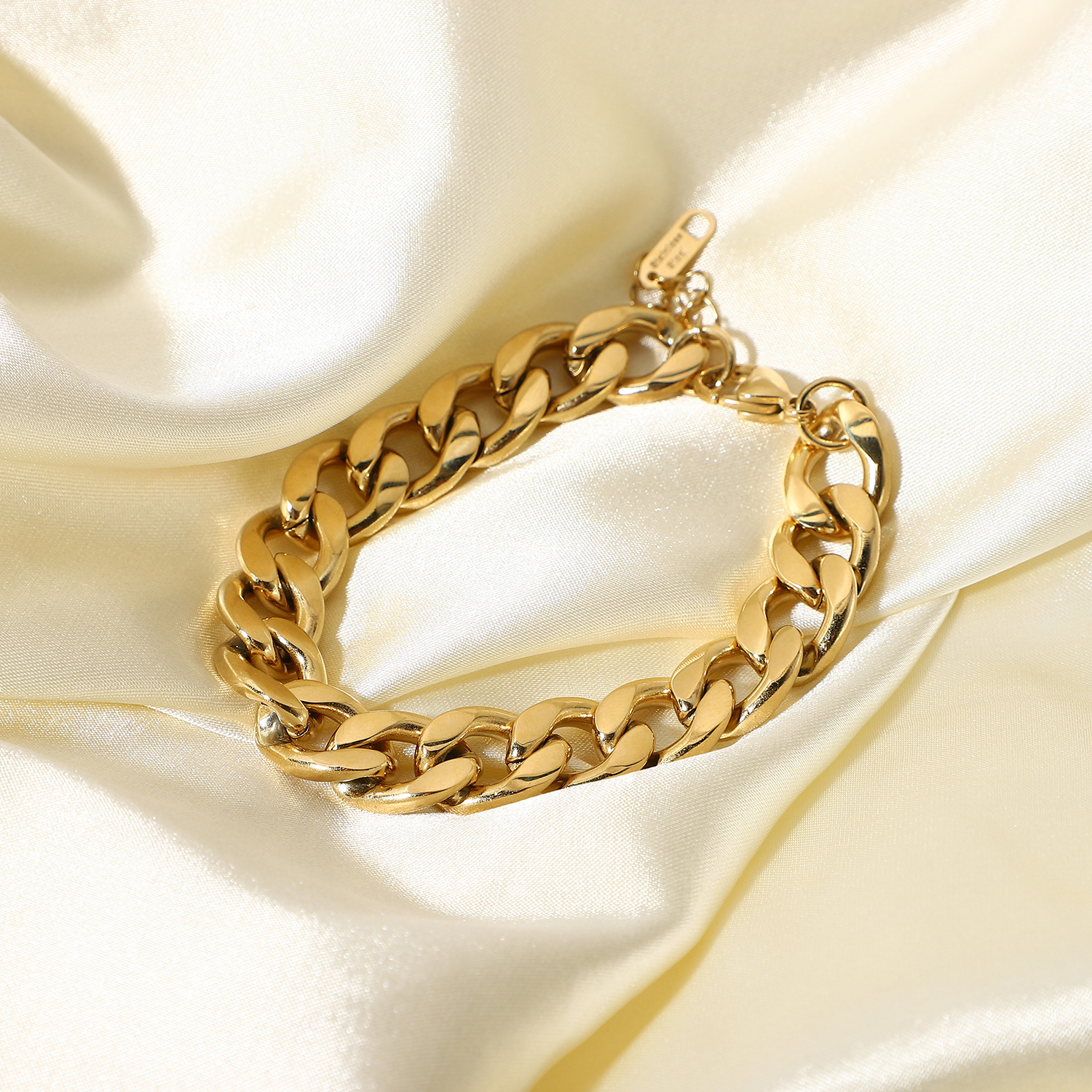 标题:女士叠戴11毫米金色迈阿密古巴链式手链嘻哈不锈钢男女士首饰手链