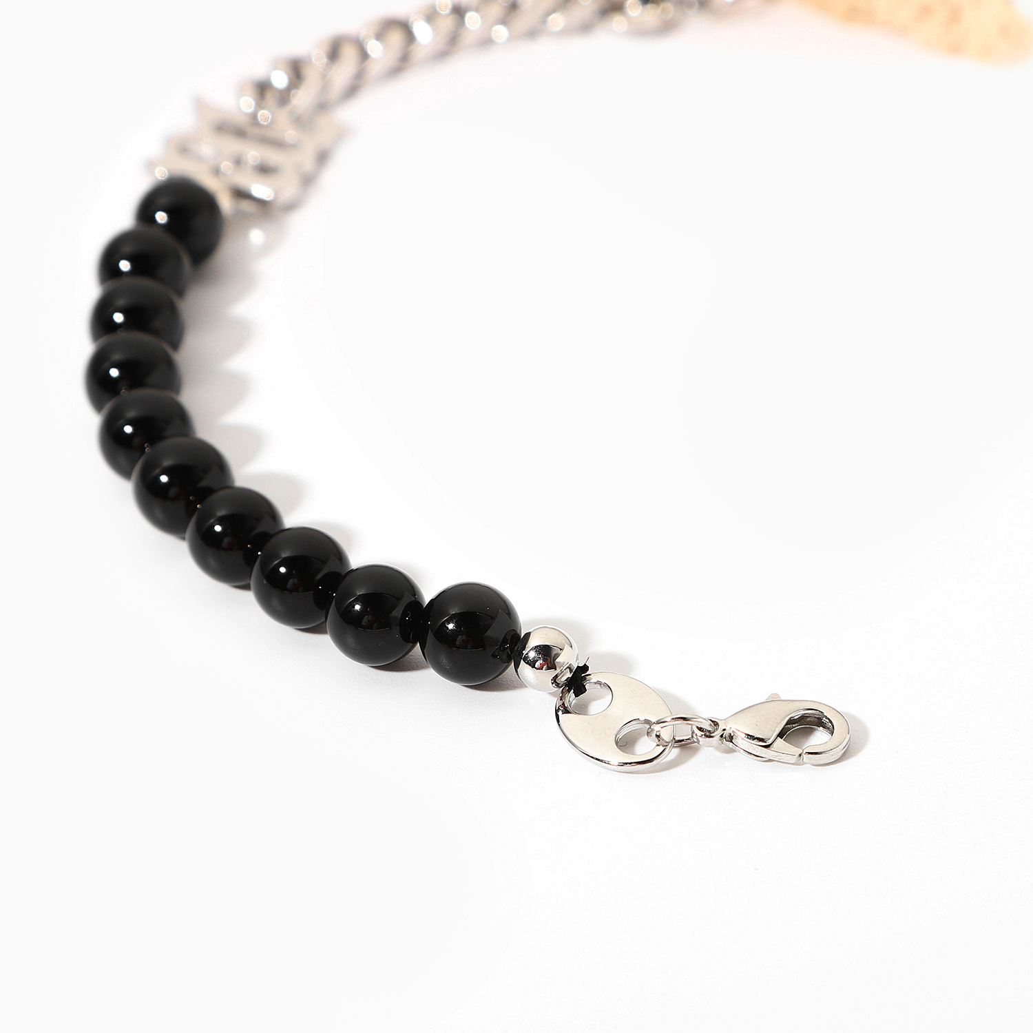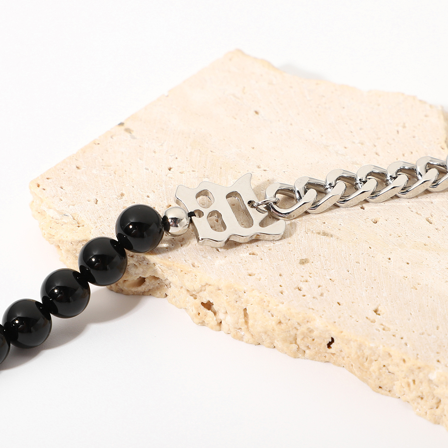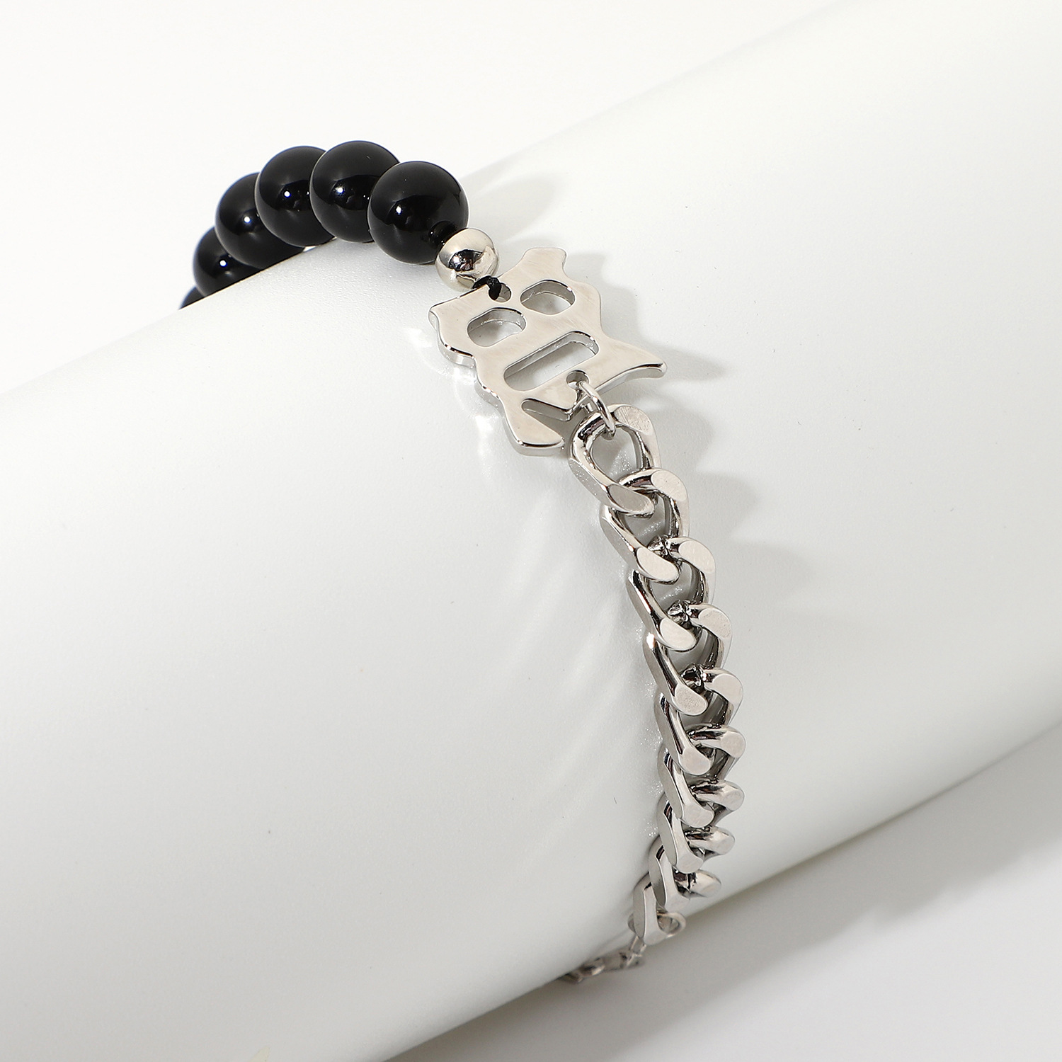 标题:高品质黑色珠子手链金属古巴链珠宝朋克银色魅力珠子手镯男女同款
