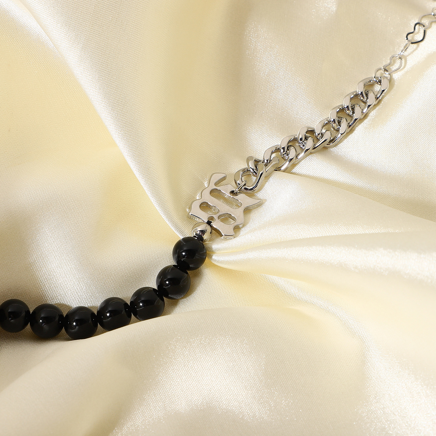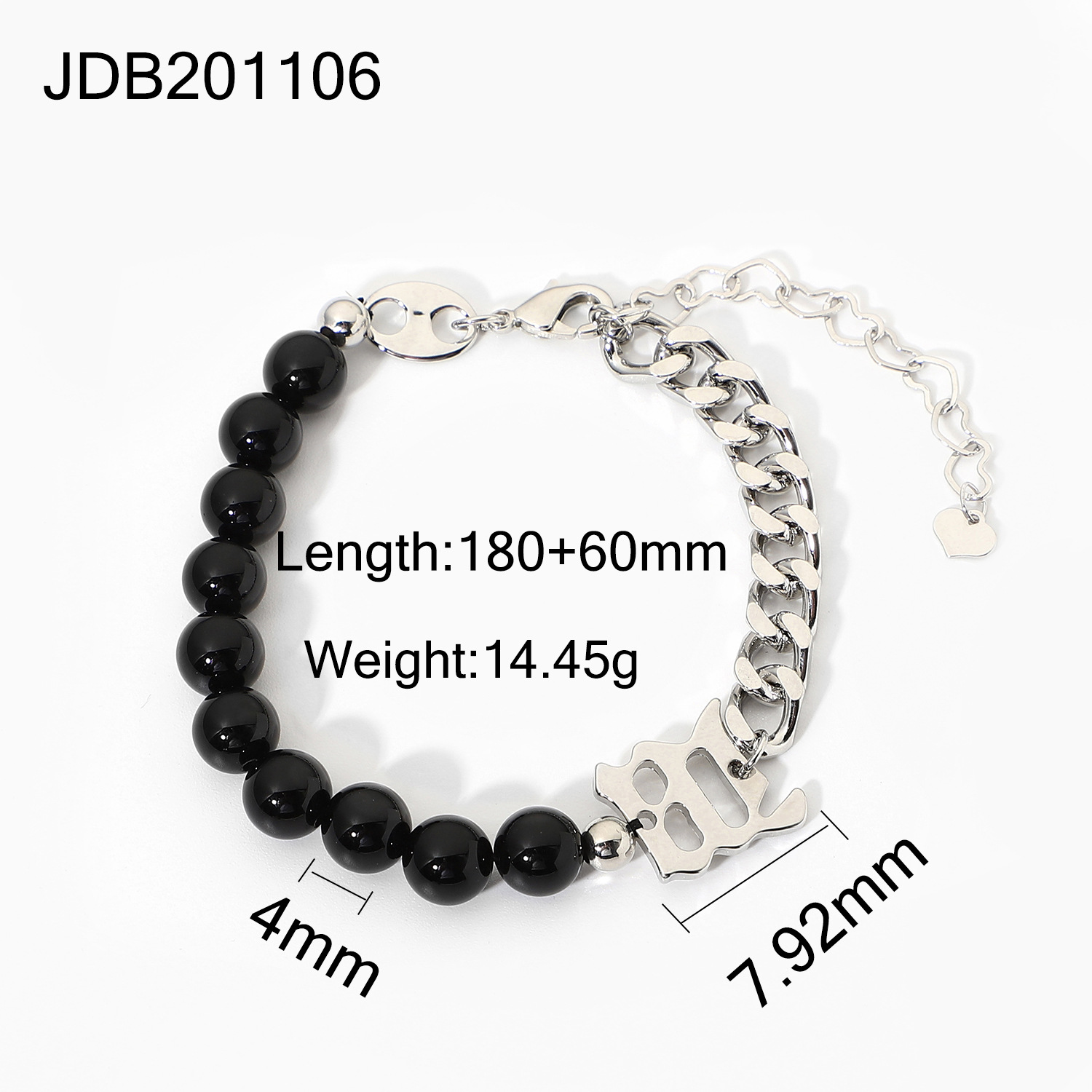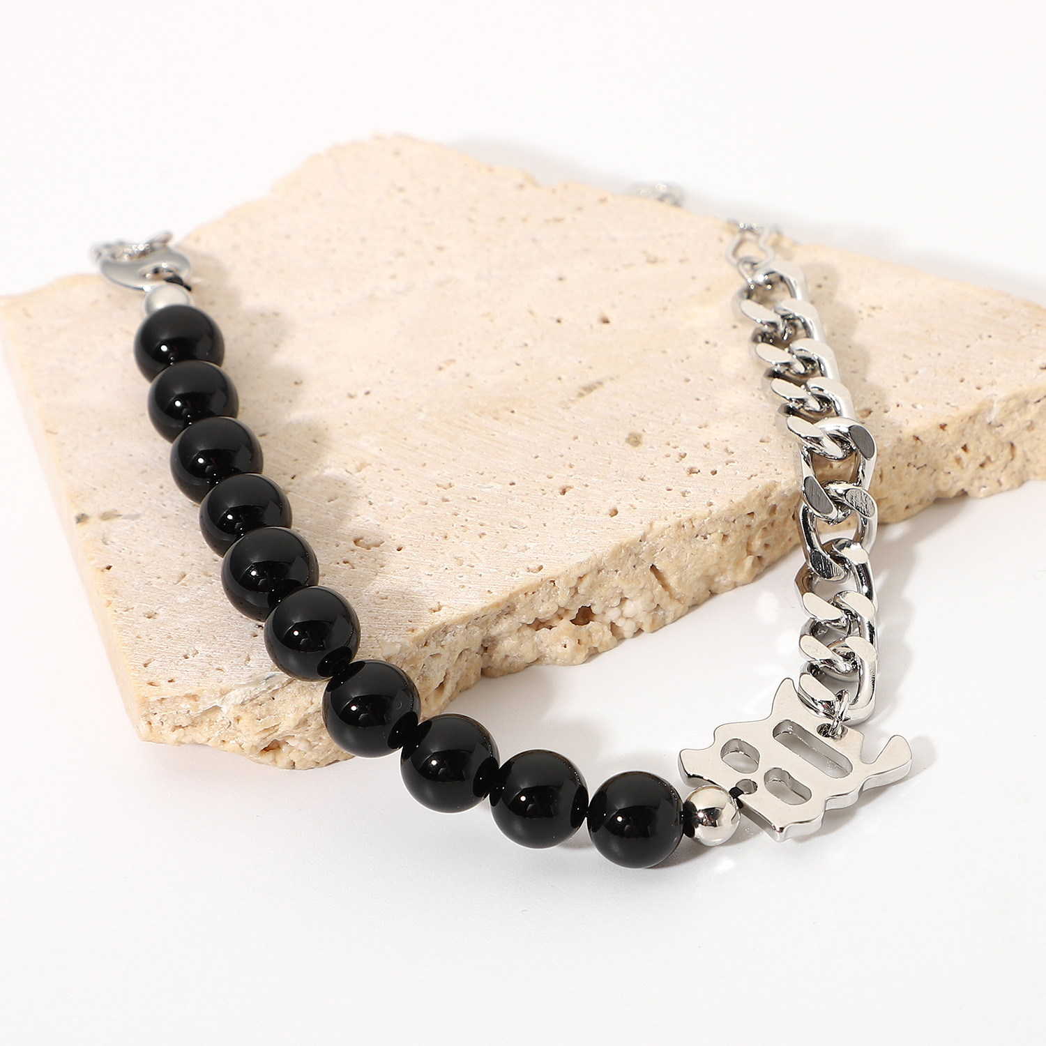 标题:高品质黑色珠子手链金属古巴链珠宝朋克银色魅力珠子手镯男女同款