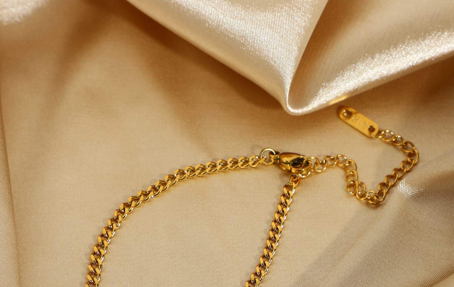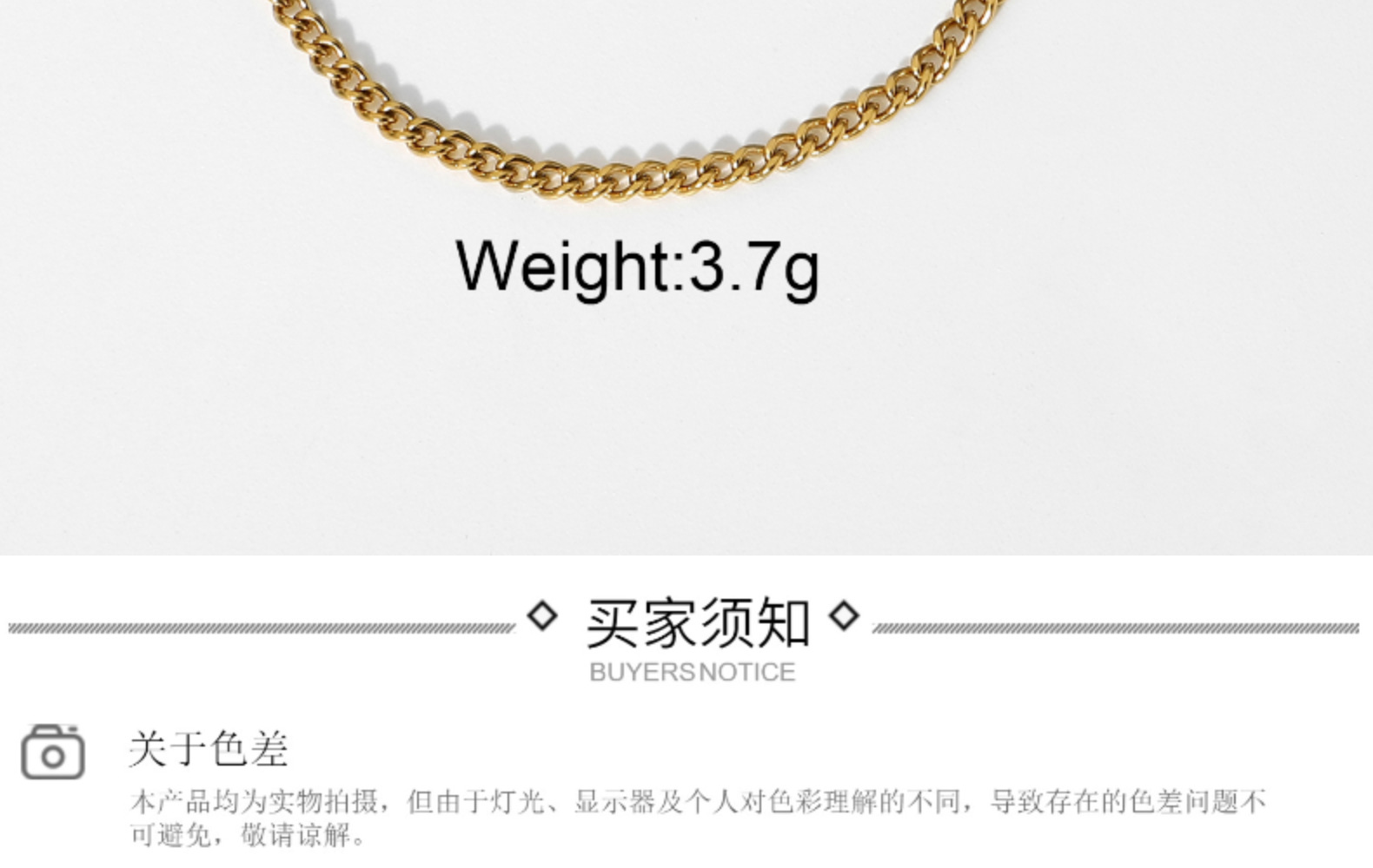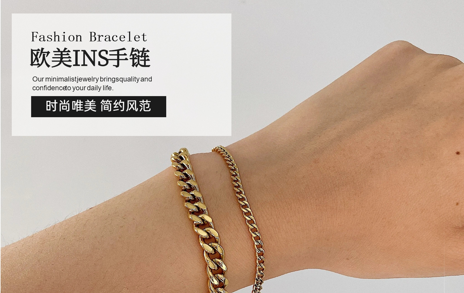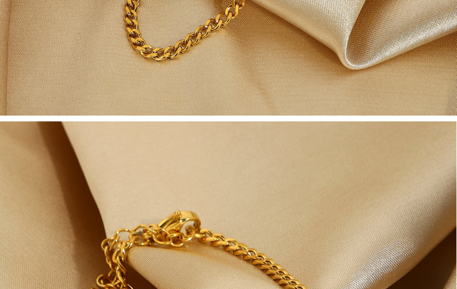 标题:3mm小号经典金质路缘链手链别致真空电镀18K镀金不锈钢古巴链手链