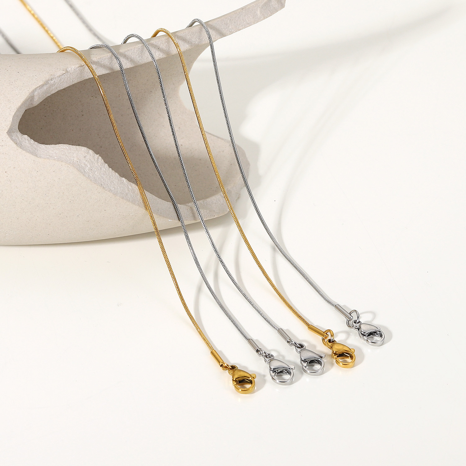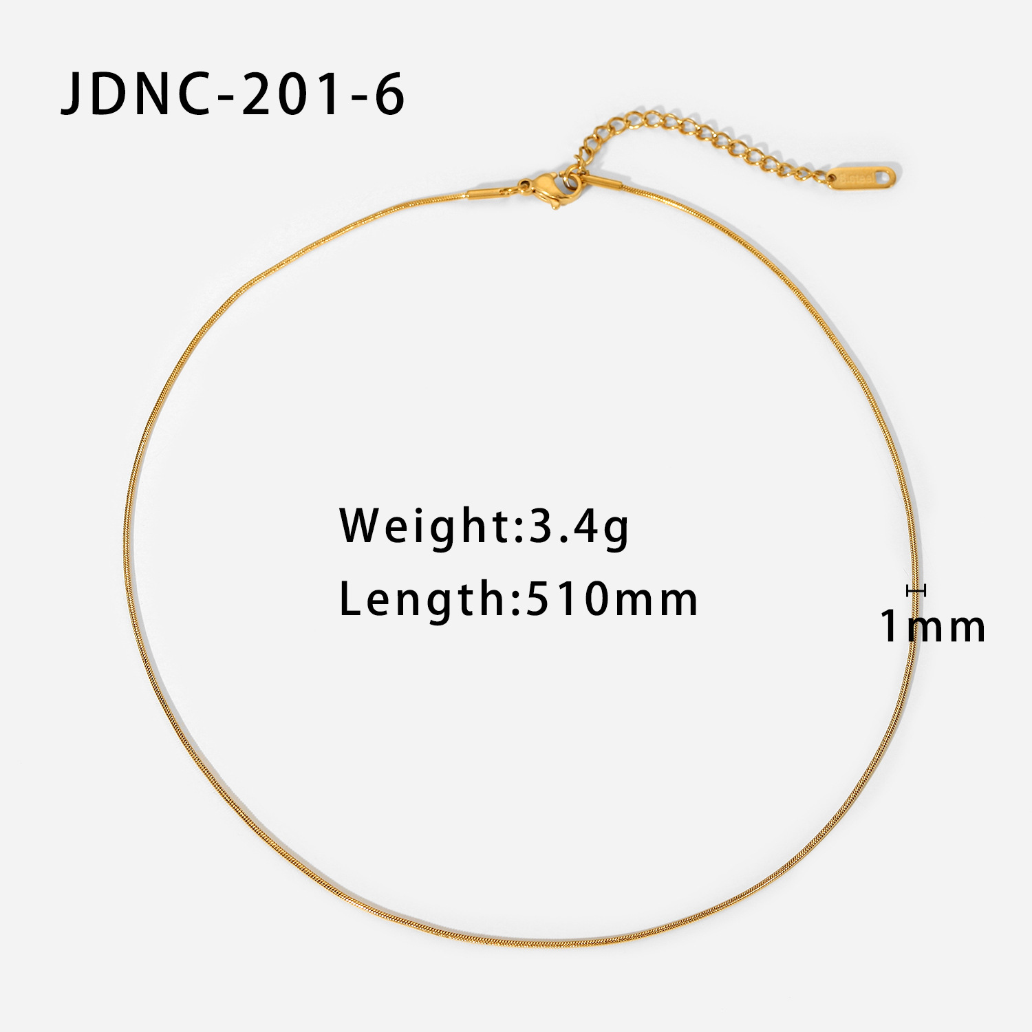 描述:风格:简约,材质:不锈钢,处理工艺:电镀,品牌:Youthway,生产编号:JDNC-201,销售序列号:JDNC-201,种类:项链,样式:女式,造型:几何型,包装:独立包装,适用送礼场合:婚庆,旅游纪念,员工福利,加工定制:是,货号:JDNC-201,产地:浙江义乌,链子样式:蛇骨链,是否多层:是,是否带坠:是,延长链:10cm以下,坠子材质:钛钢,周长:21cm(含)-50cm(含),系列:不锈钢,形象:蛇骨链,主要下游平台:淘宝,京东,ebay,PDD,亚马逊,wish,快手,LINIO,SHEIN,速卖通,天猫,独立站,LAZADA,拼多多,shopee,抖音,垂类电商,颜色:JDNC-201-1,JDNC-201-3,JDNC-201-4,JDNC-201-5,JDNC-201-6,主要销售地区:非洲,欧洲,南美,东南亚,北美,东北亚,中东,有可授权的自有品牌:是,是否跨境出口专供货源:是,流行元素:金属,链条,几何,上市年份/季节:2022年春季,