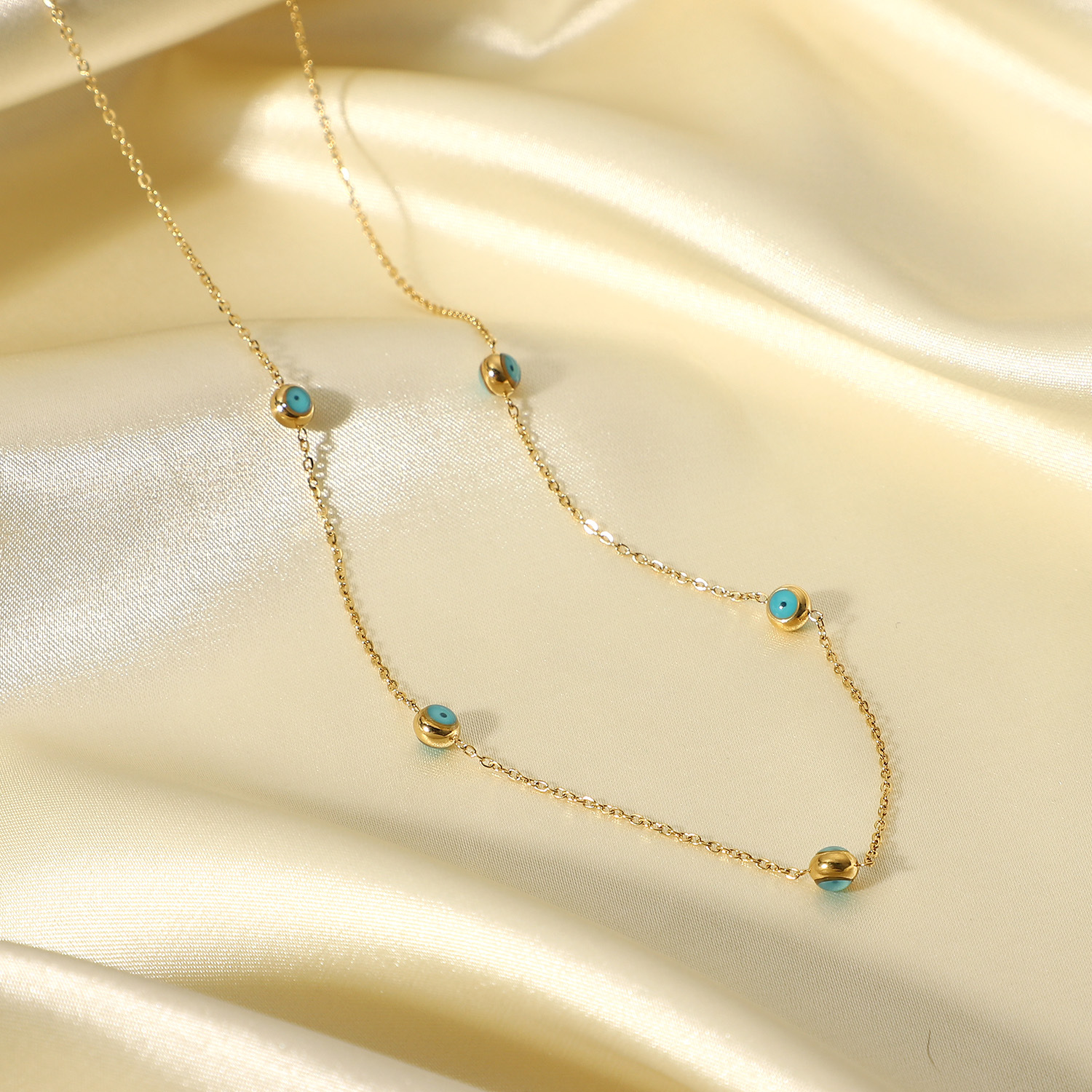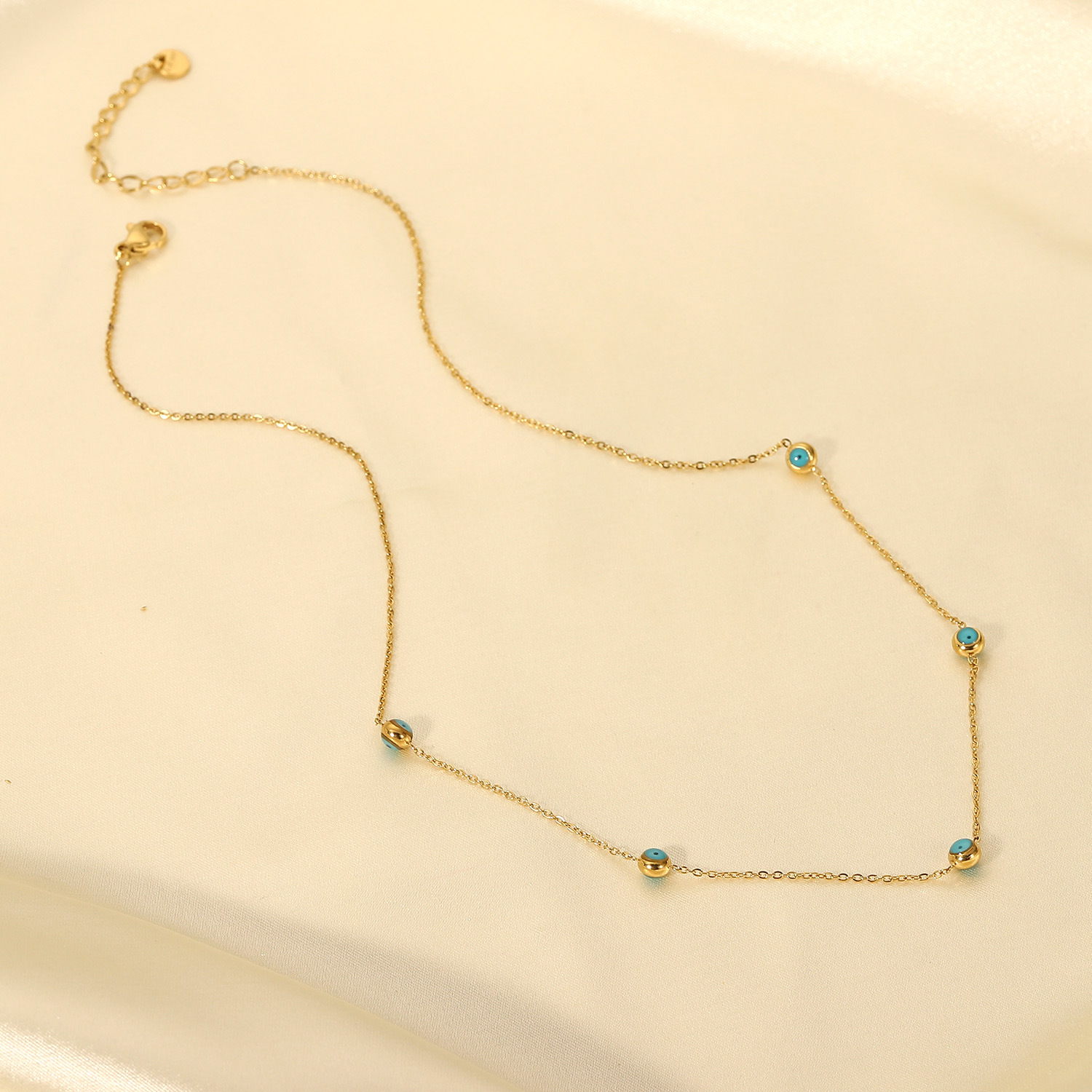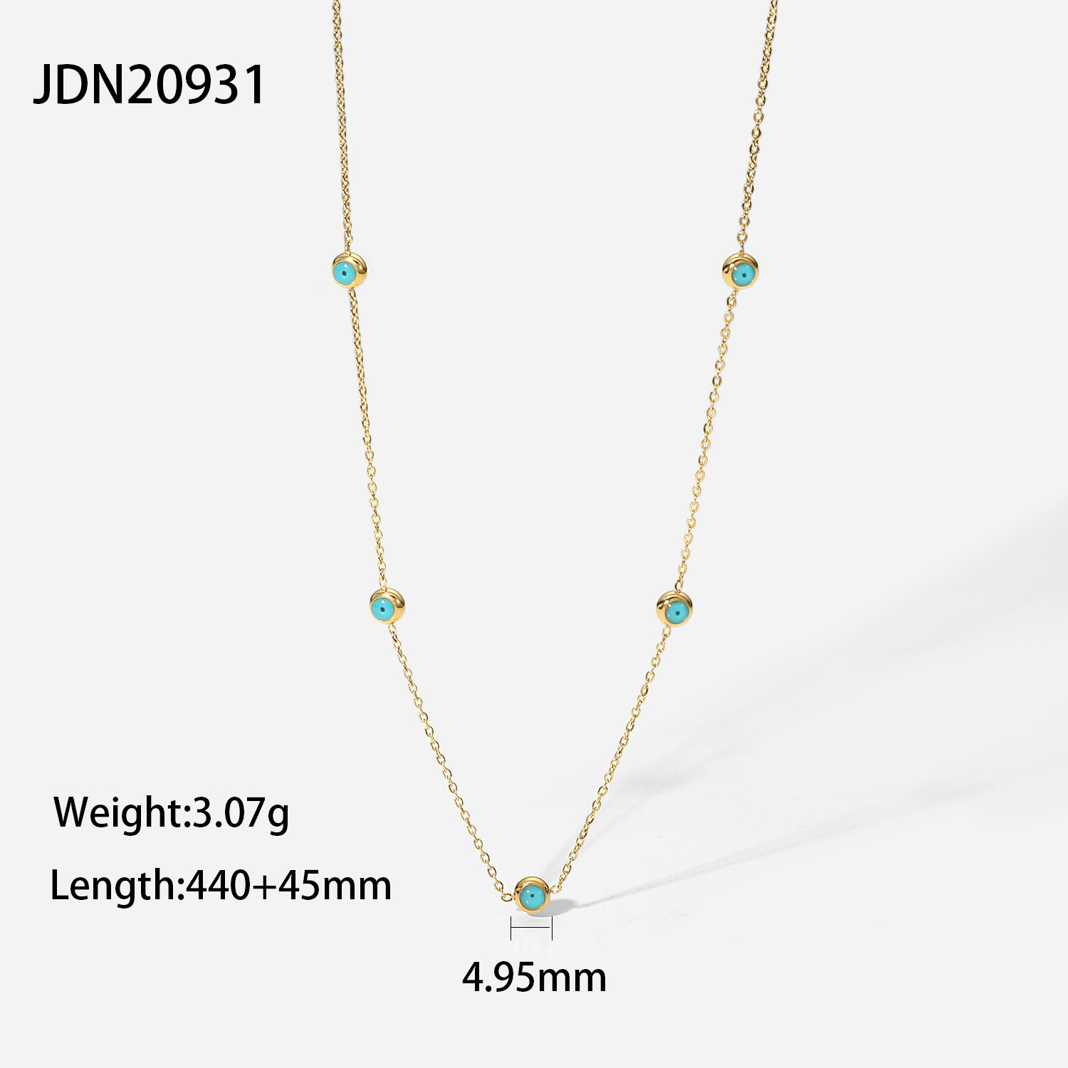 标题:欧美新款热销18K镀金不锈钢项饰镶绿松石圆珠项链INS网红首饰女式