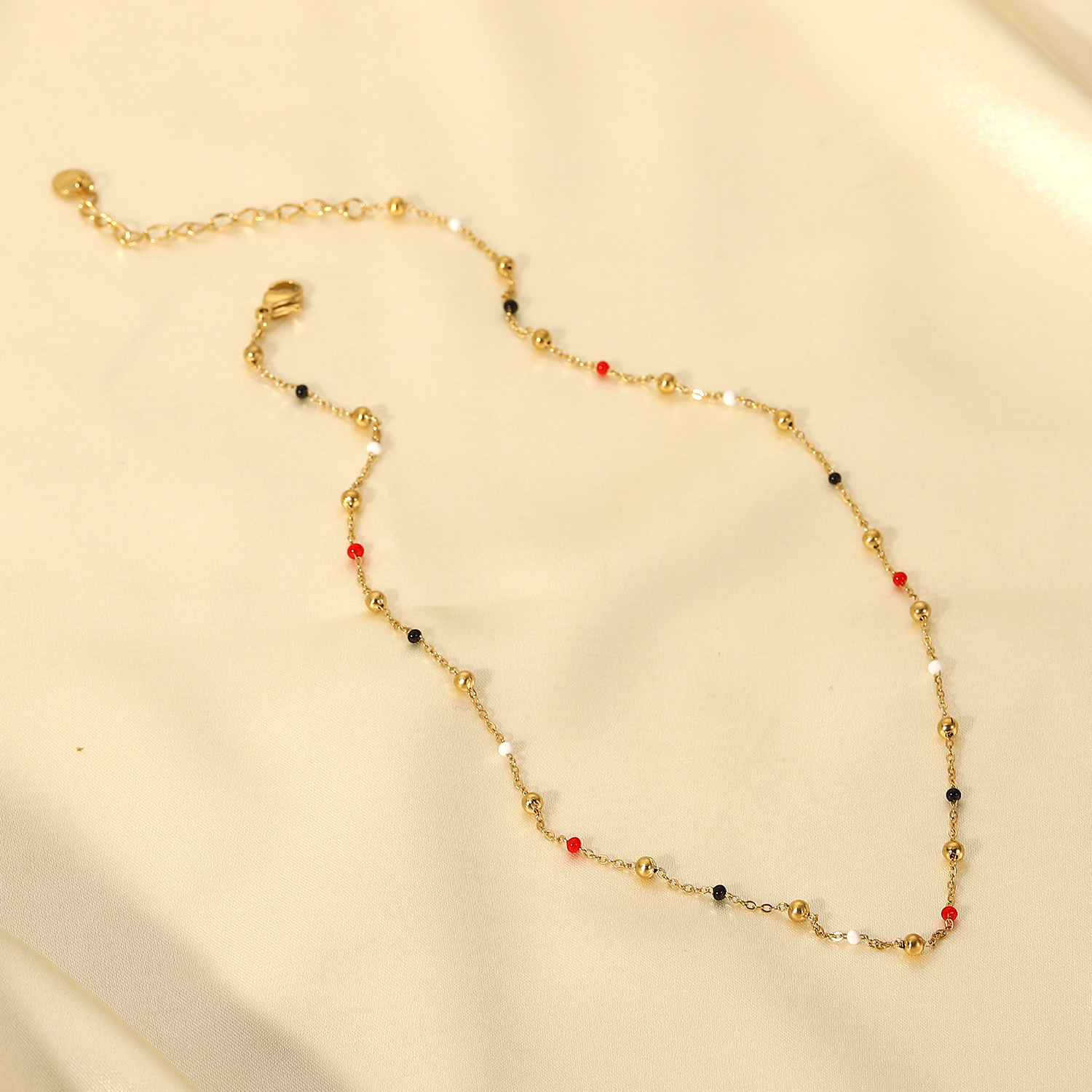 标题:新款红白黑彩色滴油圆珠链项链女士18K金不锈钢项饰礼品ins风项链
