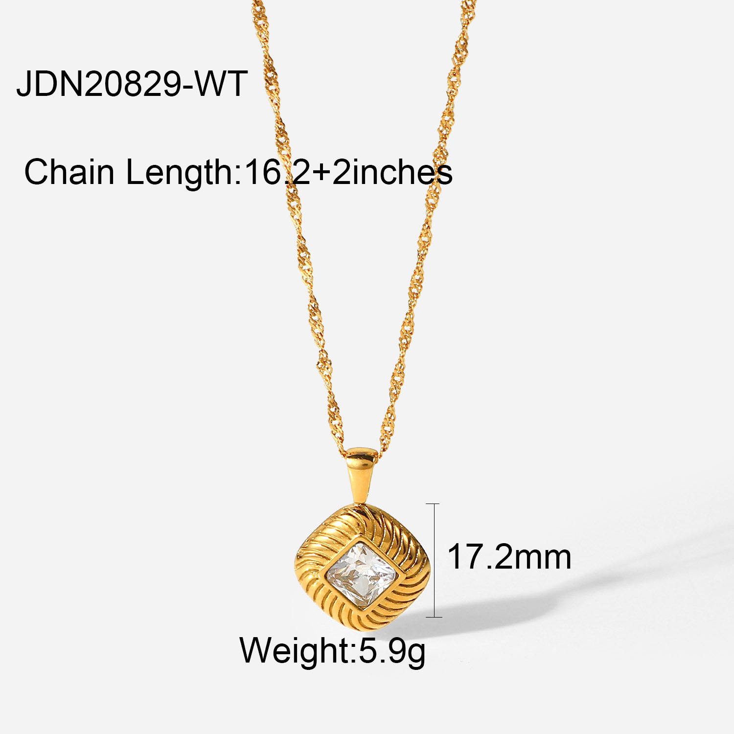 描述:风格:简约,材质:不锈钢,处理工艺:电镀,品牌:Youthway,生产编号:JDN20829,销售序列号:JDN20829,种类:项链,样式:女式,造型:方形,包装:独立包装,适用送礼场合:婚庆,旅游纪念,员工福利,加工定制:是,货号:JDN20829,产地:浙江义乌,链子样式:常规链,是否多层:是,是否带坠:是,延长链:10cm以下,坠子材质:不锈钢,周长:21cm(含)-50cm(含),系列:不锈钢,形象:项链,主要下游平台:ebay,亚马逊,wish,速卖通,独立站,LAZADA,颜色:JDN20829-WT,JDN20829-PK,JDN20829-GN,主要销售地区:非洲,欧洲,南美,东南亚,北美,东北亚,中东,有可授权的自有品牌:是,是否跨境出口专供货源:是,流行元素:金属,链条,几何,上市年份/季节:2021年冬季,