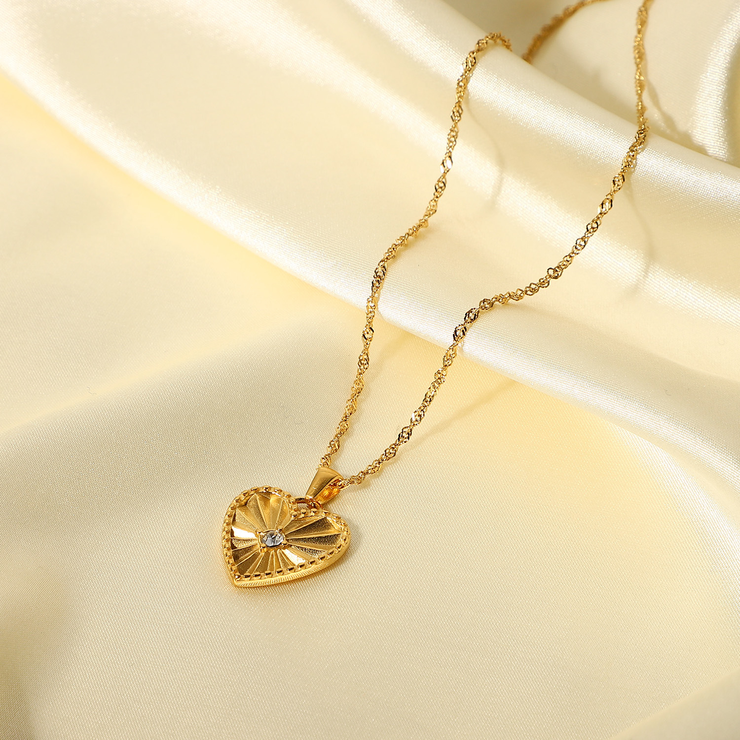 标题:欧美风新款18K金切面折射镶锆心形吊坠项链女士INS不锈钢项链首饰
