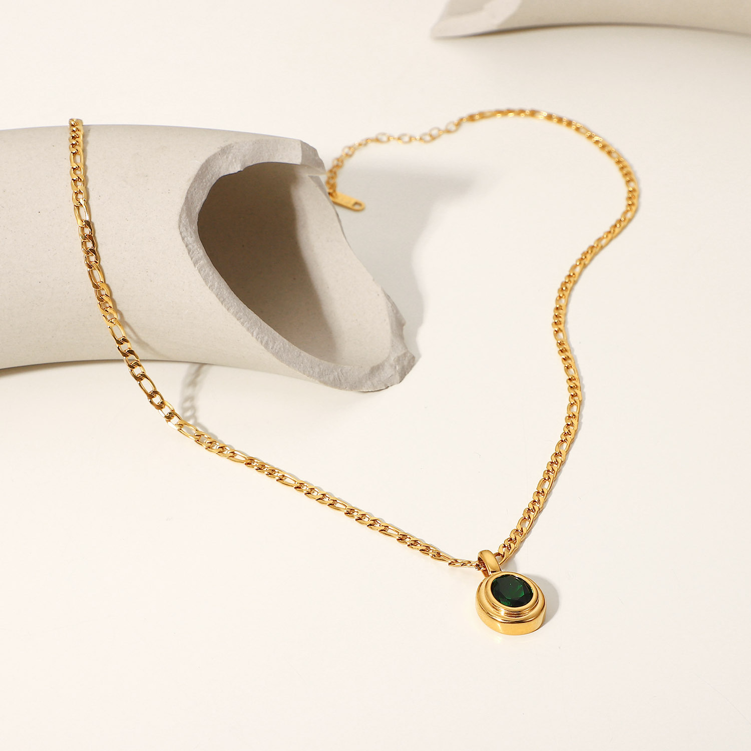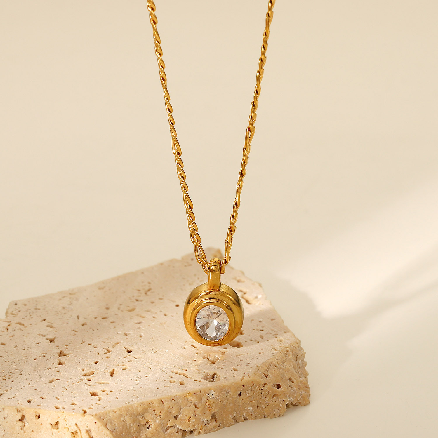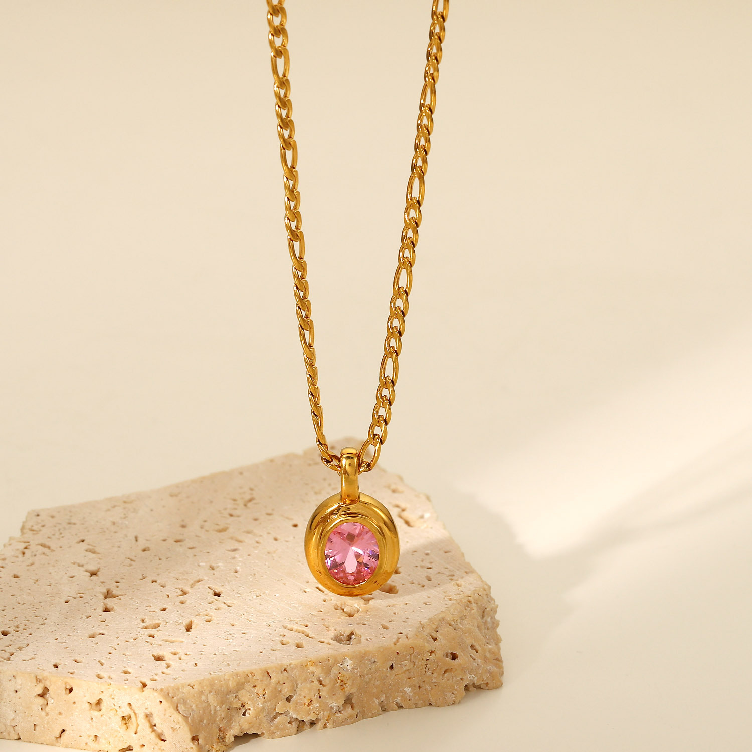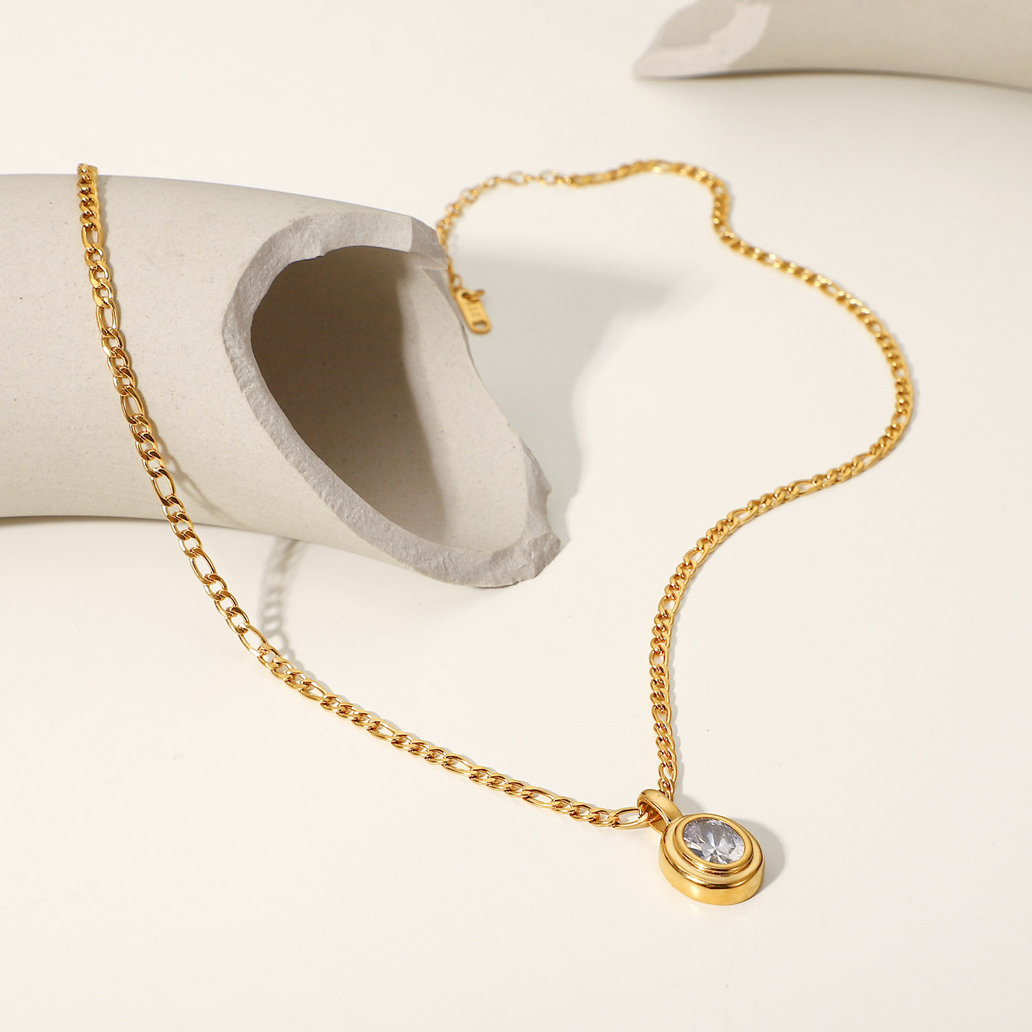 标题:欧美INS新款钛钢项链18k金不锈钢首饰立方氧化锆椭圆形吊坠项链女