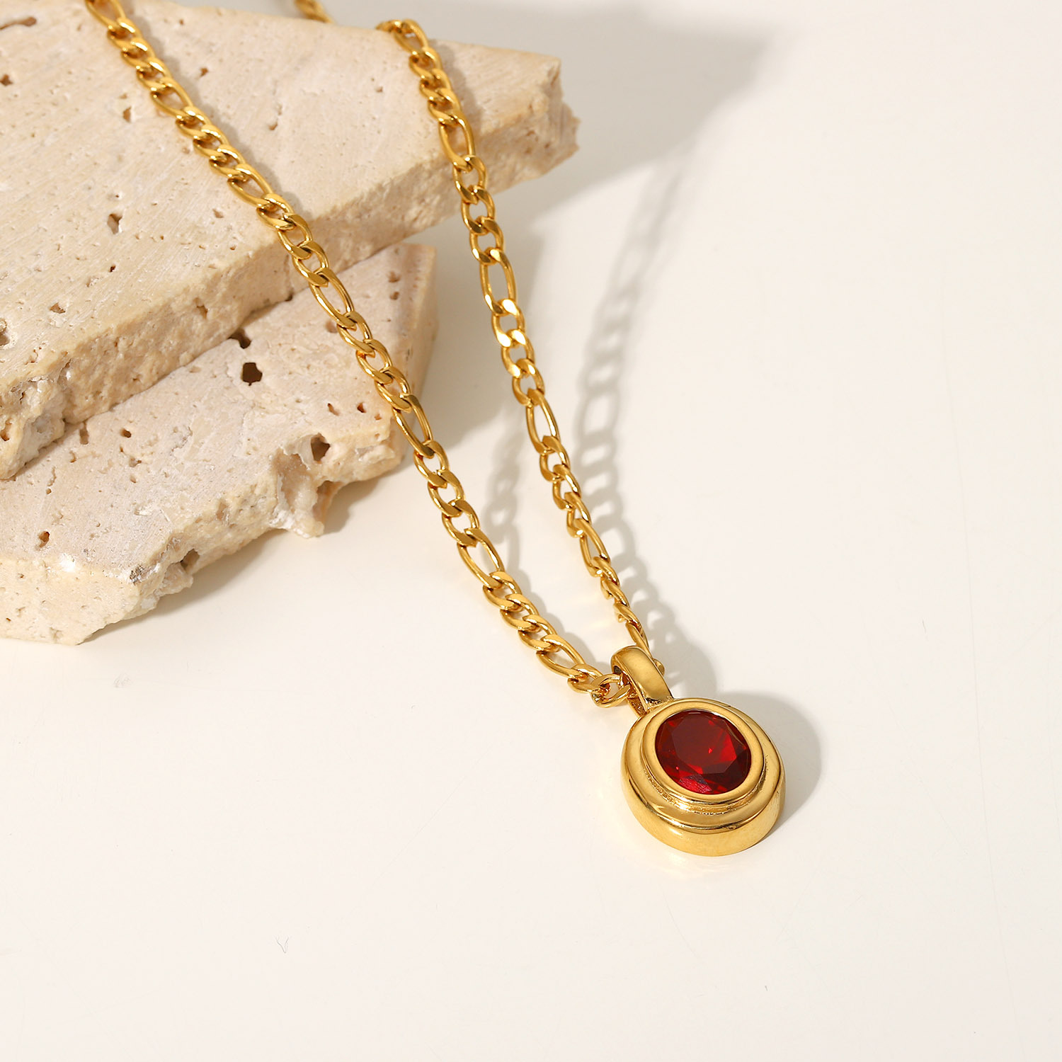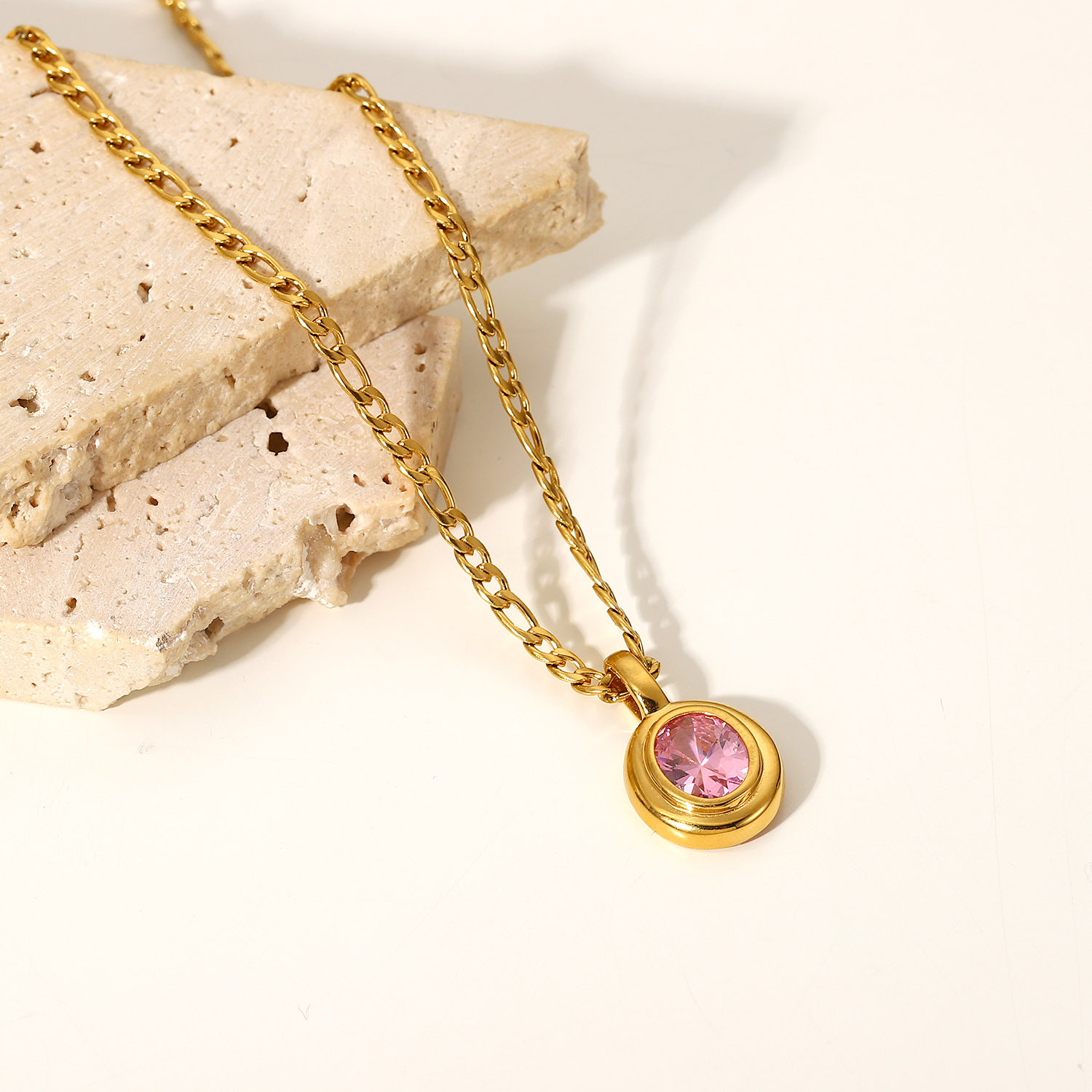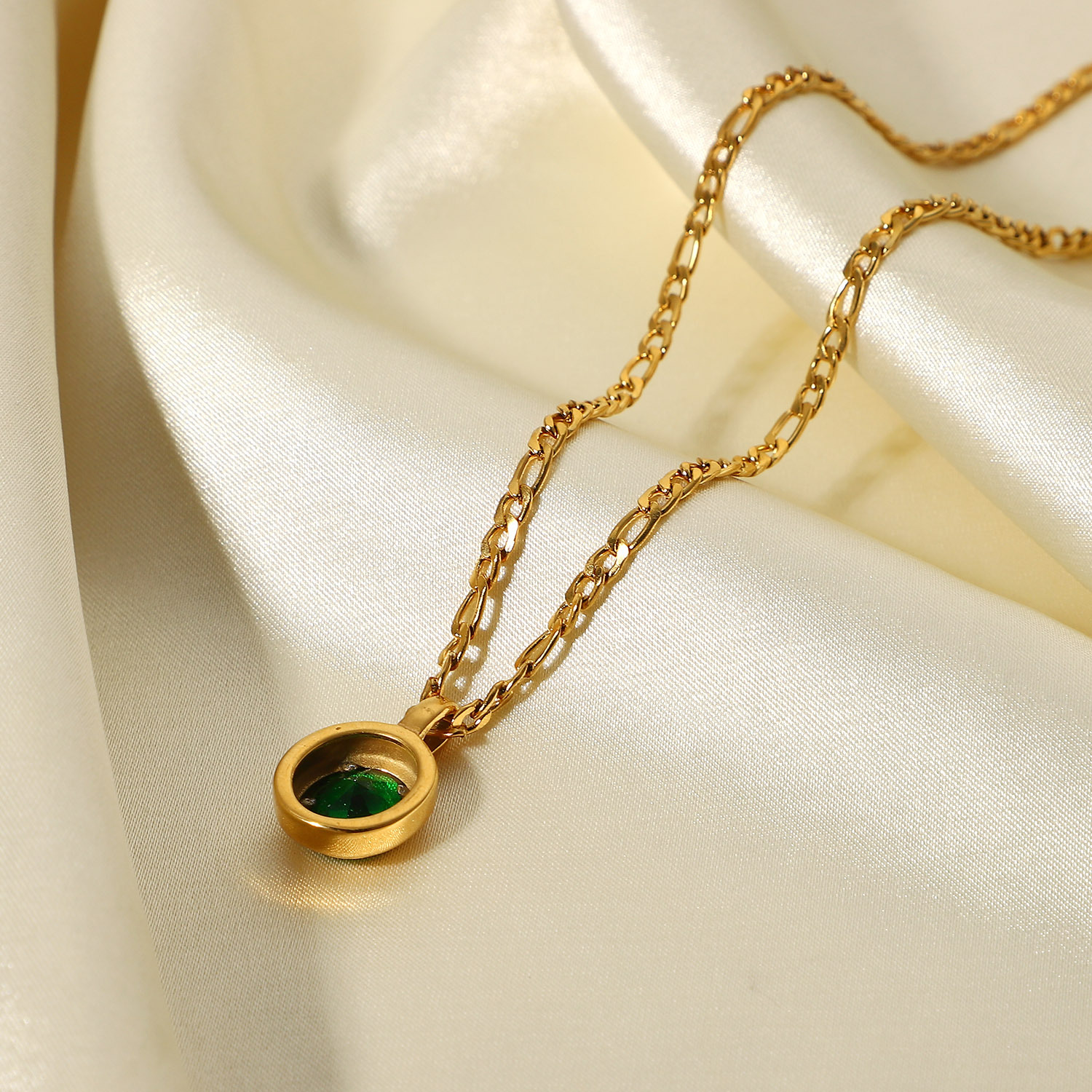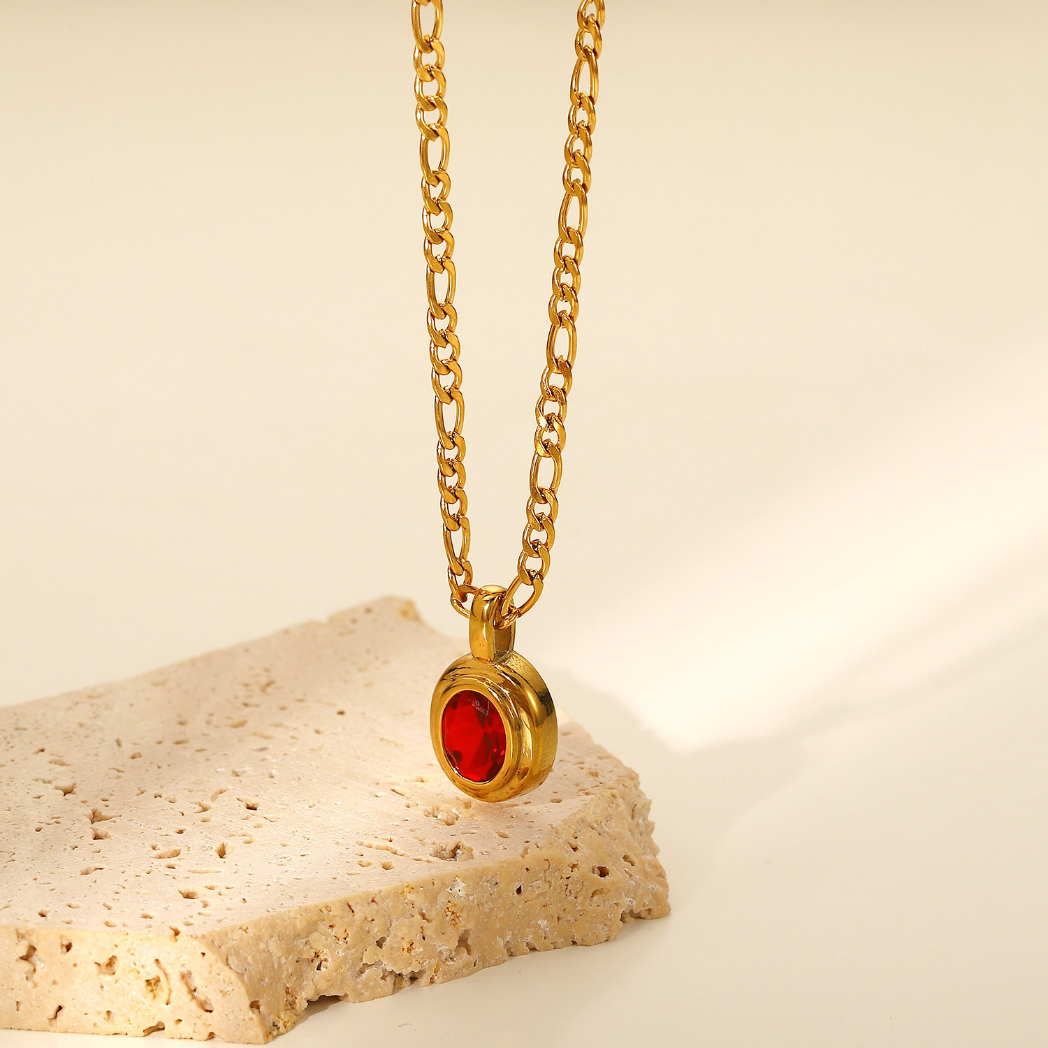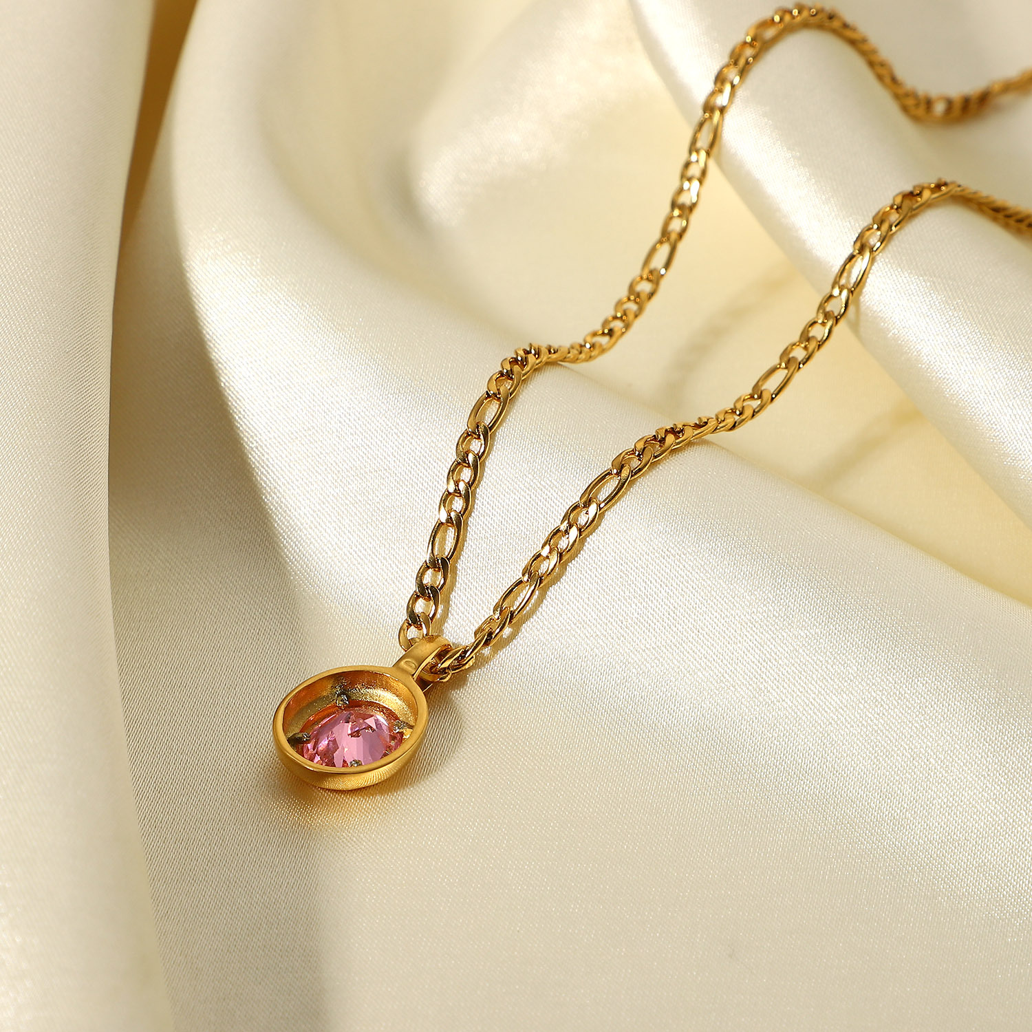 标题:欧美INS新款钛钢项链18k金不锈钢首饰立方氧化锆椭圆形吊坠项链女