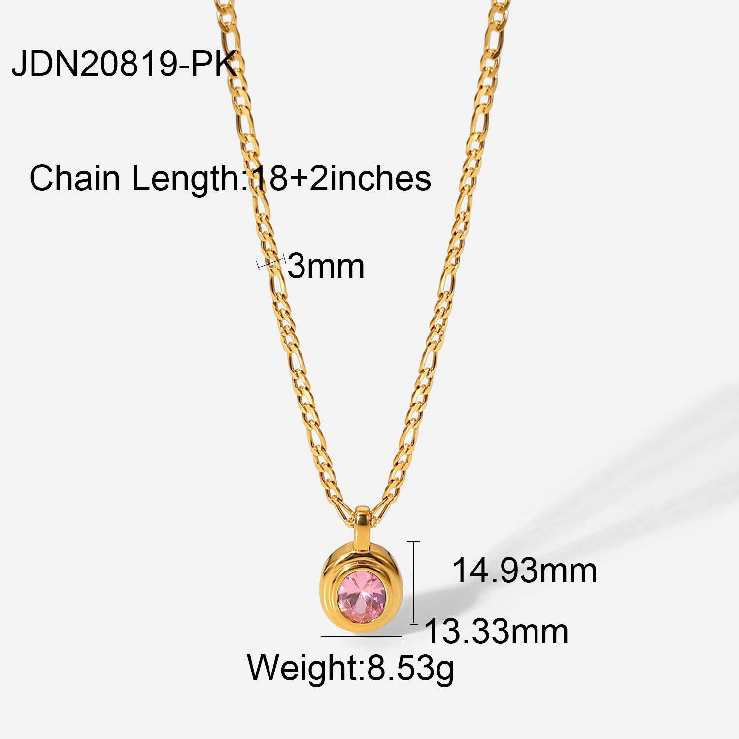 描述:风格:简约,材质:不锈钢,处理工艺:电镀,品牌:Youthway,生产编号:JDN20819,销售序列号:JDN20819,种类:项链,样式:女式,造型:几何型,包装:独立包装,适用送礼场合:婚庆,旅游纪念,员工福利,加工定制:是,货号:JDN20819,产地:浙江义乌,链子样式:费加罗链,是否多层:否,是否带坠:是,延长链:10cm以下,坠子材质:锆石,周长:21cm(含)-50cm(含),系列:不锈钢,形象:项链,主要下游平台:ebay,亚马逊,wish,速卖通,独立站,LAZADA,颜色:JDN20819-WT,JDN20819-RD,JDN20819-PK,JDN20819-GN,主要销售地区:非洲,欧洲,南美,东南亚,北美,东北亚,中东,有可授权的自有品牌:是,是否跨境出口专供货源:是,流行元素:金属,链条,几何,上市年份/季节:2021年冬季,