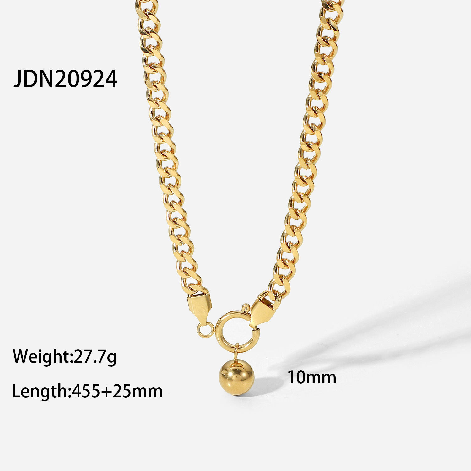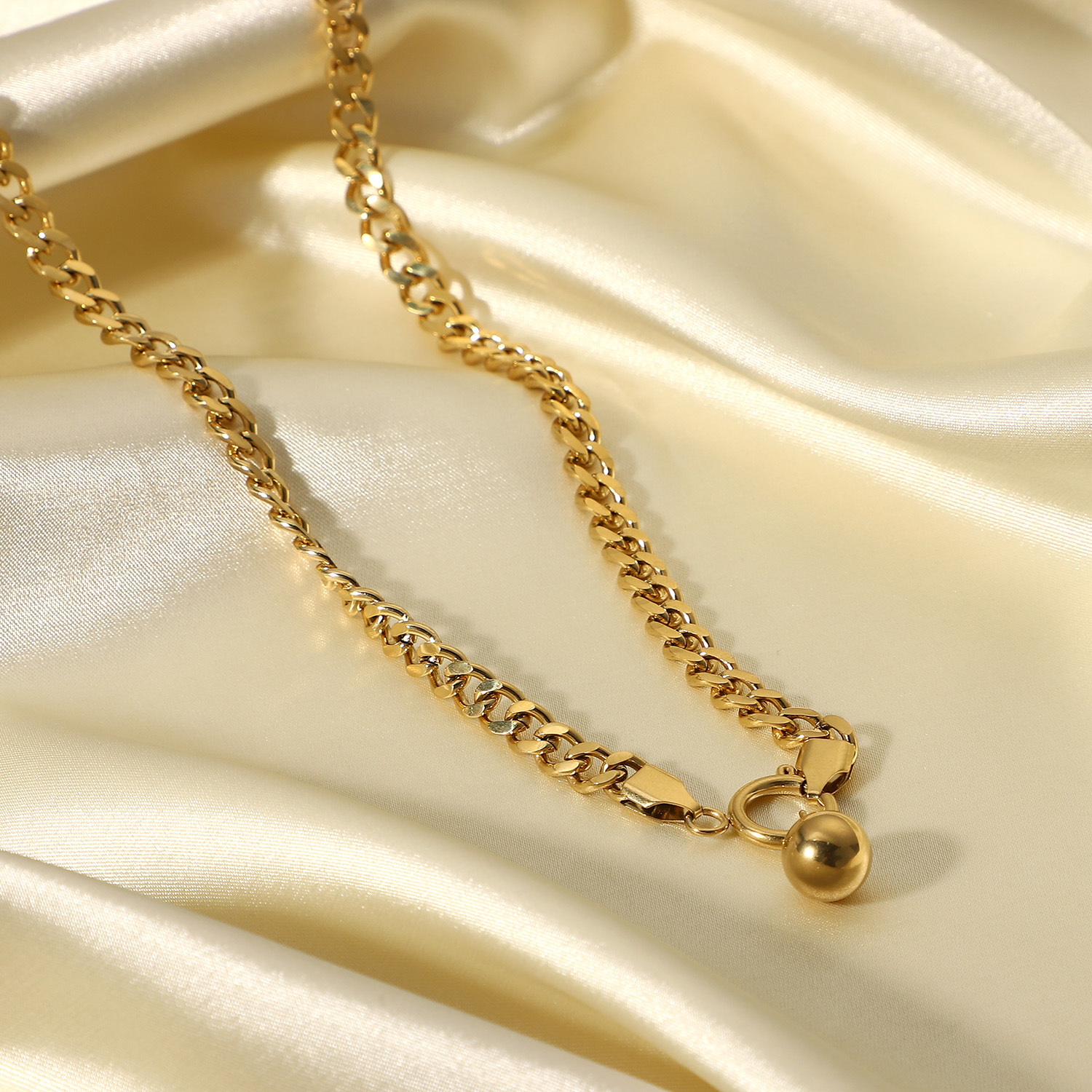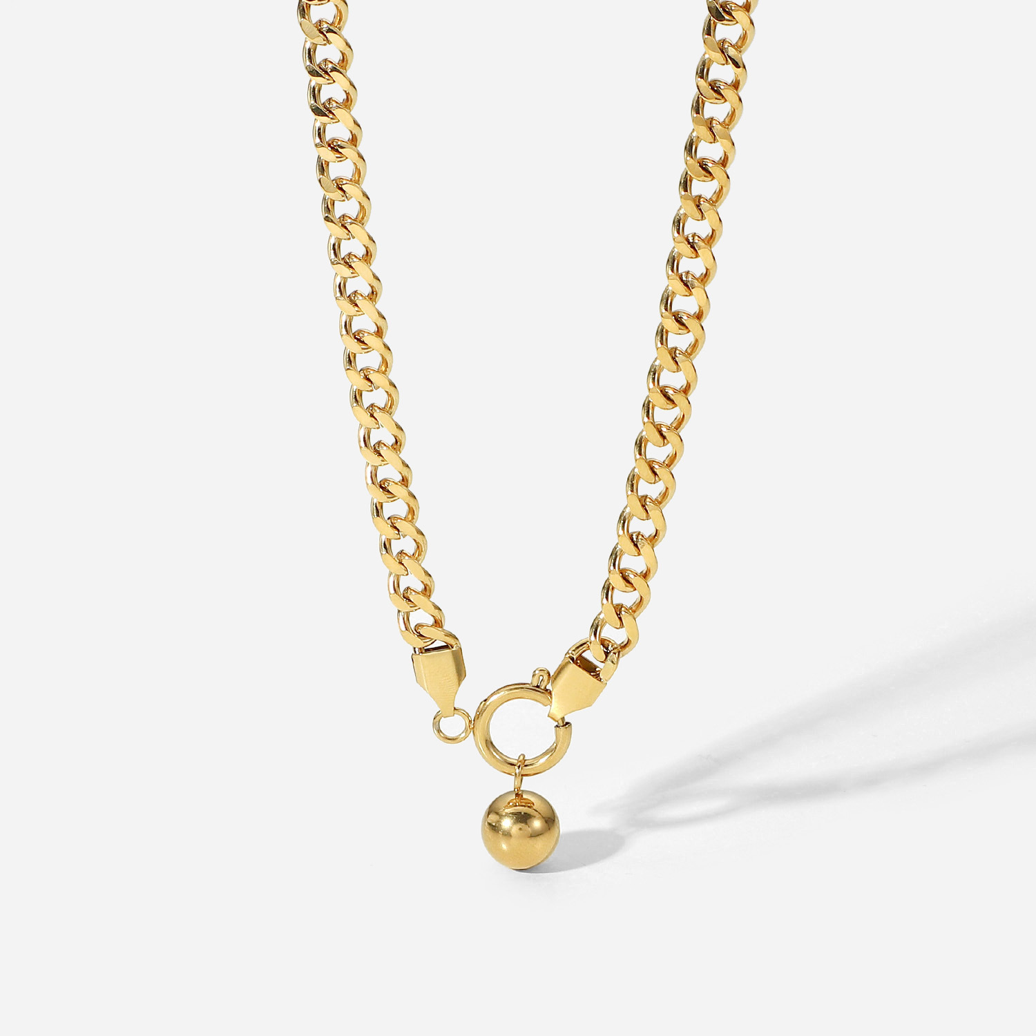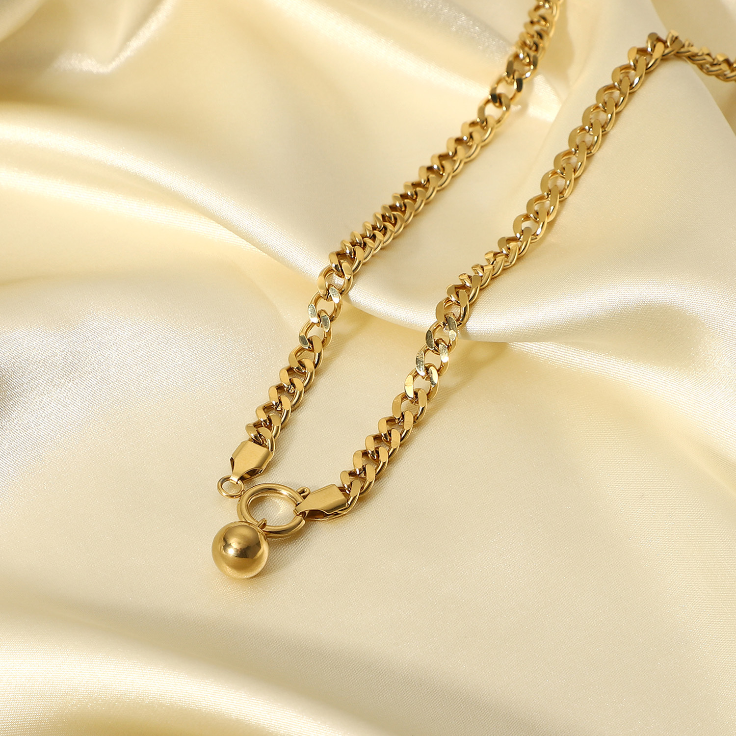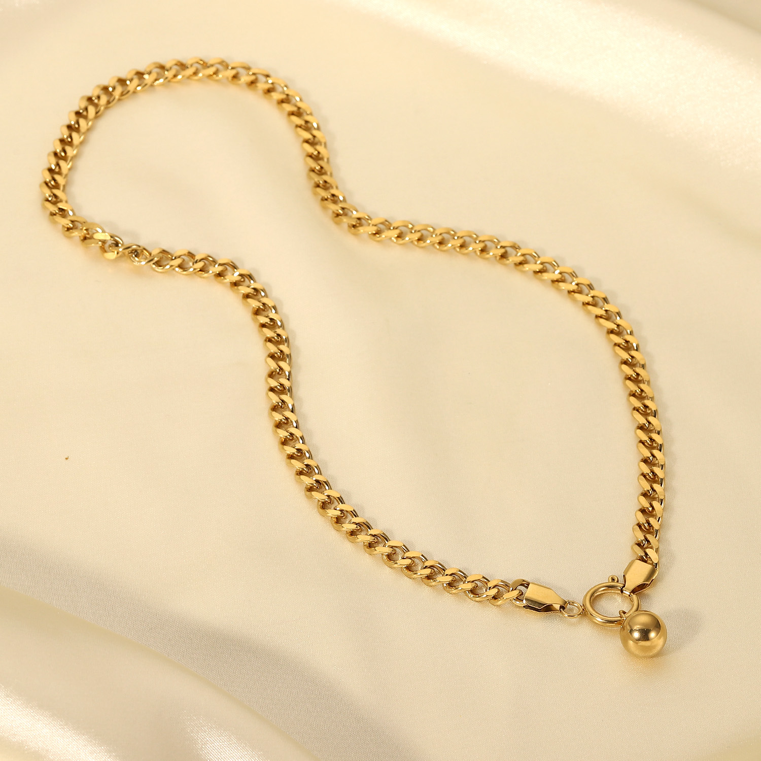 标题:欧美网红同款复古项链 14K金色古巴链圆珠吊坠弹簧扣项链女脖颈链