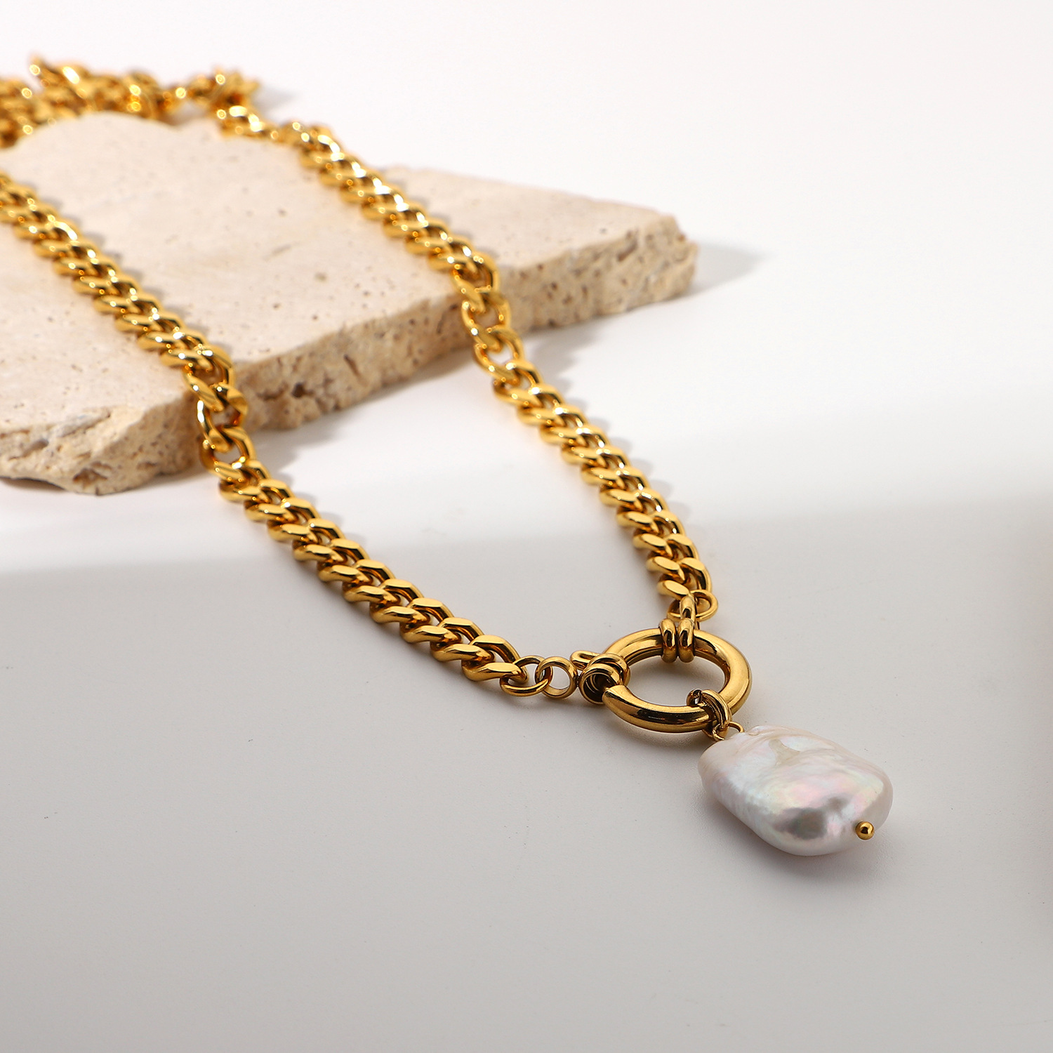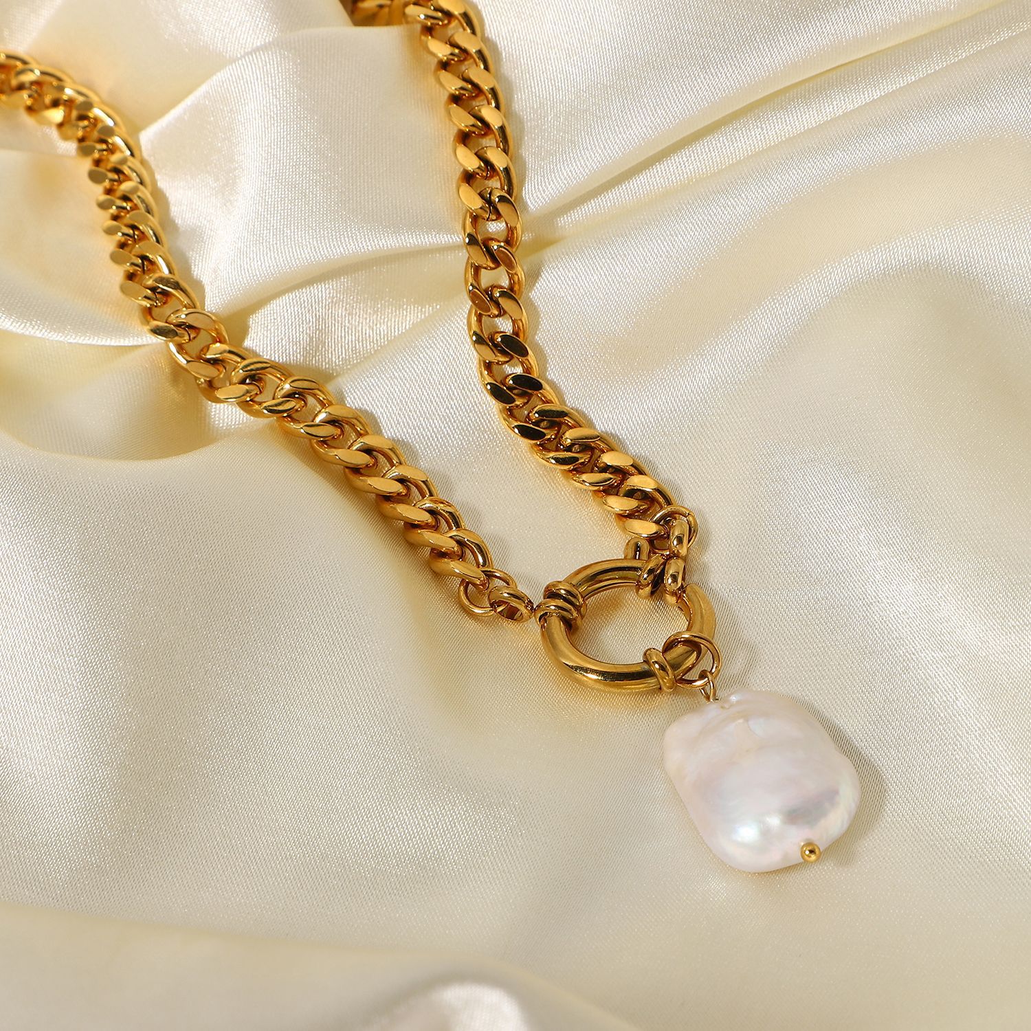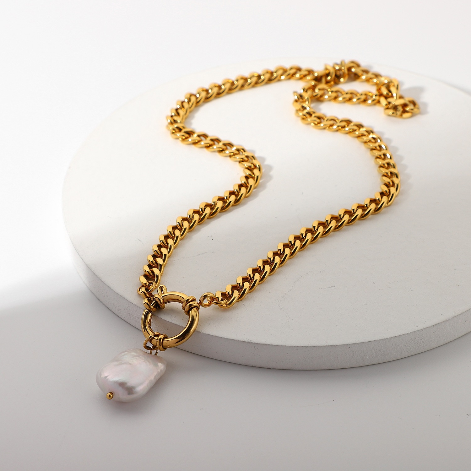 标题:欧美INS网红项链18K镀金不锈钢淡水珍珠古巴项链女式百搭服饰饰品
