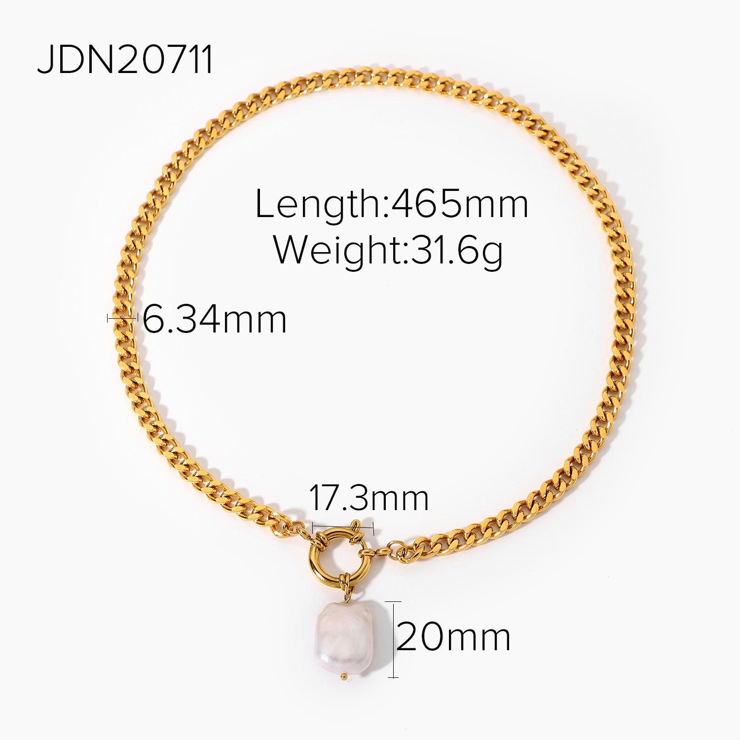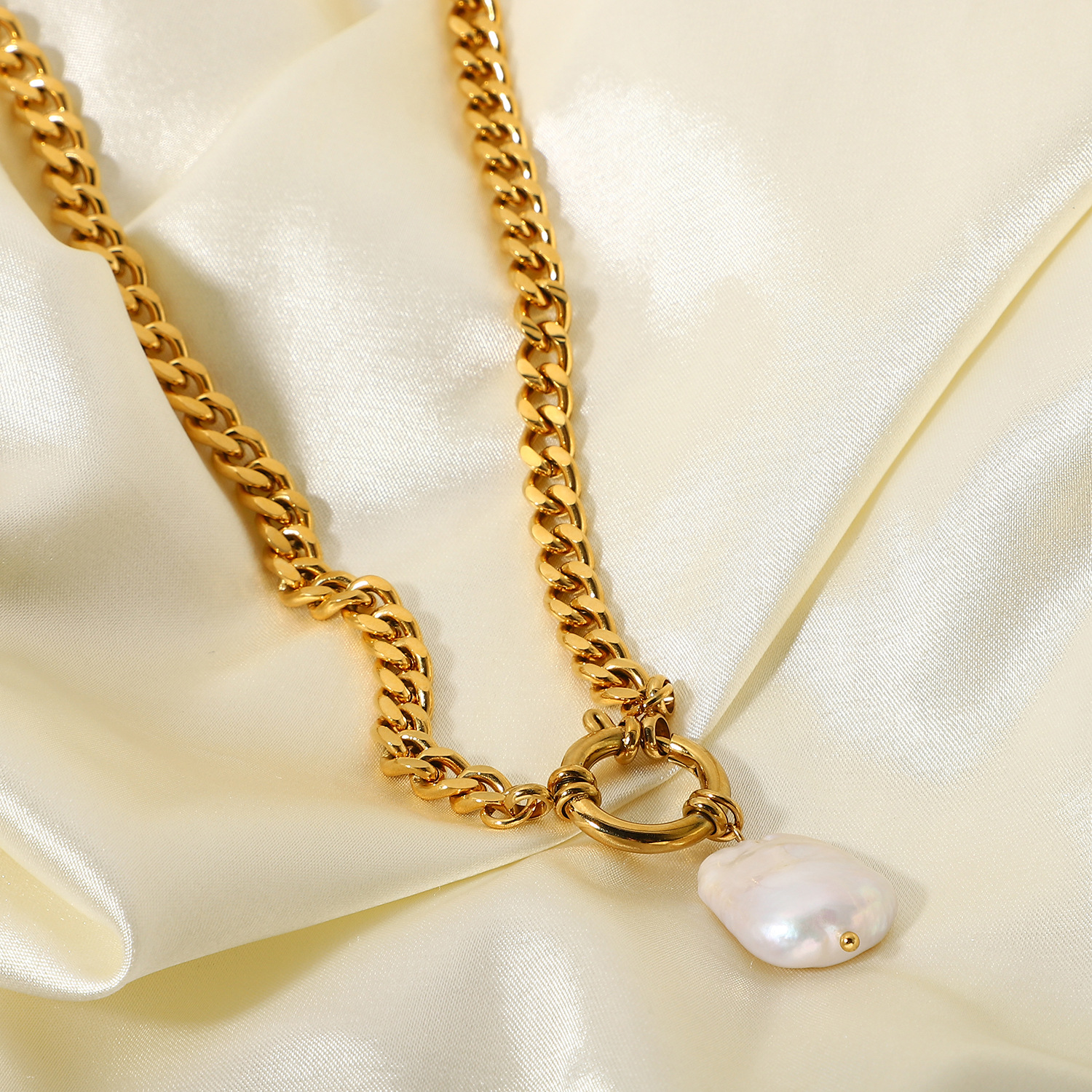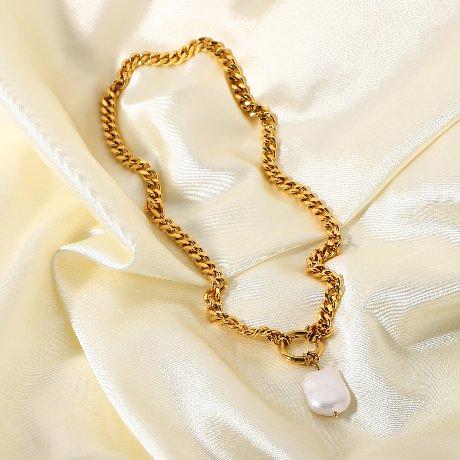 标题:欧美INS网红项链18K镀金不锈钢淡水珍珠古巴项链女式百搭服饰饰品