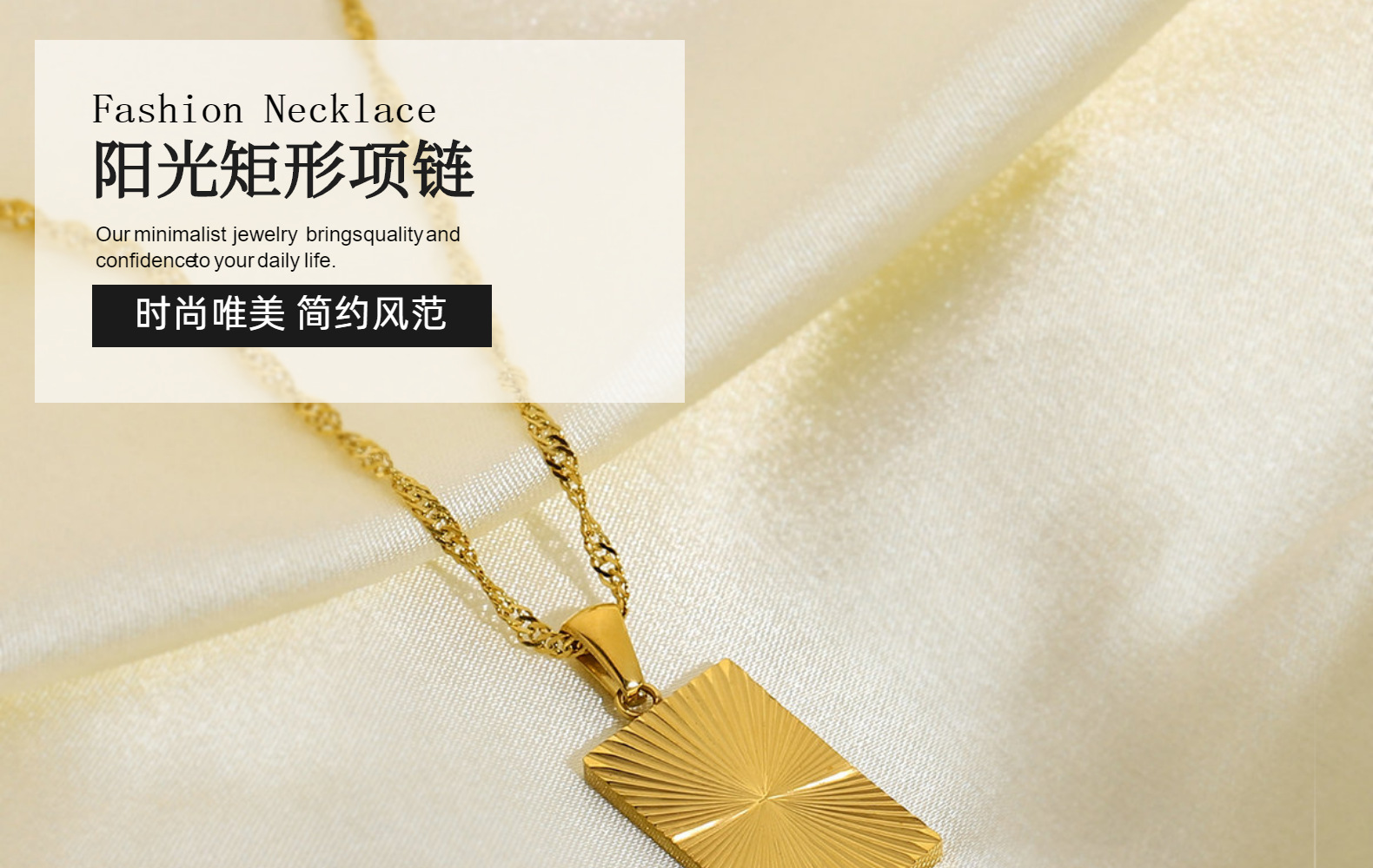 标题:跨境新款阳光硬币项链 18K镀金316L不锈钢矩形吊坠项链几何项链女