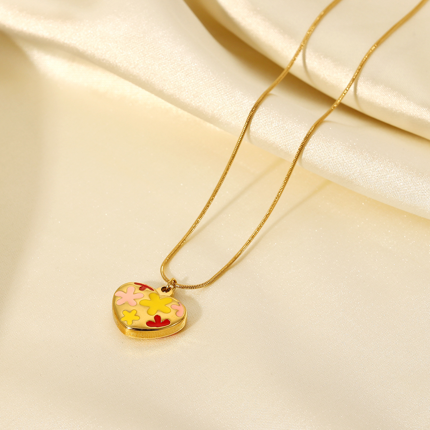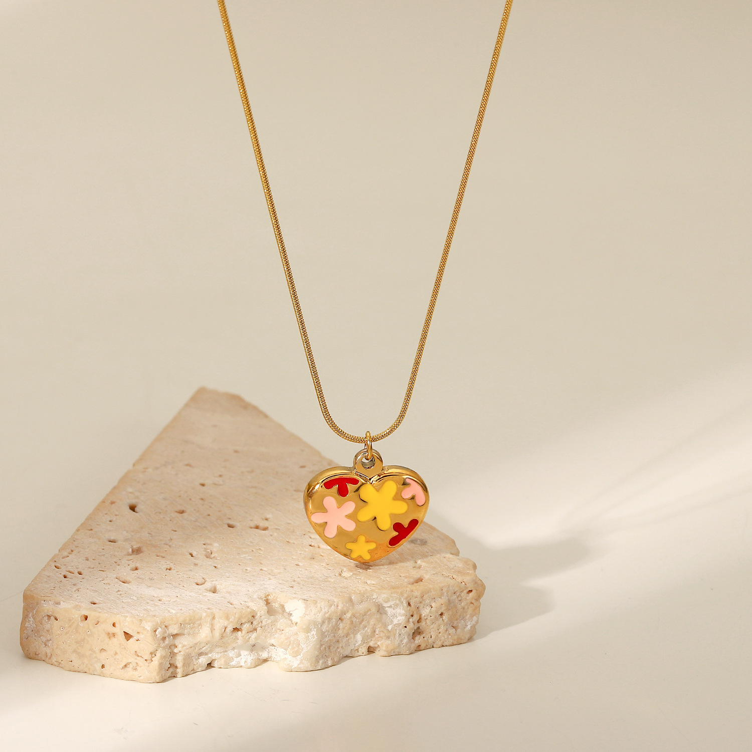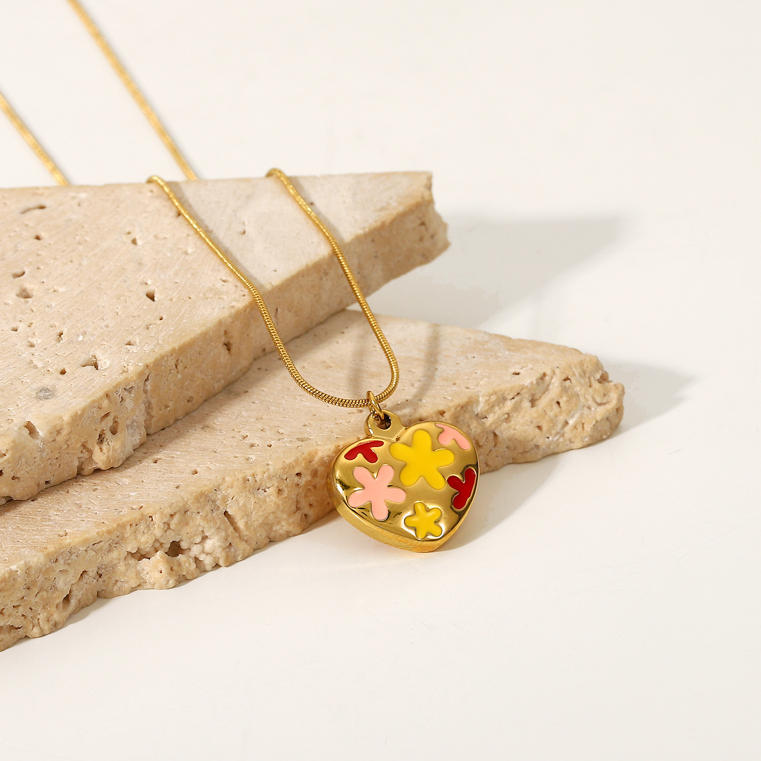 标题:欧美时尚ins彩色滴油花心形吊坠项链 18K镀金不锈钢项链首饰女士