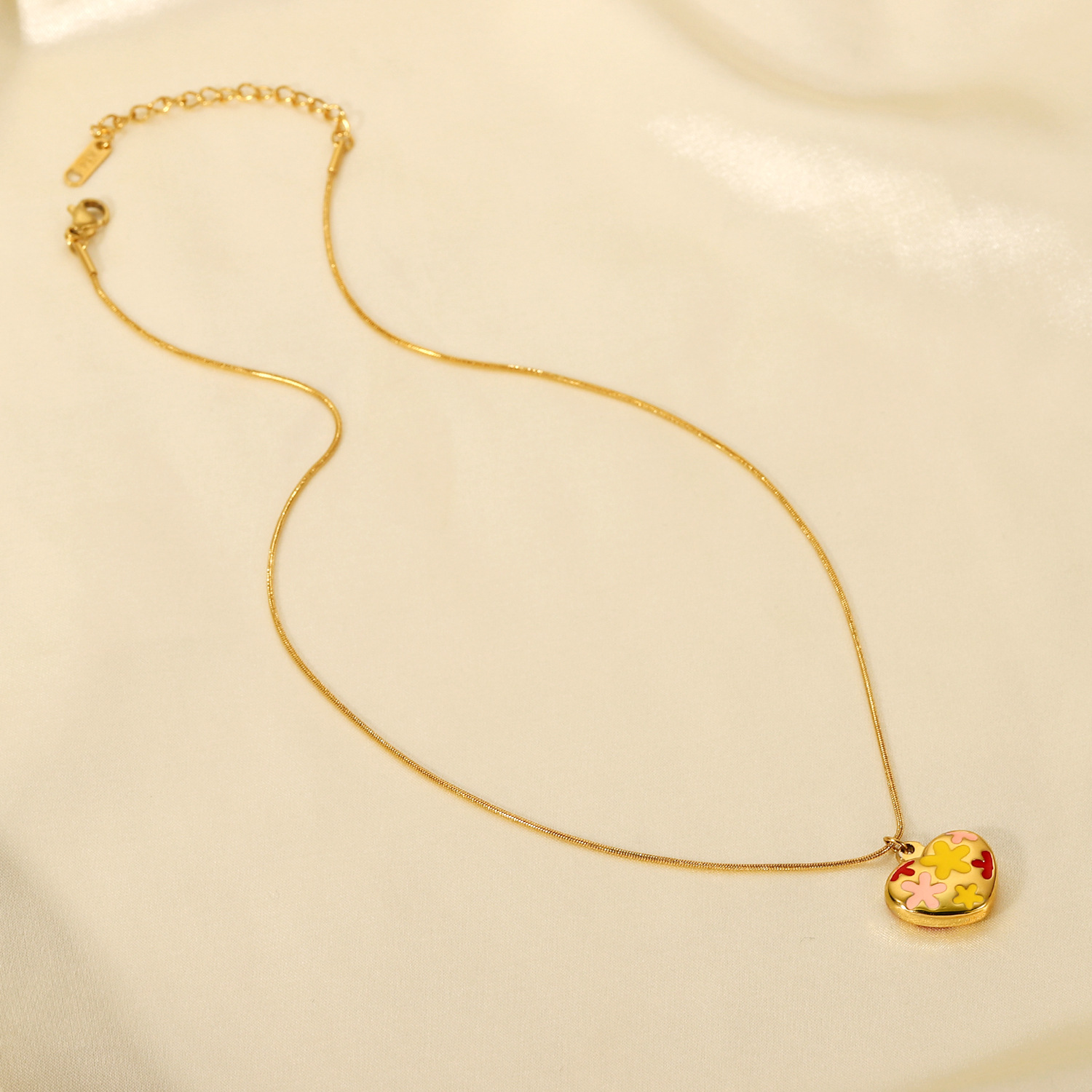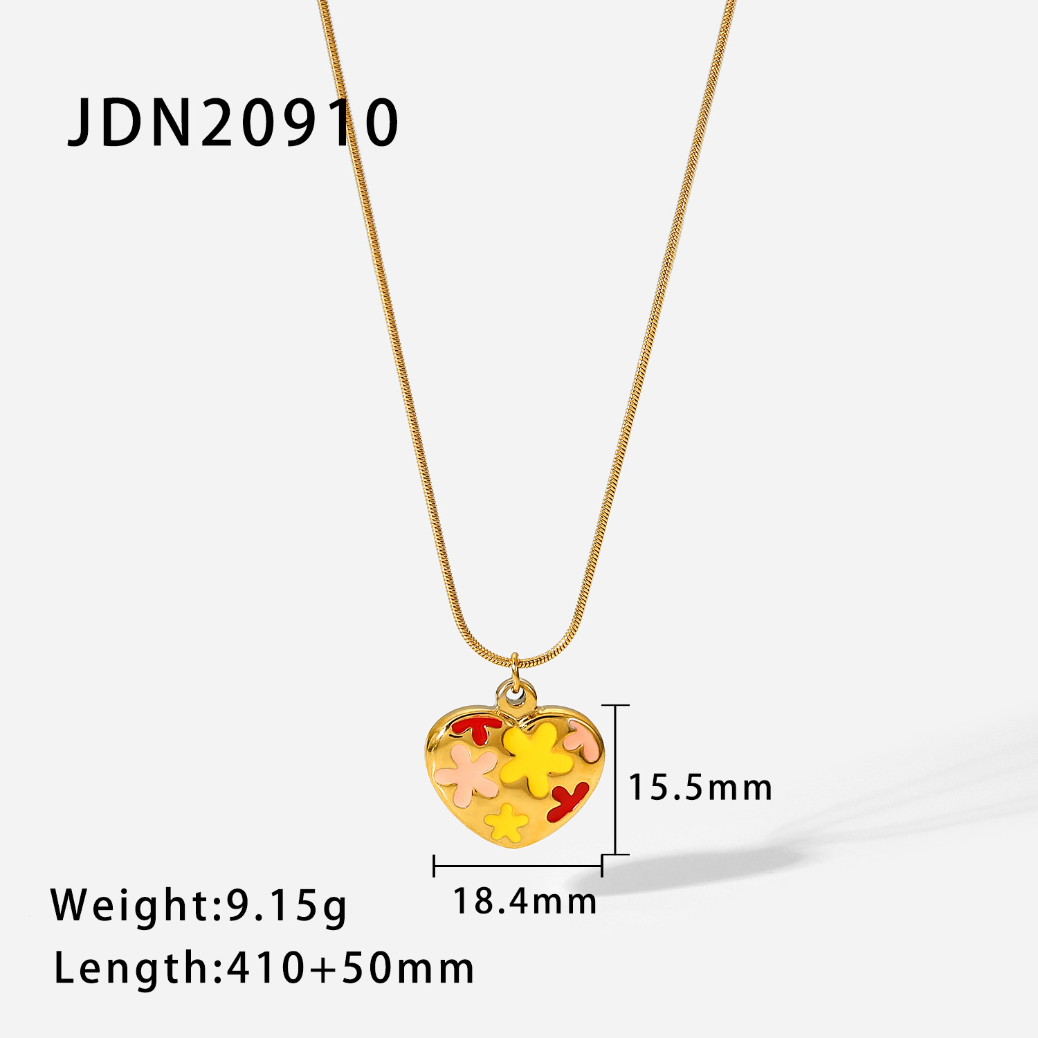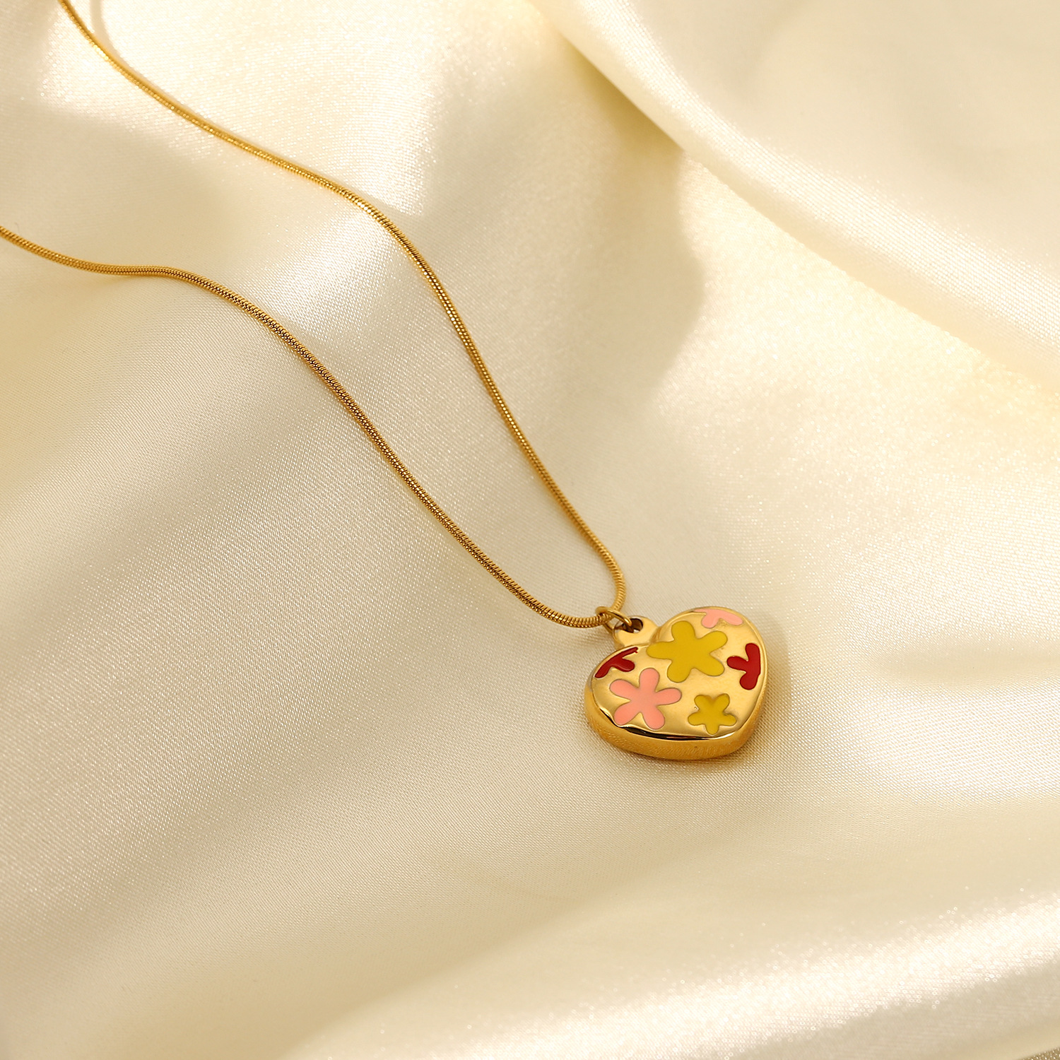 标题:欧美时尚ins彩色滴油花心形吊坠项链 18K镀金不锈钢项链首饰女士