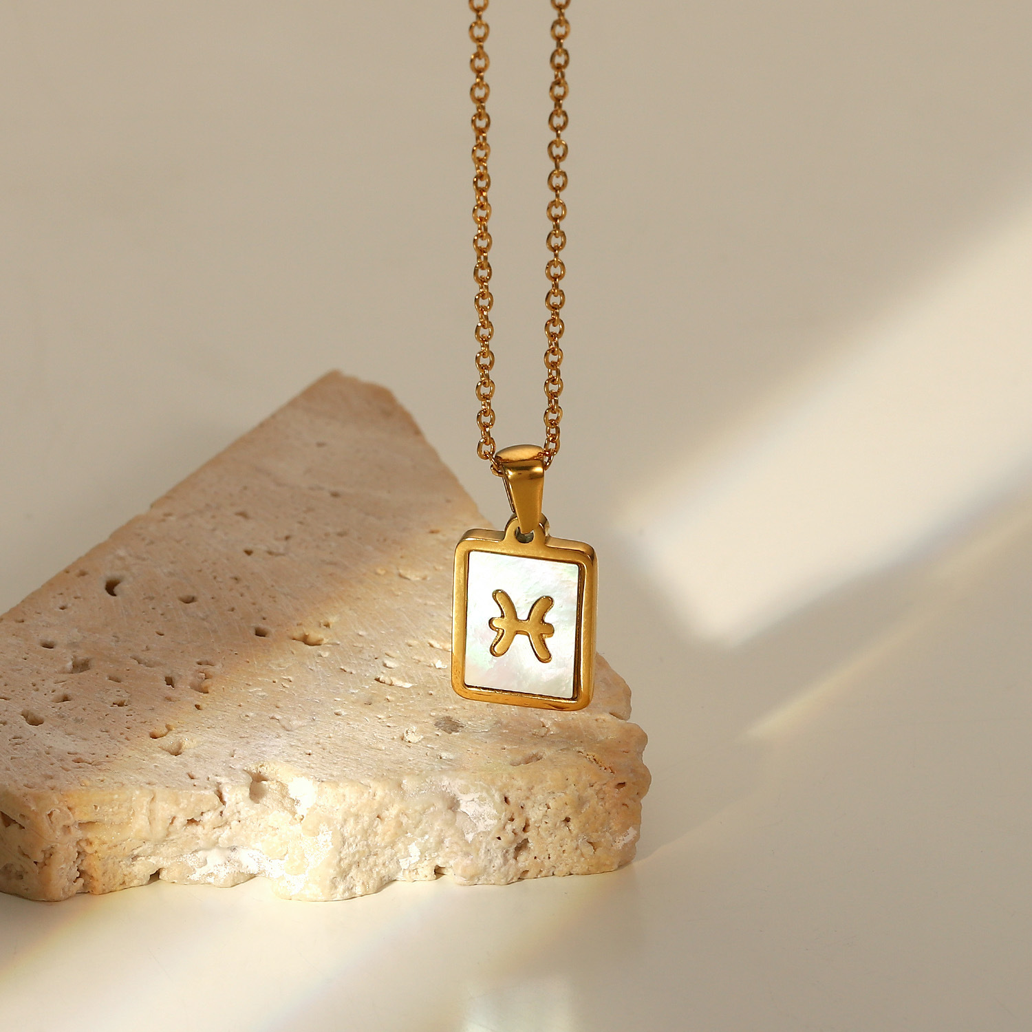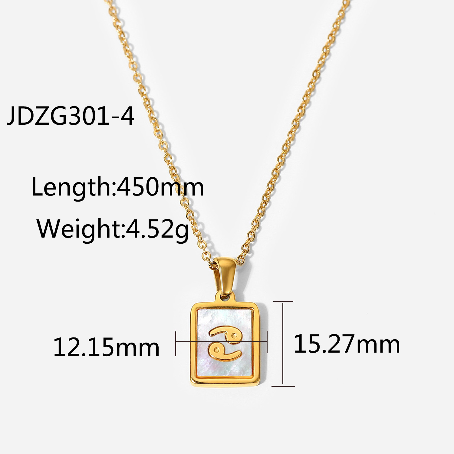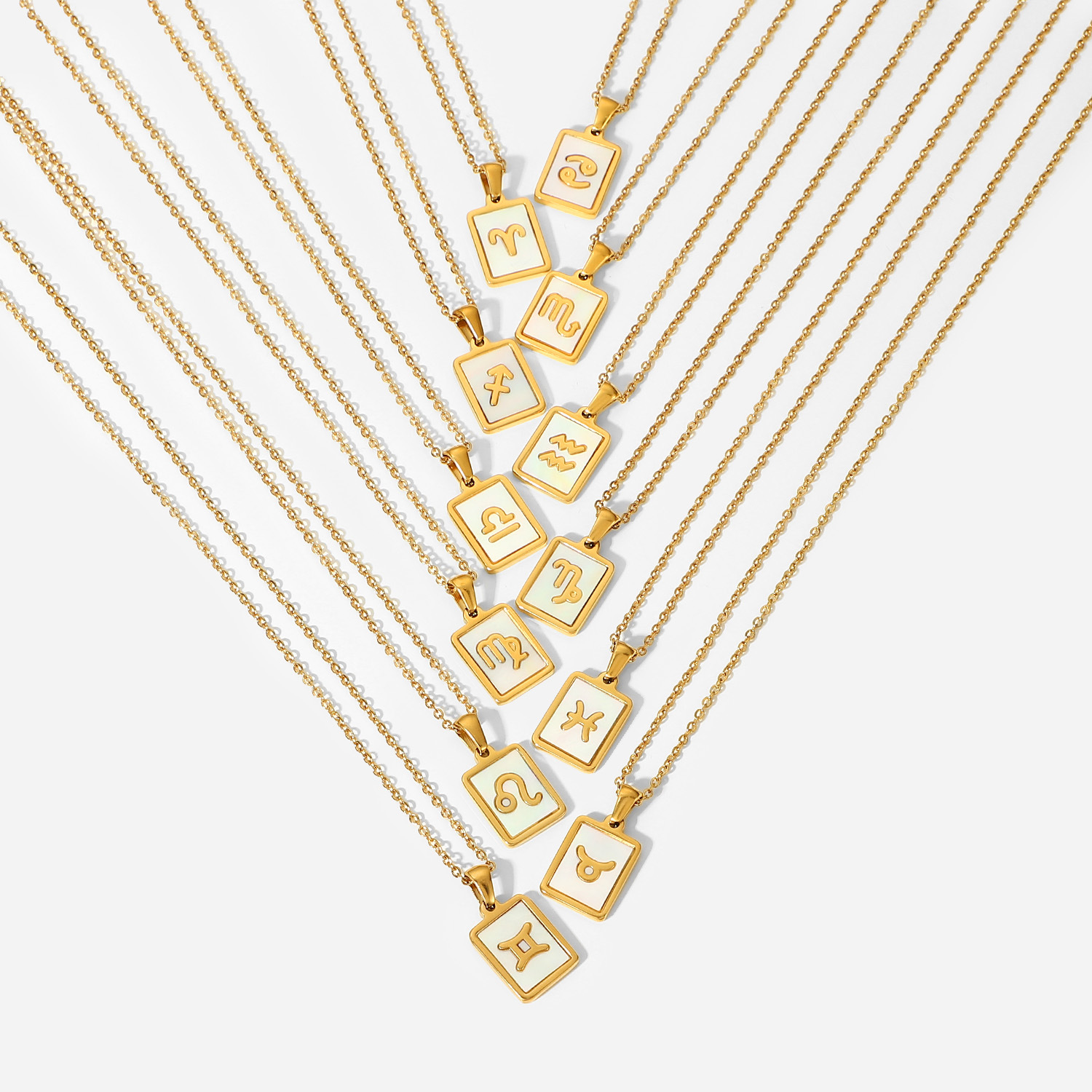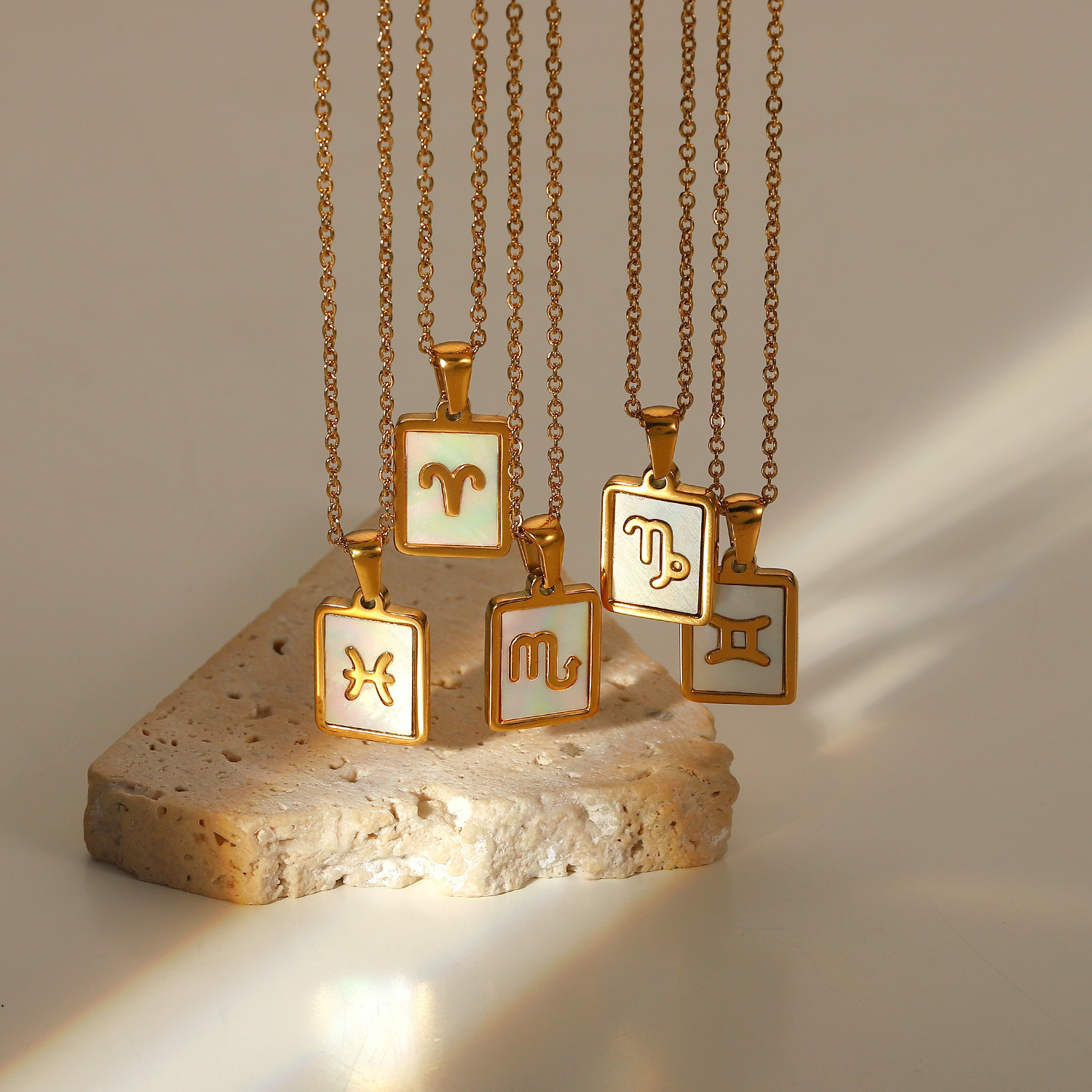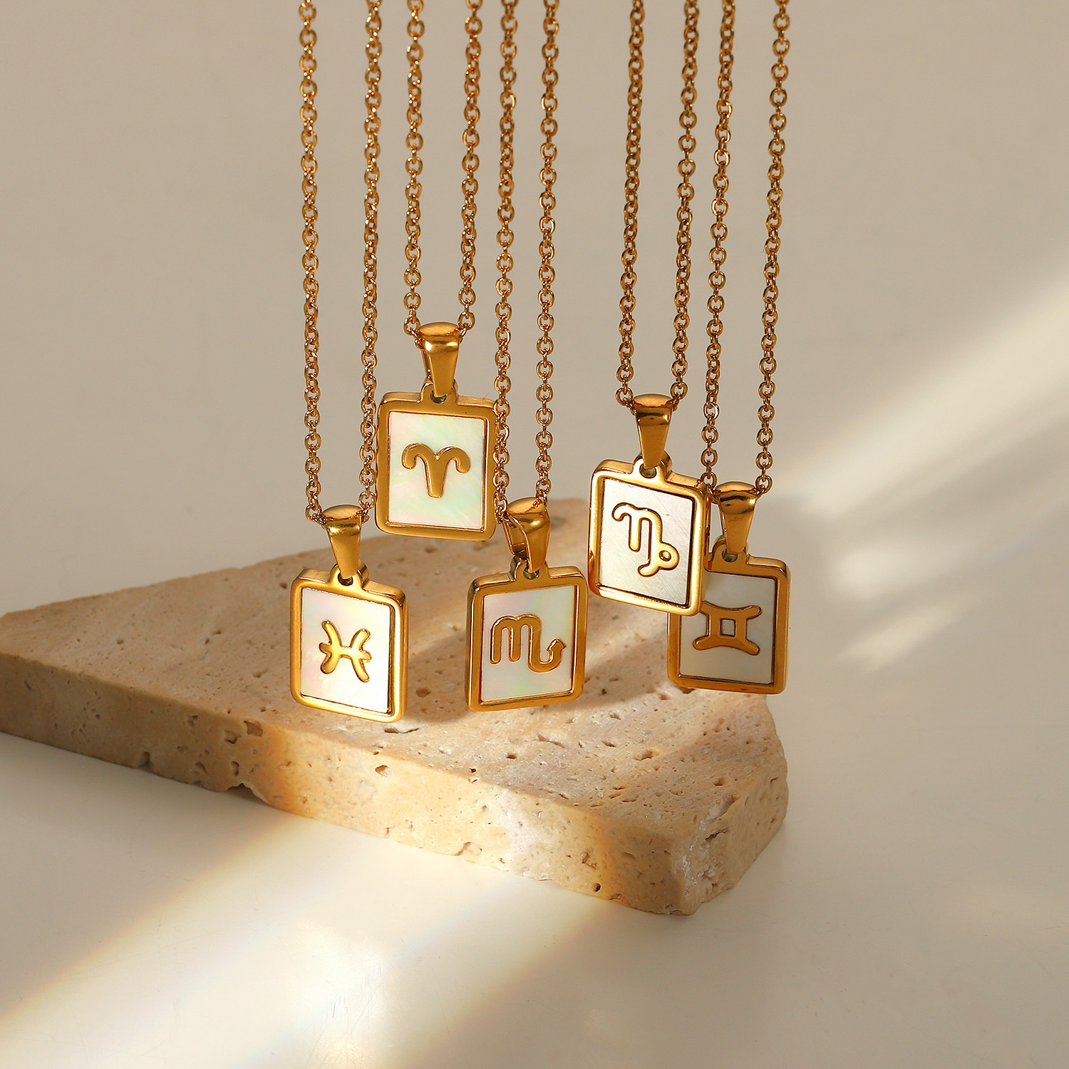 标题:新款时尚INS风18K镀金不锈钢12星座吊坠项链女式白贝星座吊坠项饰